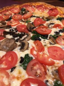 - Olives, green peppers, mushrooms, tomatoes and black olives.