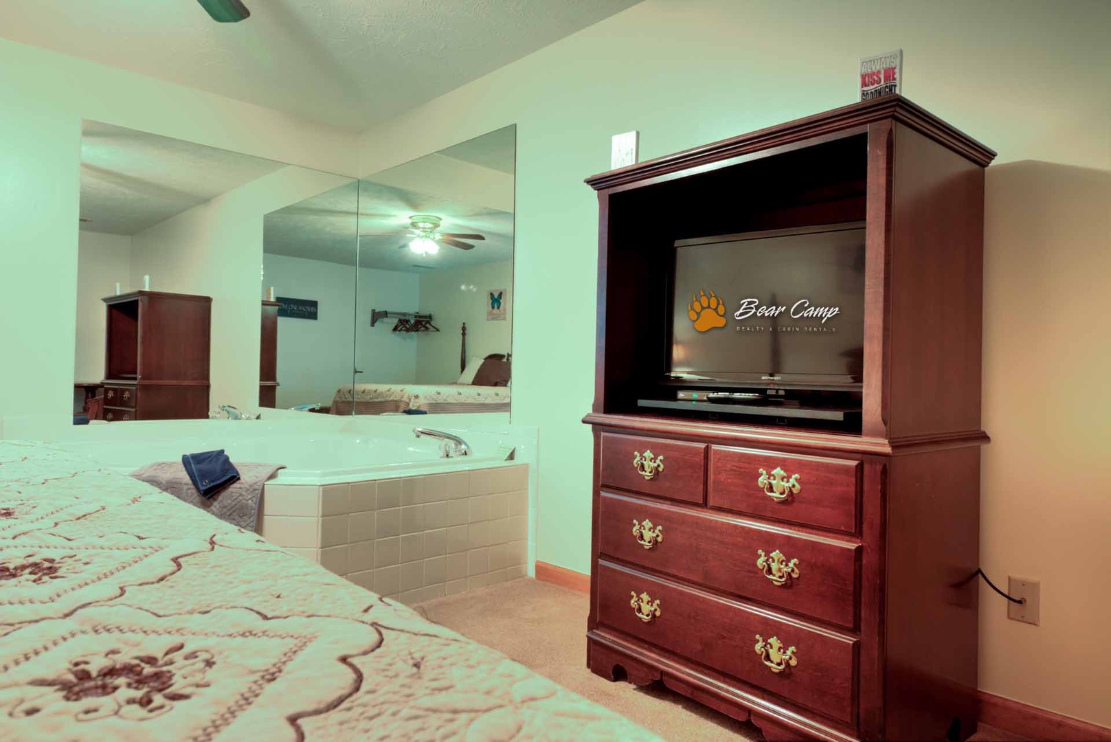We really enjoyed our stay at Bear camp. The bed was comfy, the jacuzzi was wonderful, especially after walking Gatlinburg. The water pressure was incredible. It was in the center of everything but still was quiet and private. We definitely recommend staying here. Awesome place with great prices!