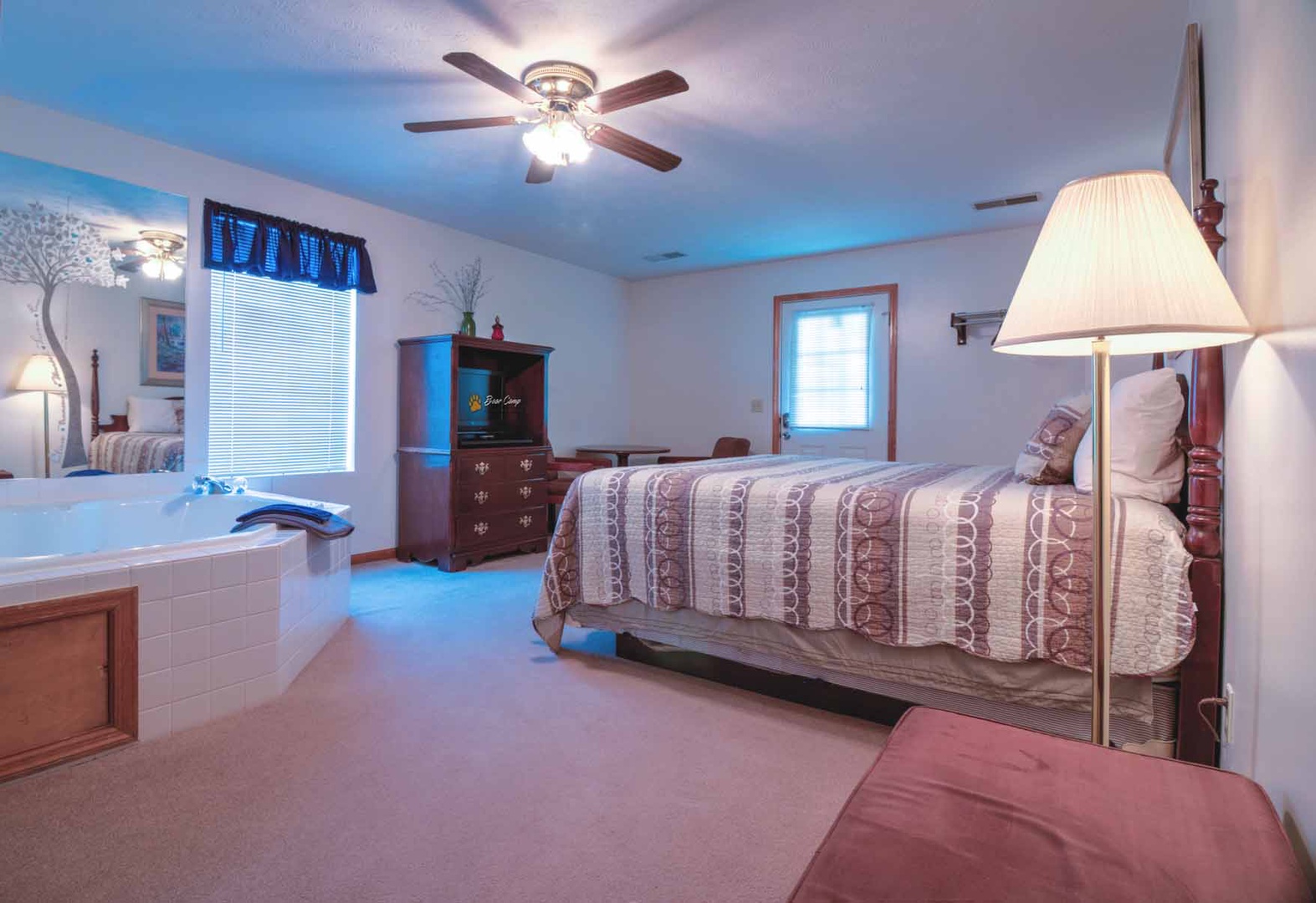 We have stayed at bear camp more then once we love the room whirlpool tub in room will stay again