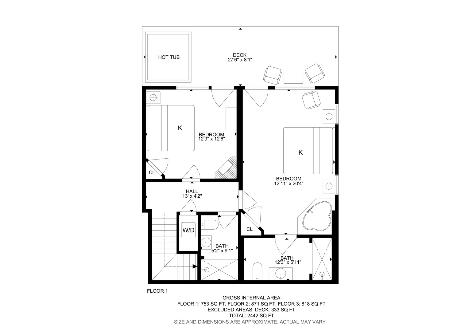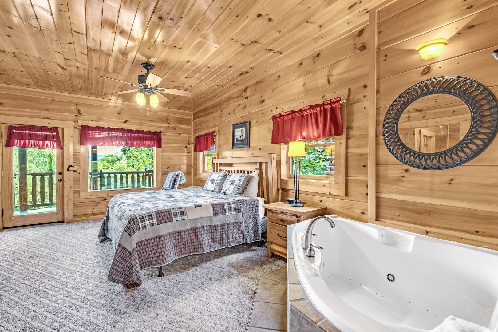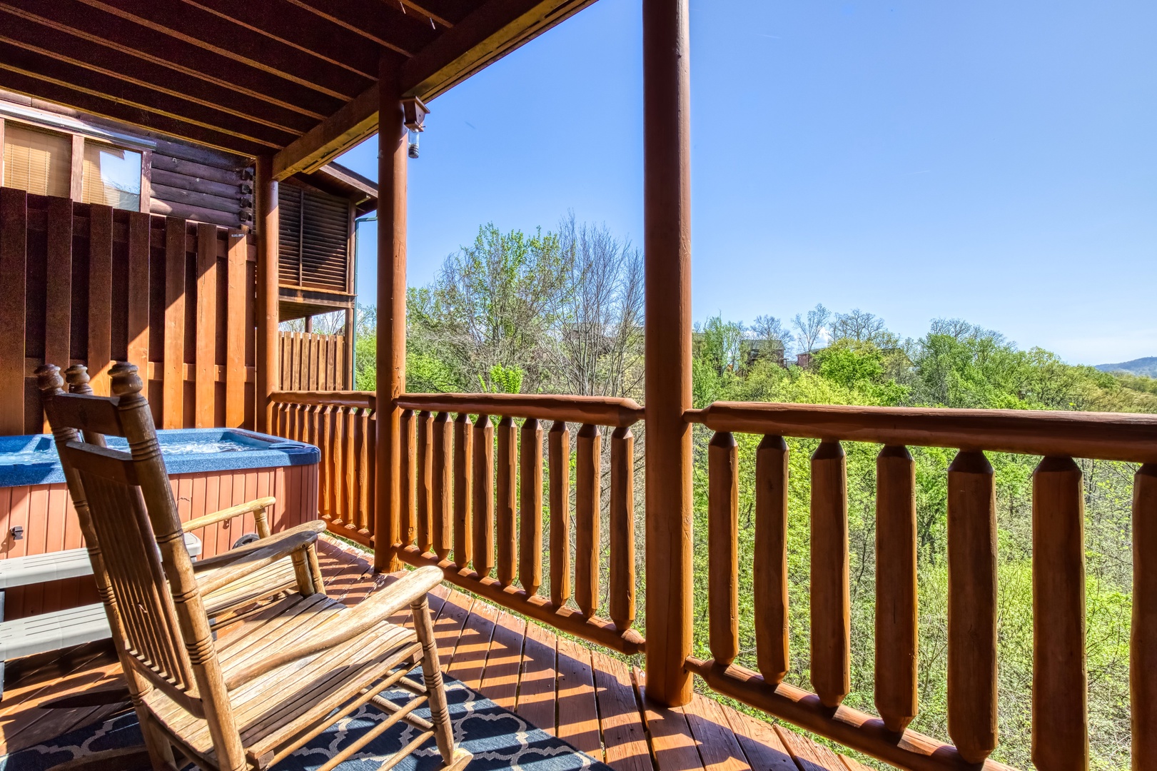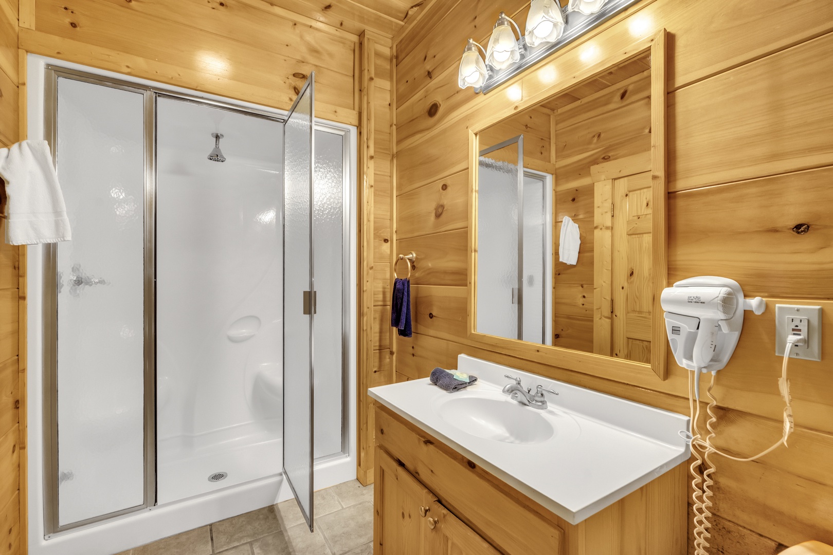 The bottom floor is equipped with 2 more King bedrooms, 1 being an ensuite with a walk-in shower and a jacuzzi. Both king bedrooms have access to the back deck. On the Deck you'll find the Hot tub just waiting for you to relax after a long day exploring all the area has to offer from Pigeon Forge, Gatlinburg or The Great Smoky Mountains National Park. There is a hall bathroom with a walk-in shower and a washer and dryer closet on this level for your convenience.