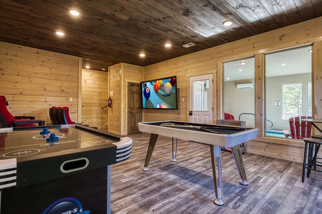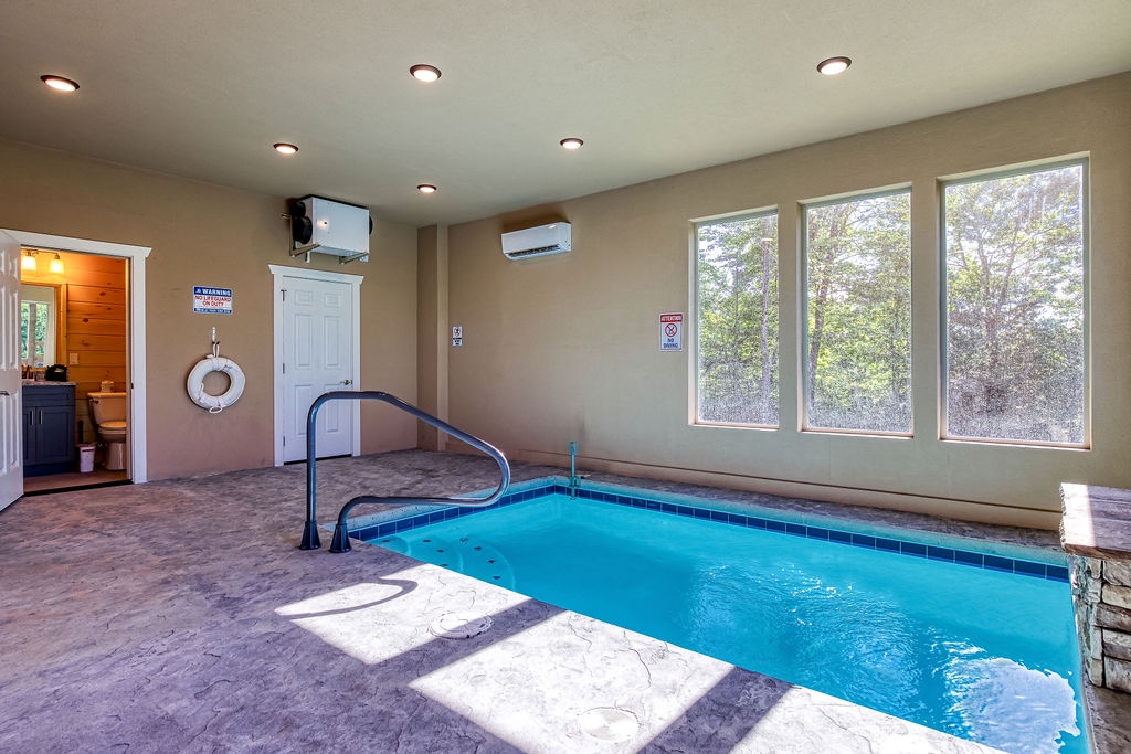 But the highlight of the bottom floor is undoubtedly the indoor pool, where endless hours of aquatic enjoyment await. Splash, swim, and play to your heart's content, regardless of the weather outside. Afterward, soothe tired muscles in the relaxing hot tub on the back deck, offering the perfect end to an adventurous day exploring the Great Smoky Mountains National Park.