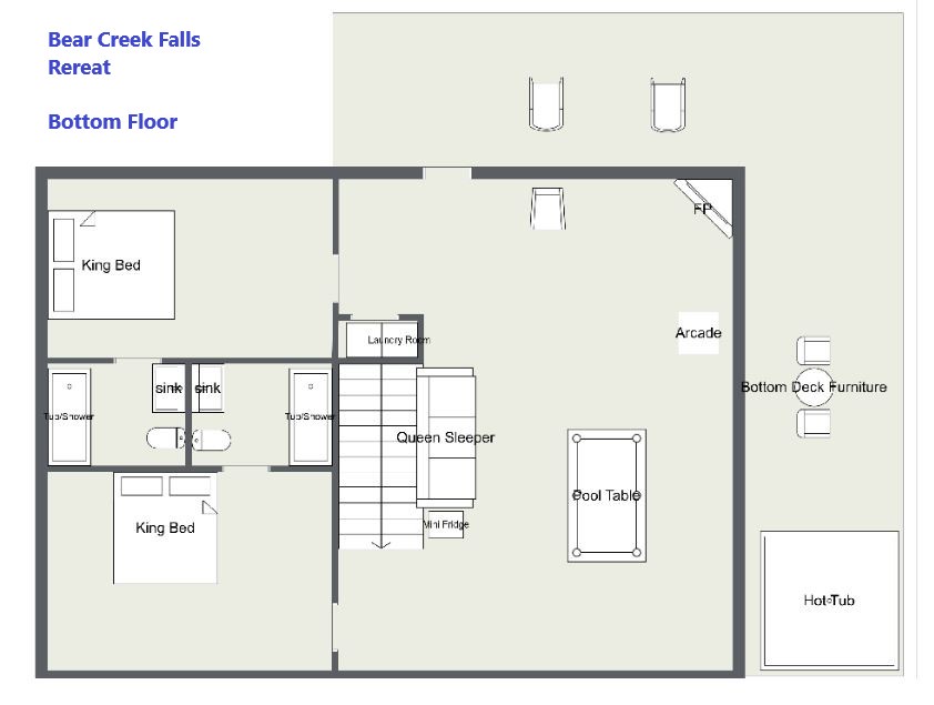 The house was very nice!!! Decorations, furniture, and layout were all awesome! One of the cleanest places we have ever stayed in!! Will definitely book with Bear Camp Cabins again! The website was the best site to book a cabin on. I love the floor maps and the 3D views of the houses/cabins. That makes it so much easier to choose a house based on handicap and other needs. Thank you so much!!