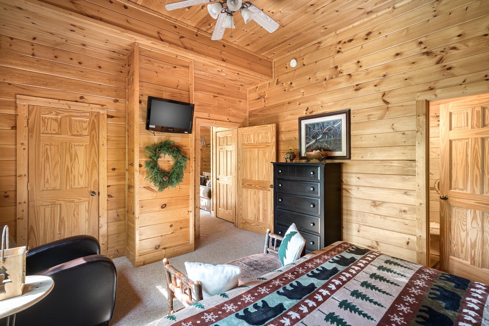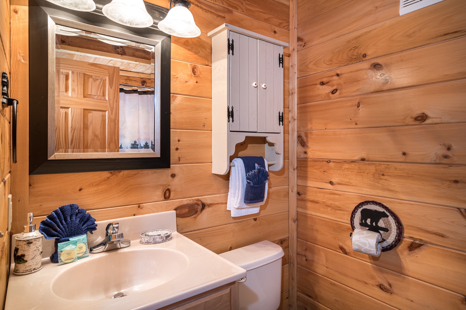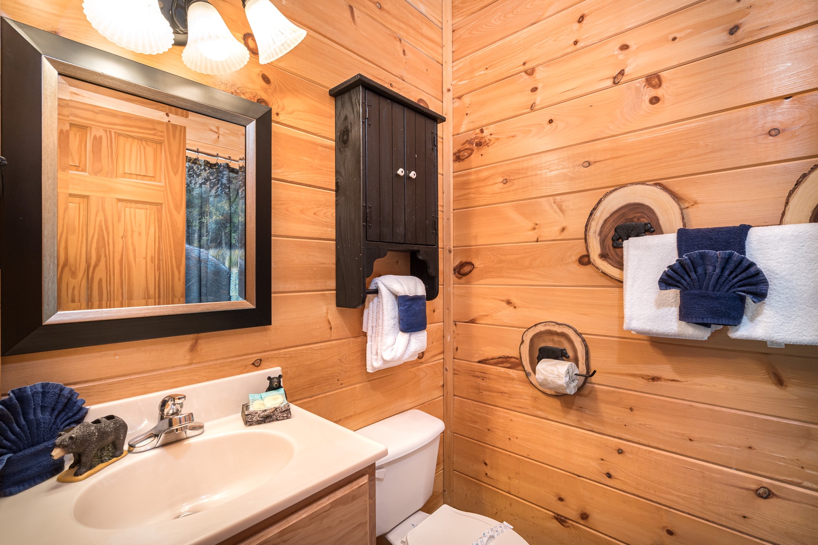 We enjoyed this cabin. Plenty of room for 4 couples with private baths. Close to attractions and had access to a nice pool. We have stayed with Bear Camp Cabins now 3 times and have not had any issues. Thanks