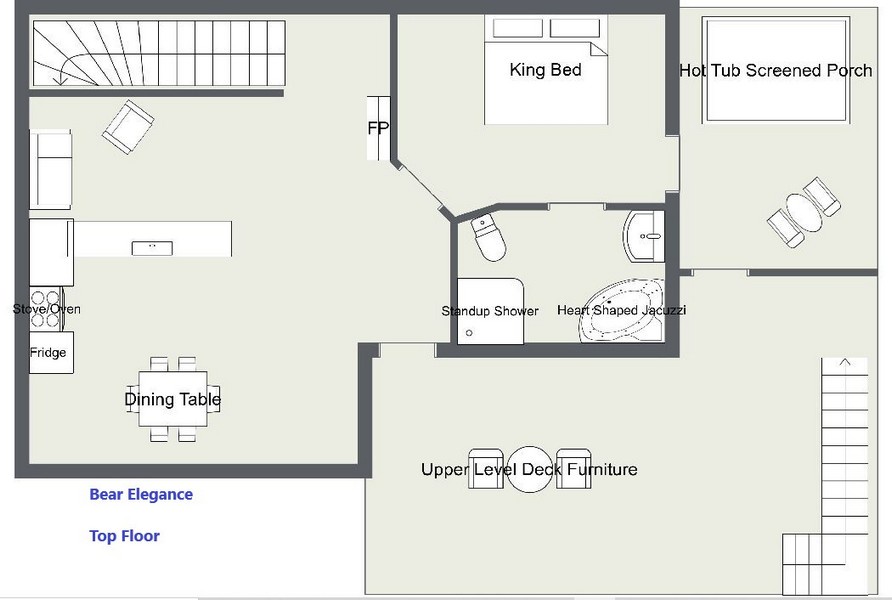 Bear Elegance cabin was everything it was advertised to be, it was very clean somewhat secluded, well furnished with everything needed for preparing meals. The hot tub and pool table were two things we really enjoyed. If you are looking for a romantic cabin, then this is the one for you. Bear Camp was a great company to rent from will use them again.