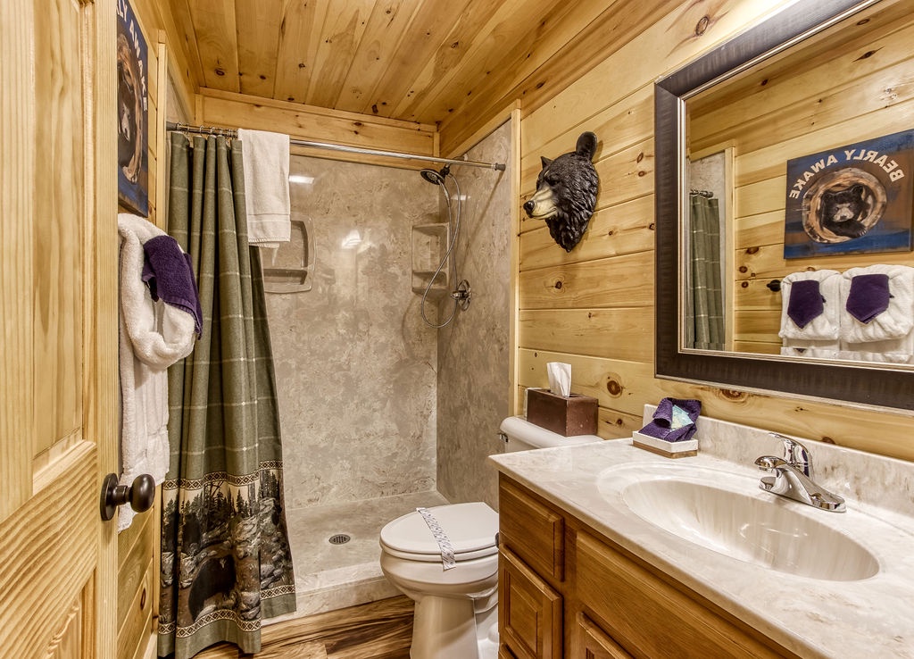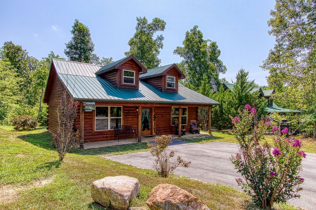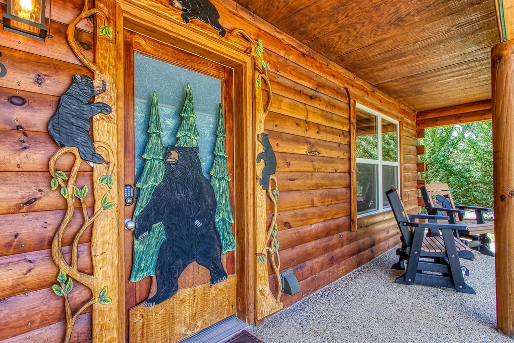 “Bear Hugs” is a beautifully decorated one level cabin with 2 bedrooms and 1 bath that will sleep 5. This adorable cabin is nestled in a natural wooded setting in the Smoky’s Cove Resort and is only about 15 minutes to Pigeon Forge and 25 minutes from Gatlinburg. The road going to the cabin is completely paved and is considered motorcycle friendly at the rider discretion. The driveway is level and paved and will accommodate up to 2 cars comfortably.