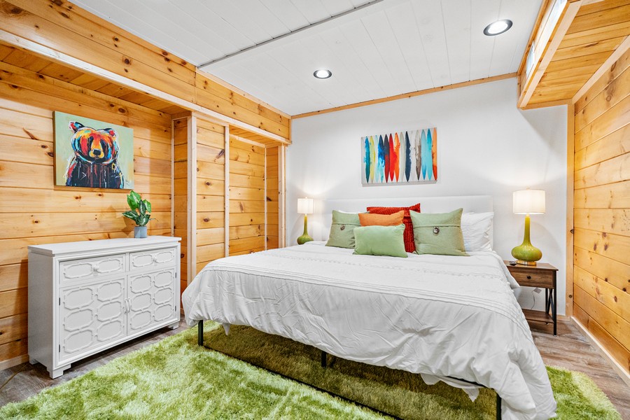 This perfectly designed modern kitchen with stainless steel appliances and plenty of space on the bar for serving those great family meals. Everyone in your group will love to gather together here in the mornings while enjoying breakfast and coffee. This floor also has 2 Luxurious king bedrooms with Flat screen Tv’s and a shared bathroom.