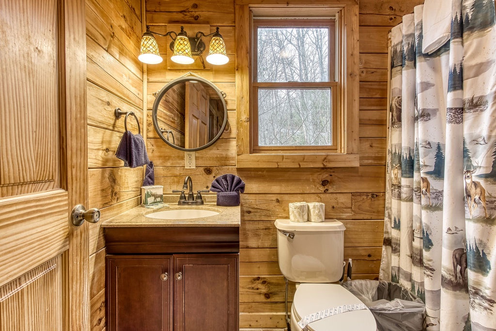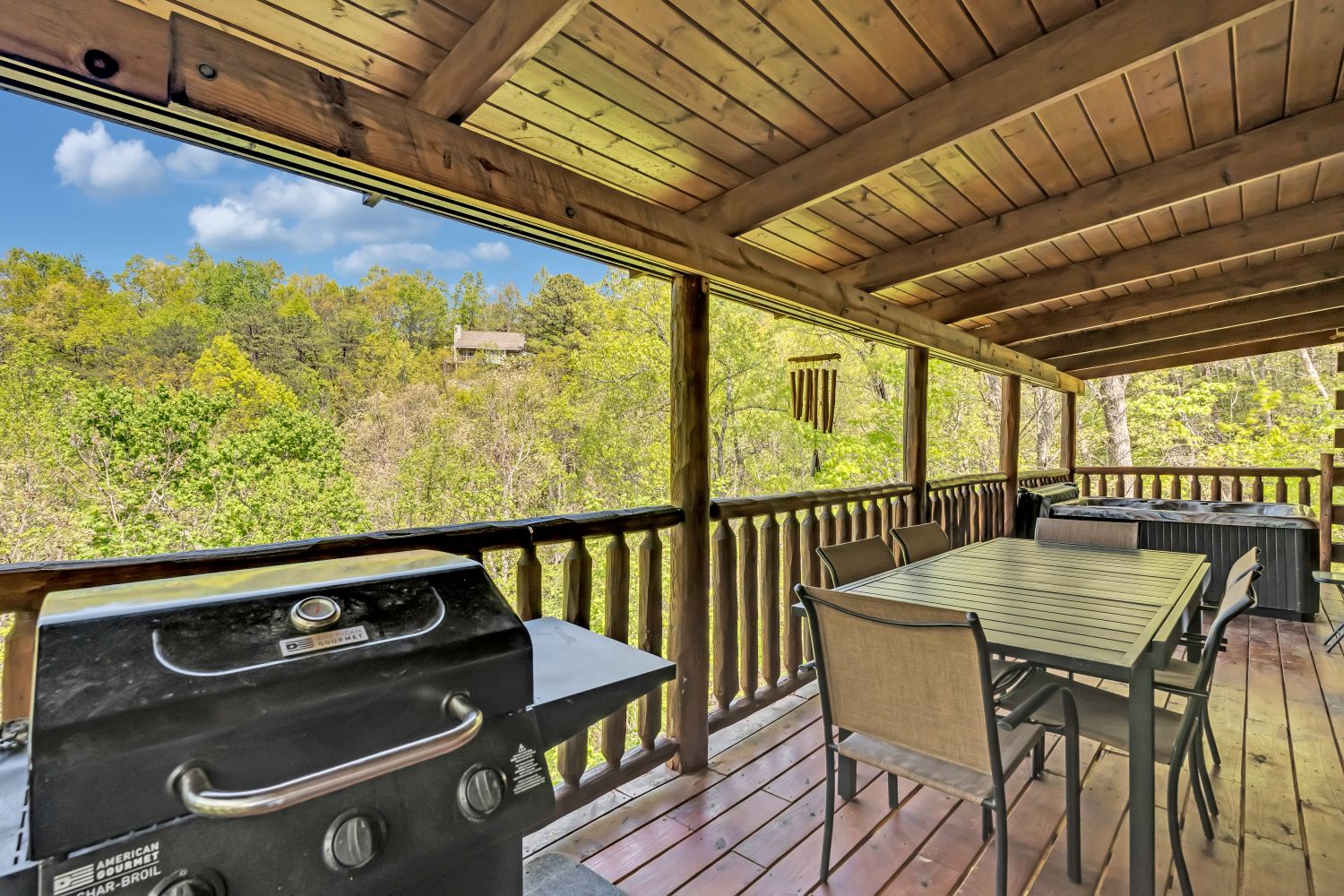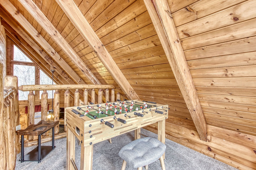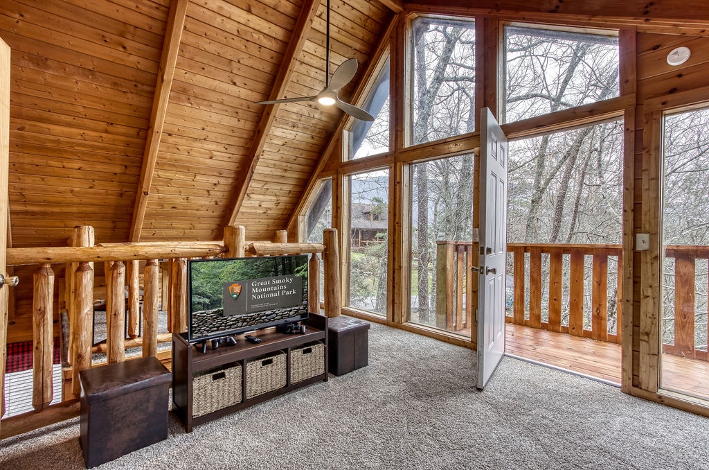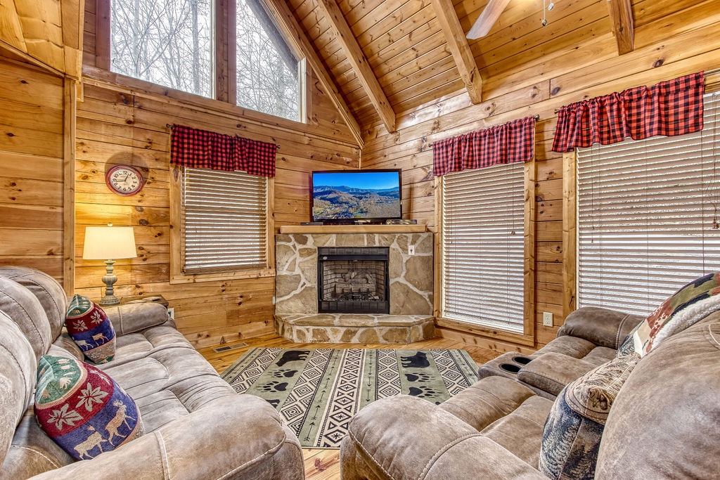 Bucky’s Bungalow’ is a cozy 2-bedroom 2-bath that sleeps 6 is the retreat you have been looking for. With paved roads to the property winding through the beautiful Bent Creek Golf Course, you will arrive at the cabin with lush woodland views of the Smoky Mountains. There is parking for 2 vehicles. This property really shines with the at-home touches that will make you feel the sense of family, knowing this is where you belong on your vacation. Once arrived, step inside and be greeted with a semi-open floor plan of the kitchen, living room, and dining area. The space is elegant simplicity at its best. You have a reclining sofa and loveseat in the living room with a flat screen tv that is just waiting for you to curl up to the electric fireplace and get cozy. The fully equipped kitchen has everything you need for serving up your favorite dish. The open dining area behind the living room truly is the perfect space to gather around enjoying a freshly cooked meal. Off the dining area is the back deck that has a gas grill for your BBQs and a hot tub to relax and pamper those muscles after a day of hiking or shopping. Time to turn in and choose from two queen bedrooms. One on the main level by the dining area making sneaking out for that extra hot tub soak or late-night snack from the kitchen easy to do without anyone knowing. Upstairs is the other queen bedroom. This is set up as its own private suite with an electric fireplace,"Jacuzzi tub non operational", so the person who gets this room may never want to leave. Also, this area has an open loft where you can gather and play a round of Foosball or enjoy the game system with over 4 thousand games to choose from. It has a smart tv so you can login with your Netflix, Amazon Prime, Hulu etc and hunker down to watch your favorite movie. The sofa here pulls out into a queen for extra sleeping space. You also have another deck off the loft where you can stand to glance out at the squirrels and birds playing in the trees, with views of Mt. LeConte in the distance. The community is very active with bears as it borders the national park. Guests will have free access to 2 pools in the summer (Memorial Day to Labor Day), tennis courts, and walking trails within the community. The 18 hole Bent Creek golf course is open to the public so this is perfect for golf enthusiasts. Enjoy the 8-mile loop in the Arts and Crafts community, which features over 100 artists & craftsmen. There are several entrances to the Smoky Mountain National Park nearby, including Greenbrier (5 minutes), Cosby (10 minutes), and Gatlinburg (20 Minutes). There is zip lining, mountain biking, and river rafting at your fingertips. Wanting a place that you can bring your small family to or a place to retreat with your closest friends, look no further. “Bucky’s Bungalow” has that cozy mountain feel that you and your group have been searching for.