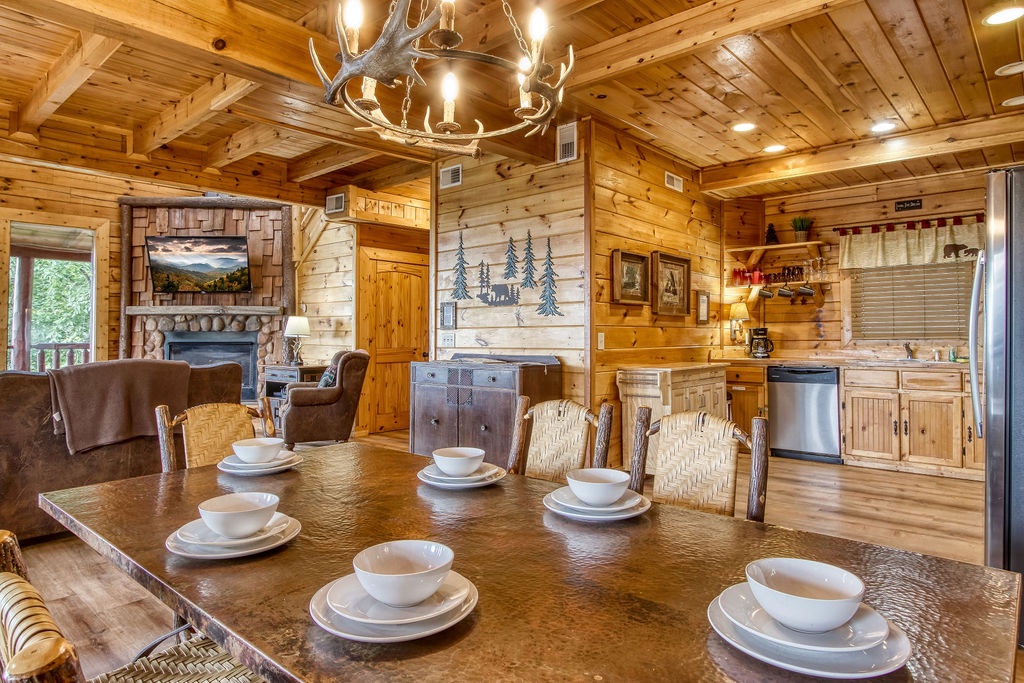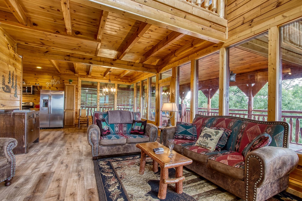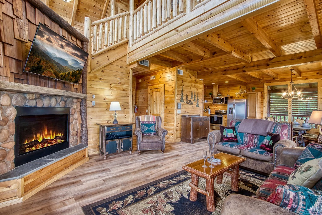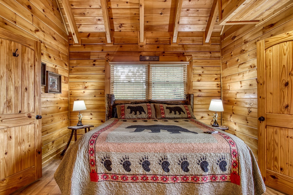This HUGE one-bedroom, two-bath log cabin comfortably sleeps 8, and is perfect to access the National Park and in close proximity to the area attractions. Get a good night’s sleep in the king-sized bed, or one of the two sleeper-sofas to recharge after an eventful day. The bedroom is complete with a flat-screen television, a Jacuzzi tub, and a full bath.