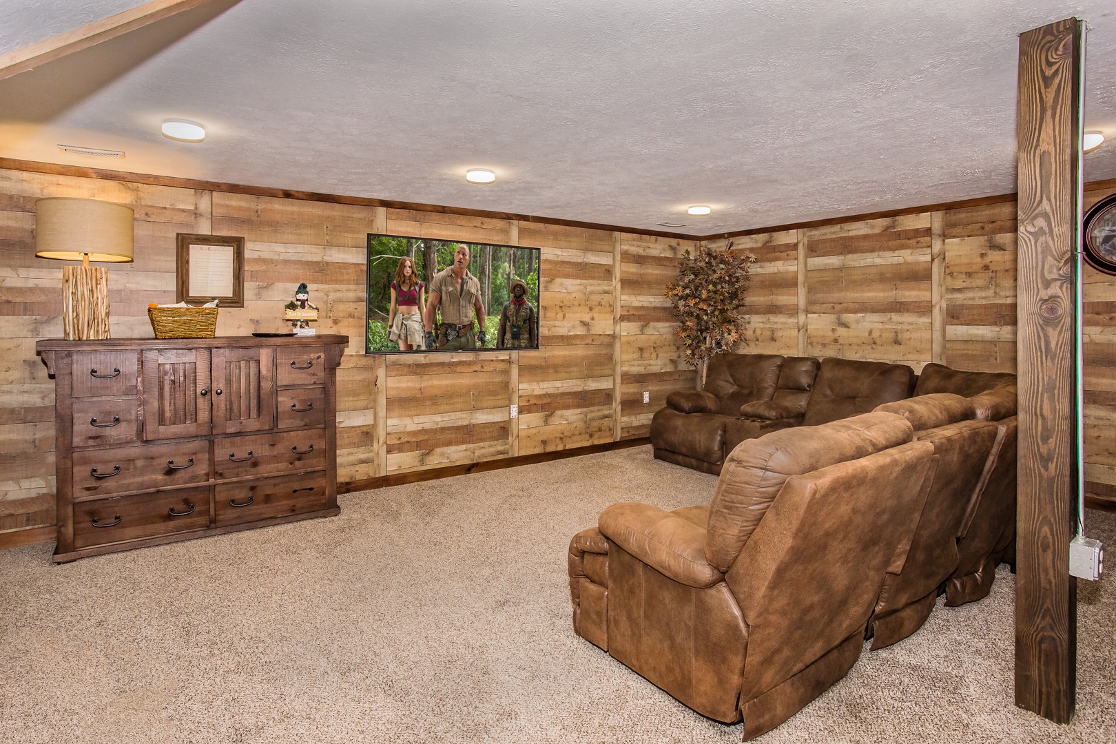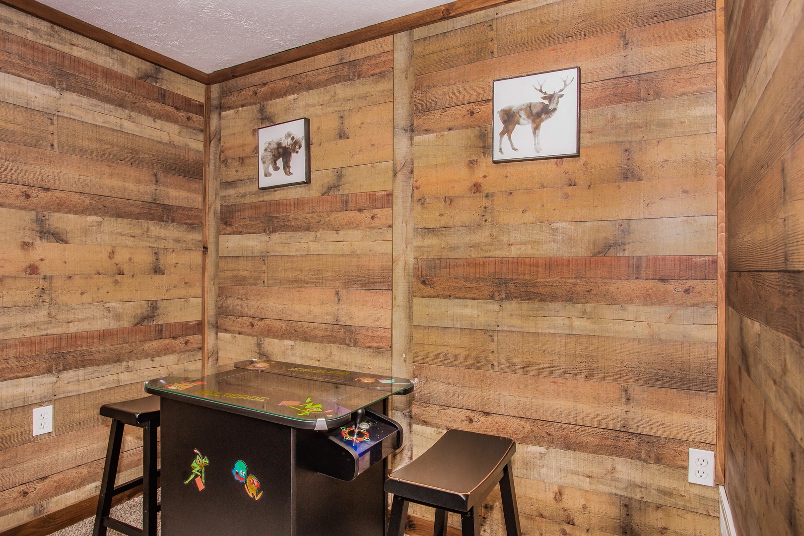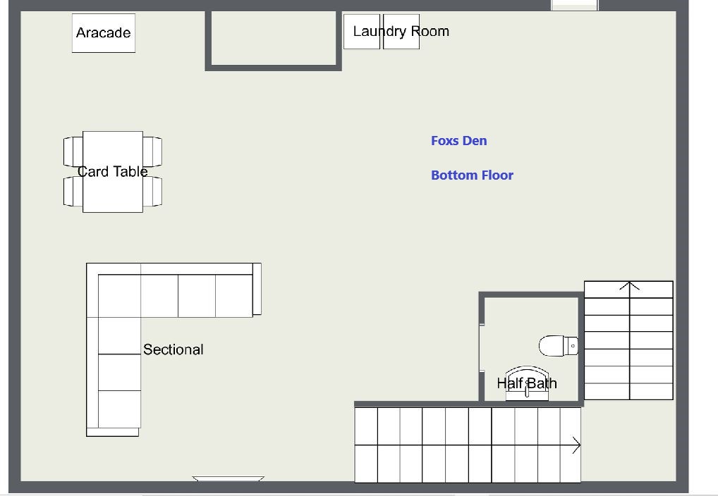 As you travel downstairs you are going to be taken back by all the amenities and comforts of home. Enjoy a movie night on the large Flat screen TV while relaxing on the sectional couch which has reclining ends. If you like to play board games, cards, or just hanging out with family and friends, there is a beautiful table with 6 chairs to enjoy each other's company. Enjoy the tabletop arcade gaming system for those who would rather play a friendly game with family or friends.