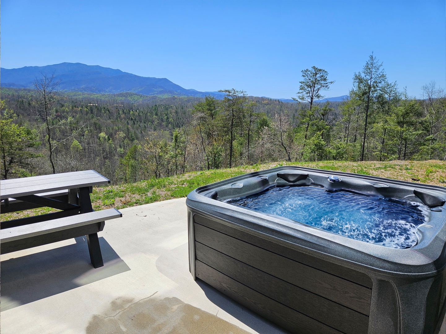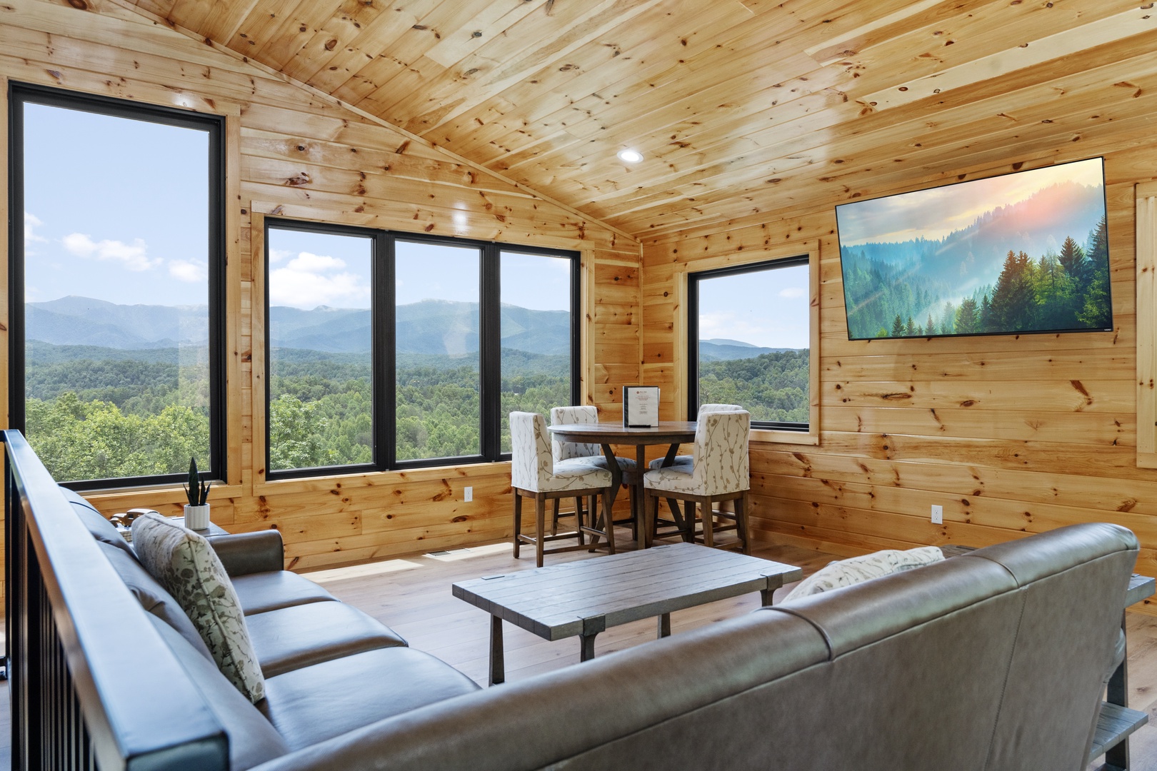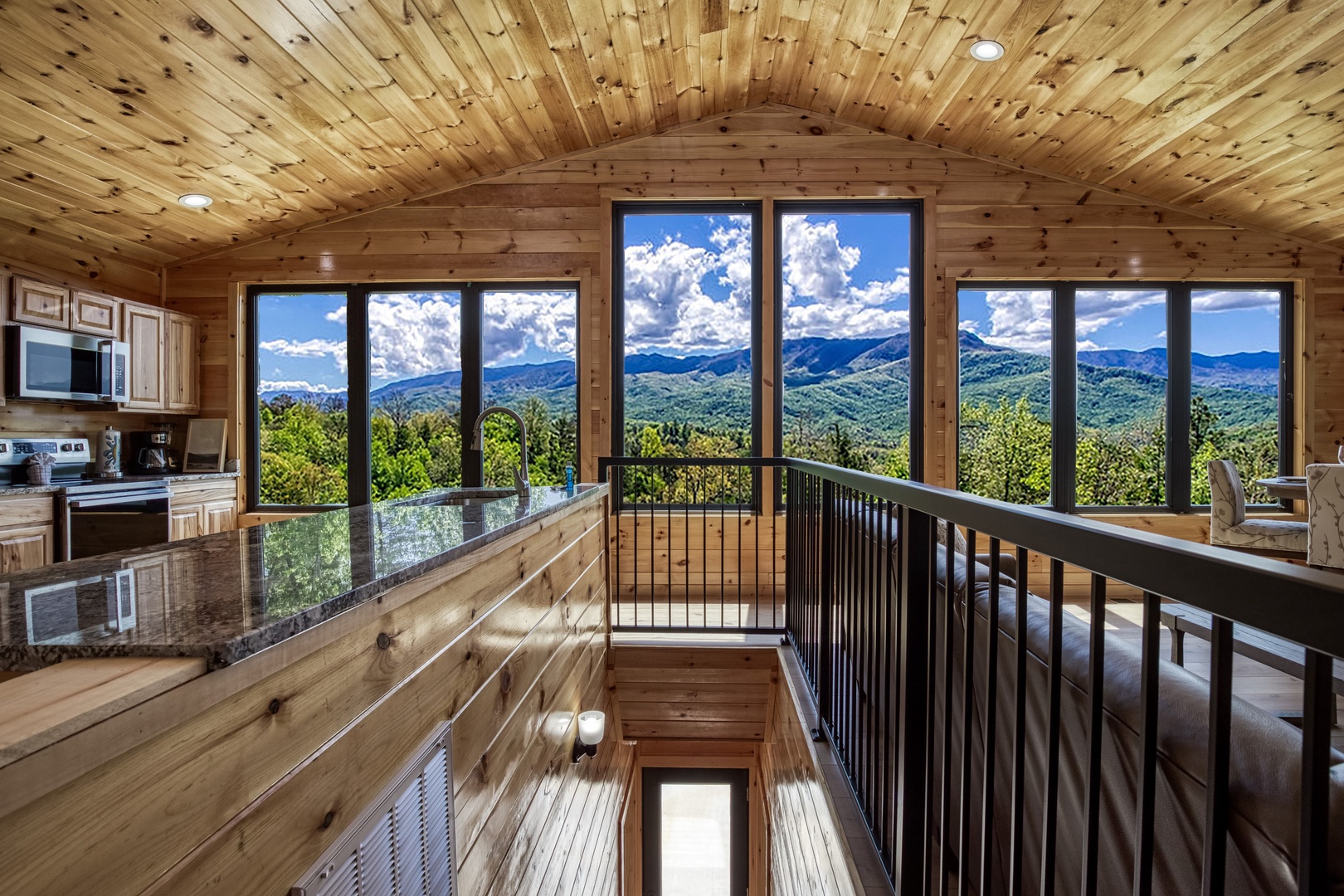 Welcome to the "Grand Vista View" – your ultimate mountain getaway! Nestled amid the awe-inspiring Great Smoky Mountains, the Grand Vista View is a captivating 2-story retreat boasting incredible panoramas that will leave you breathless. With 2 bedrooms and 2.5 baths, this charming cabin offers comfort and luxury wrapped in the lap of nature. As you step onto the main floor, you'll be greeted by a huge Great Room adorned with a soaring cathedral ceiling, providing an airy and spacious ambiance. Floor-to-ceiling picture windows frame the majestic landscape, bringing the outdoors inside and filling the room with abundant natural light. The views of the surrounding mountains will undoubtedly steal your heart. Prepare your favorite meals in the modern kitchen equipped with elegant granite countertops and state-of-the-art stainless steel appliances. Cooking in this charming space will be a delightful experience as you take in the scenic beauty through the windows while crafting your culinary masterpieces. A convenient powder room is also available on this floor, adding to the ease of your stay. On the bottom floor, discover two lavish King master en-suite bedrooms, each a haven of comfort and relaxation. One of the en-suites boasts a custom 6' walk-in shower, offering a luxurious bathing experience. Both bedrooms have direct access to the expansive 32x16 patio, where a wood-burning fire-pit and outside dining area await you. Imagine savoring your morning coffee or unwinding with a glass of wine in the evening, all while being surrounded by the natural splendor of the Great Smoky Mountains. Grand Vista View is the perfect escape for families, couples, or friends seeking a retreat from the hustle and bustle of daily life. Whether you spend your days exploring the nearby trails and national parks, or simply revel in the tranquility of your mountain sanctuary, every moment here promises to be unforgettable. Book your stay at the "Grand Vista View" today and experience the magic of the Great Smoky Mountains like never before. Rejuvenate your spirit, create cherished memories, and immerse yourself in the beauty of nature's grandeur. Your dream vacation awaits