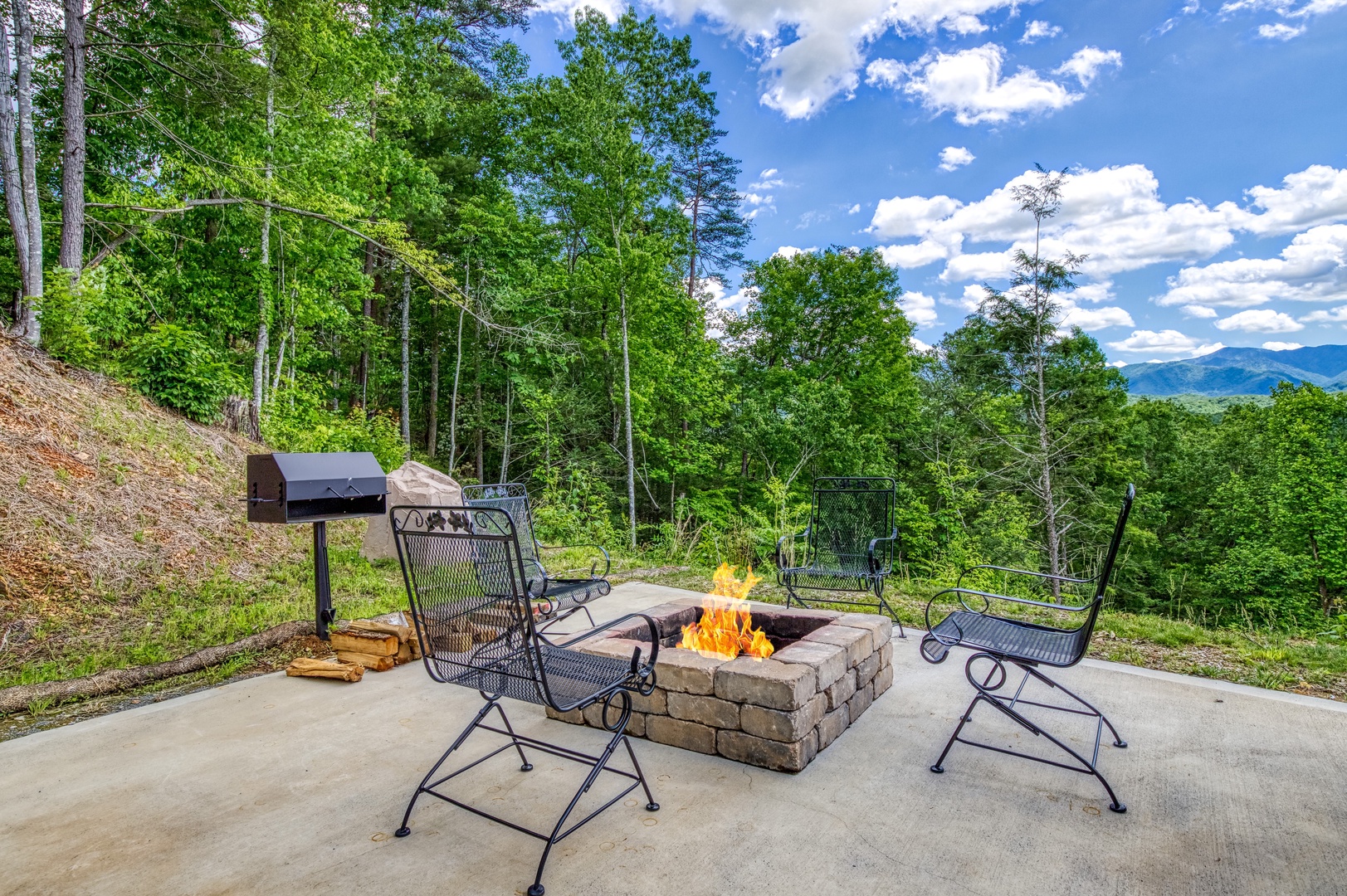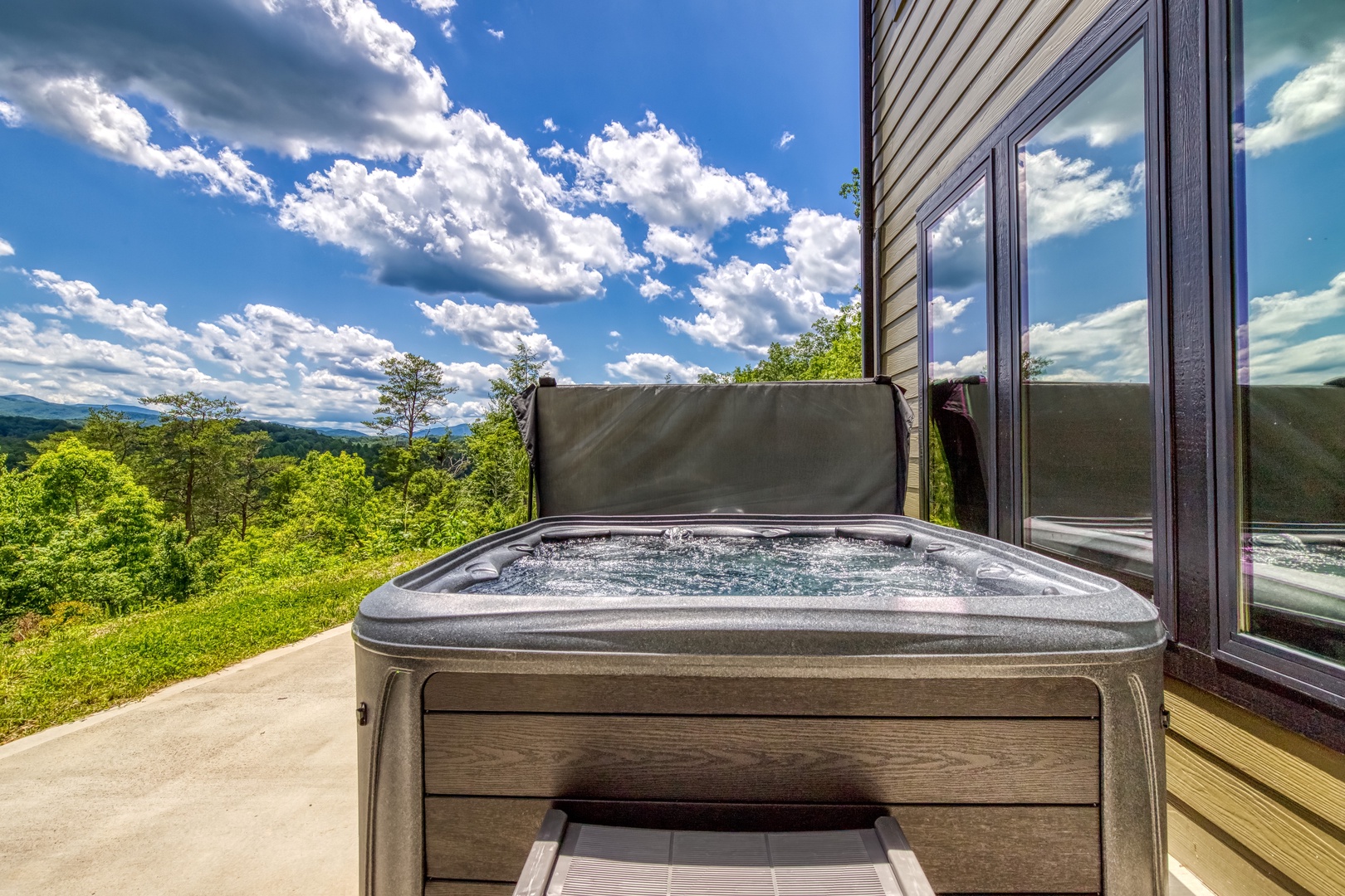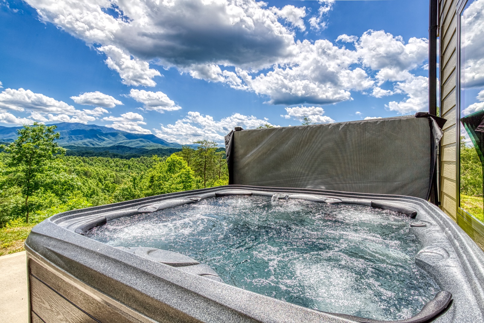 Welcome to the "Grand Vista View" – your ultimate mountain getaway! Nestled amid the awe-inspiring Great Smoky Mountains, the Grand Vista View is a captivating 2-story retreat boasting incredible panoramas that will leave you breathless. With 2 bedrooms and 2.5 baths, this charming cabin offers comfort and luxury wrapped in the lap of nature. As you step onto the main floor, you'll be greeted by a huge Great Room adorned with a soaring cathedral ceiling, providing an airy and spacious ambiance. Floor-to-ceiling picture windows frame the majestic landscape, bringing the outdoors inside and filling the room with abundant natural light. The views of the surrounding mountains will undoubtedly steal your heart. Prepare your favorite meals in the modern kitchen equipped with elegant granite countertops and state-of-the-art stainless steel appliances. Cooking in this charming space will be a delightful experience as you take in the scenic beauty through the windows while crafting your culinary masterpieces. A convenient powder room is also available on this floor, adding to the ease of your stay. On the bottom floor, discover two lavish King master en-suite bedrooms, each a haven of comfort and relaxation. One of the en-suites boasts a custom 6' walk-in shower, offering a luxurious bathing experience. Both bedrooms have direct access to the expansive 32x16 patio, where a wood-burning fire-pit and outside dining area await you. Imagine savoring your morning coffee or unwinding with a glass of wine in the evening, all while being surrounded by the natural splendor of the Great Smoky Mountains. Grand Vista View is the perfect escape for families, couples, or friends seeking a retreat from the hustle and bustle of daily life. Whether you spend your days exploring the nearby trails and national parks, or simply revel in the tranquility of your mountain sanctuary, every moment here promises to be unforgettable. Book your stay at the "Grand Vista View" today and experience the magic of the Great Smoky Mountains like never before. Rejuvenate your spirit, create cherished memories, and immerse yourself in the beauty of nature's grandeur. Your dream vacation awaits