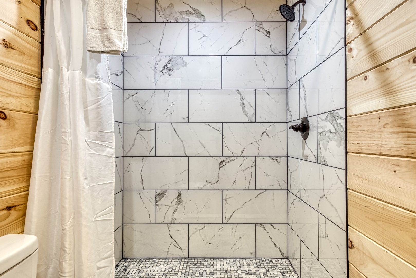 The kitchenette is a delightful space, equipped for reheating meals. Step into the custom-designed bathroom, where a delightful surprise awaits. A lavish 6' shower offers a spa-like experience right in the comfort of your cabin. Indulge in the rejuvenating water flow as you let go of all your worries and soak in the moment of pure relaxation.
