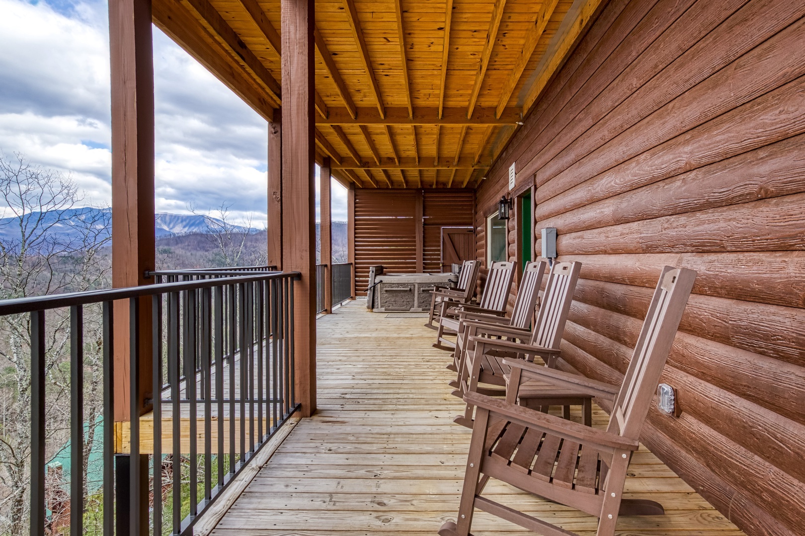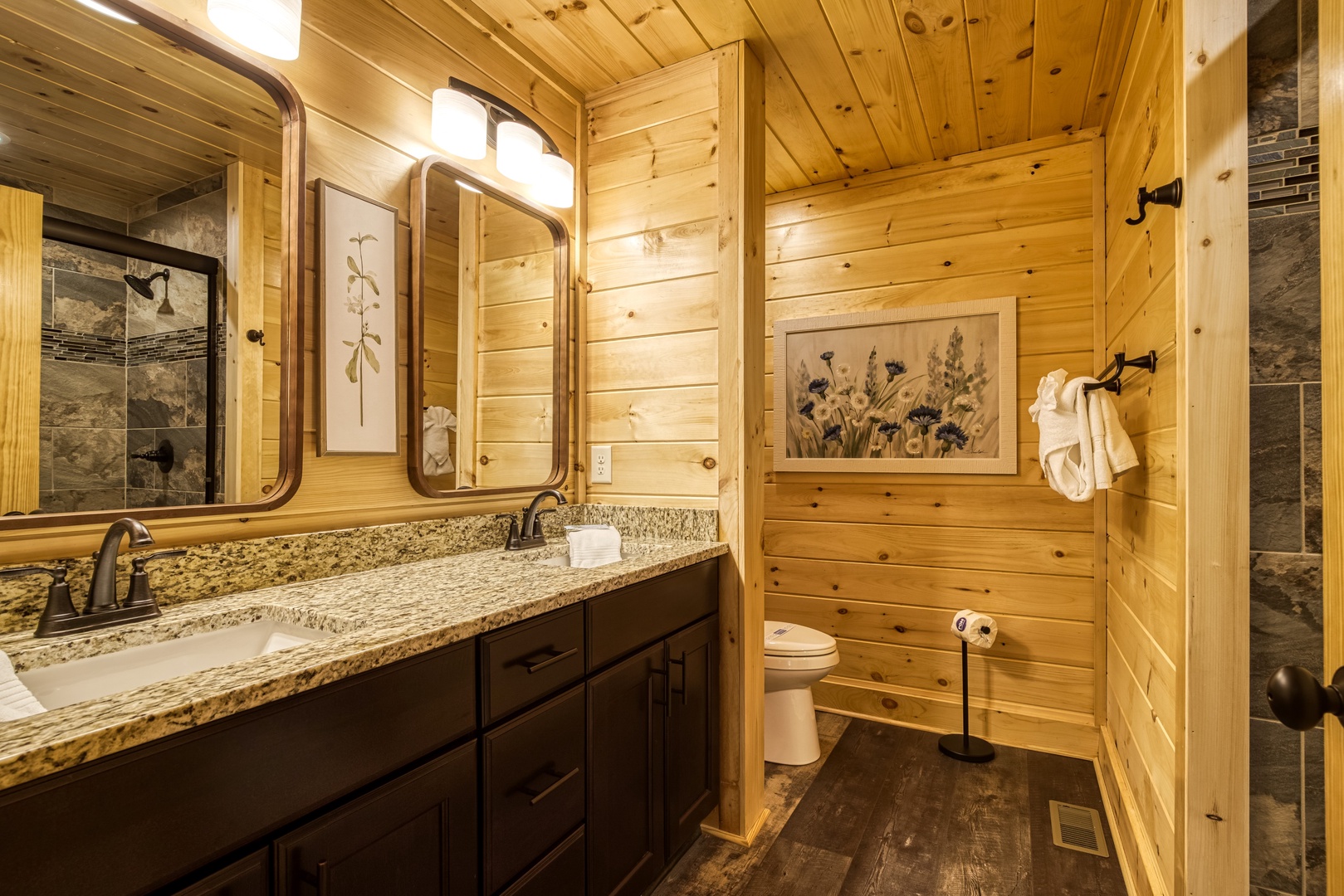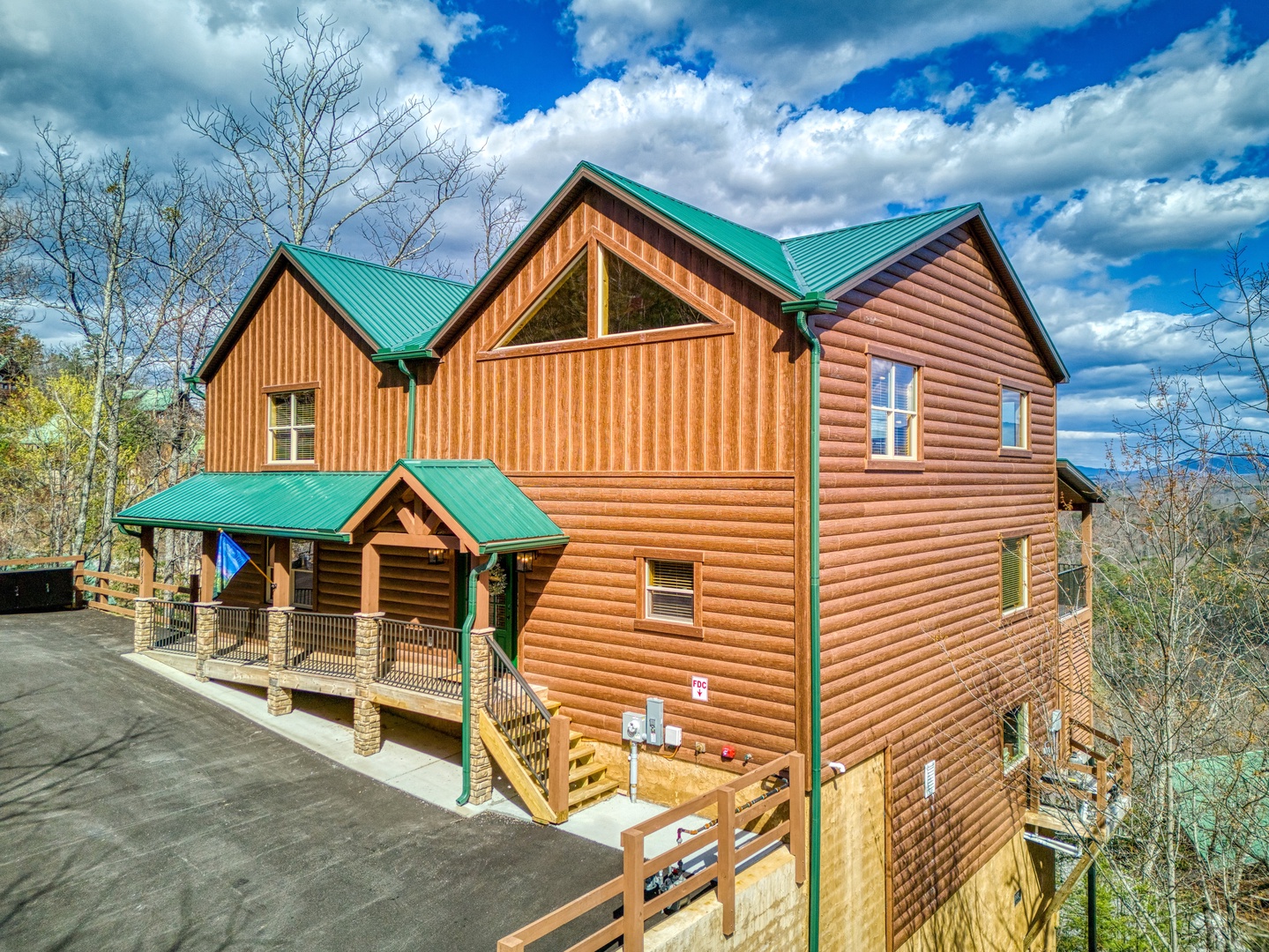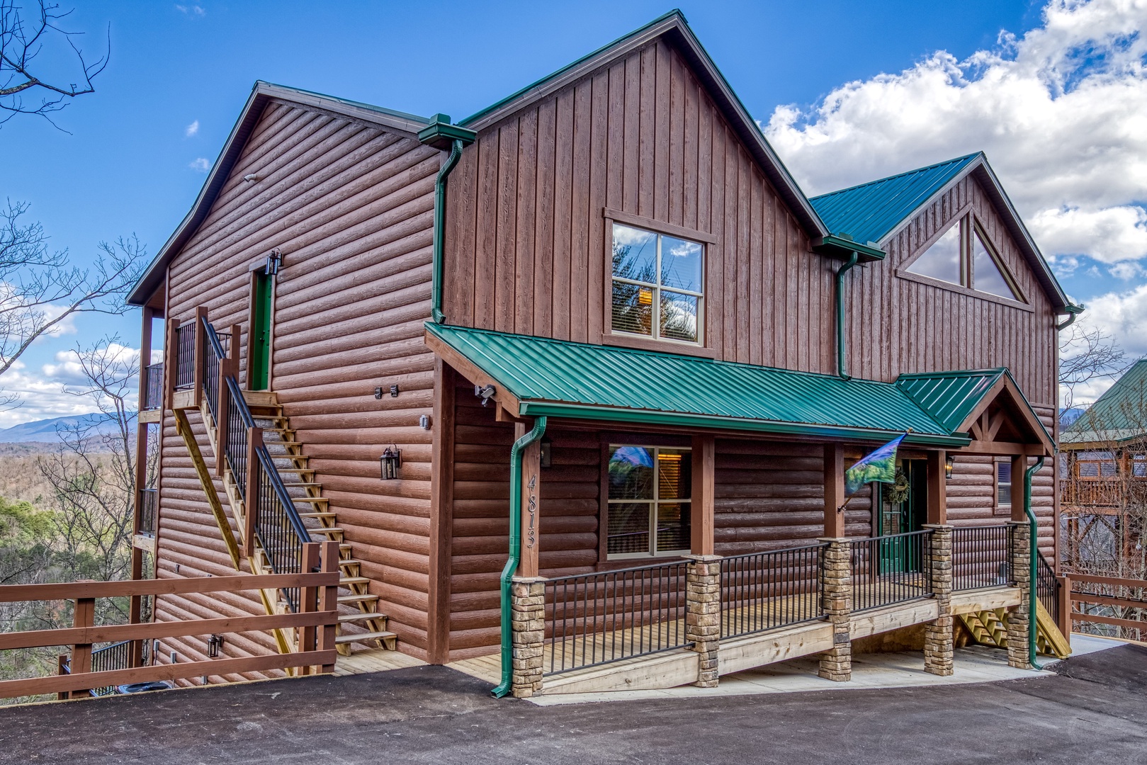THE GRITZ CARLTON LODGE - This incredible pair of brand-new luxury cabins in the very popular Sherwood Forest Resort is conveniently located to all Pigeon Forge and Gatlinburg attractions and very close to The Great Smoky Mountains National Park. The Gritz Carlton Lodge accommodates 36 guests across the two buildings. Each unit features breathtaking mountain views with 5 bedrooms, 5 bathrooms, 2 half bathrooms, theater room, game room, hot tub, indoor heated swimming pool, 3 decks, ample parking with wheelchair accessibility to the main level, and a code compliant fire suppression system.