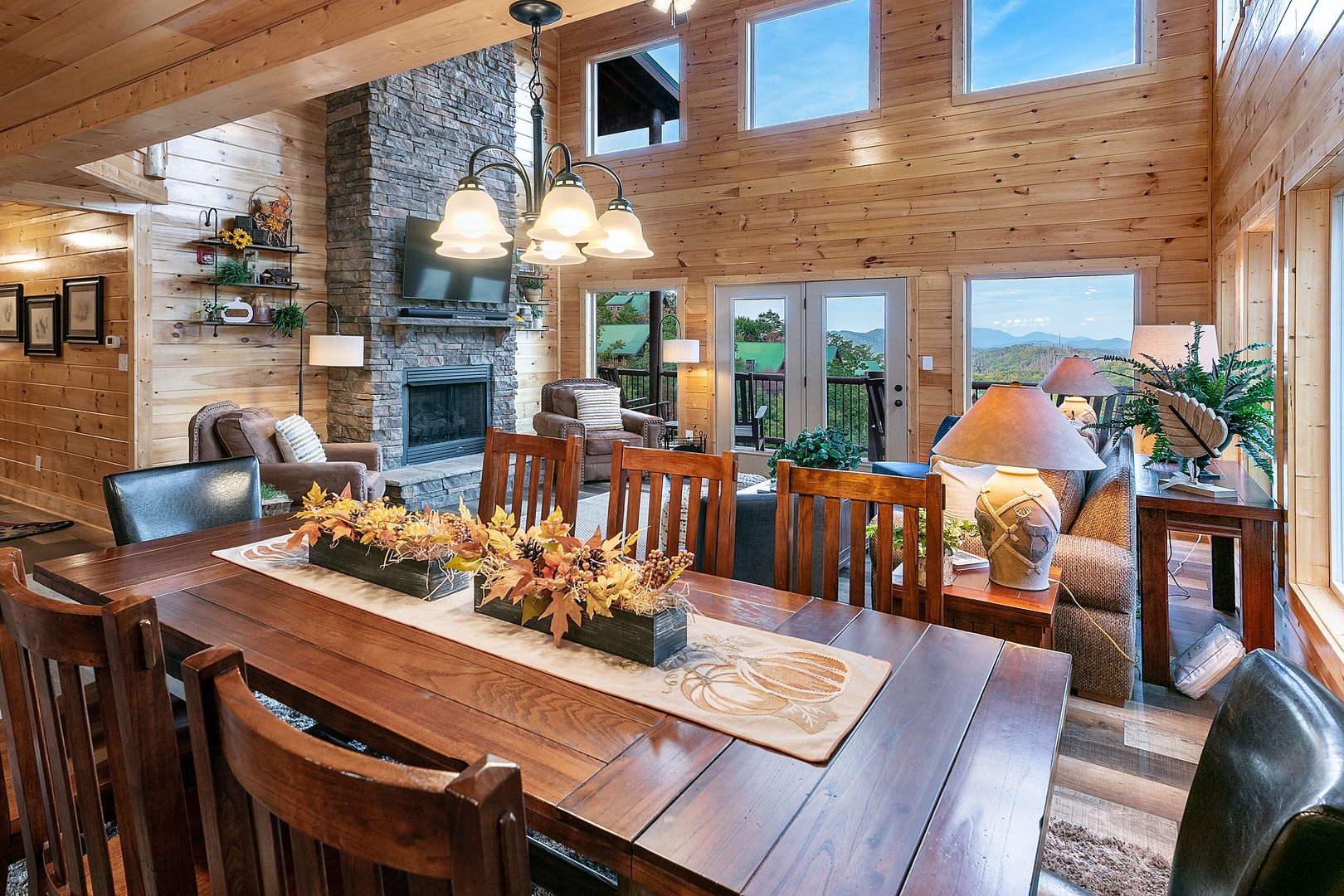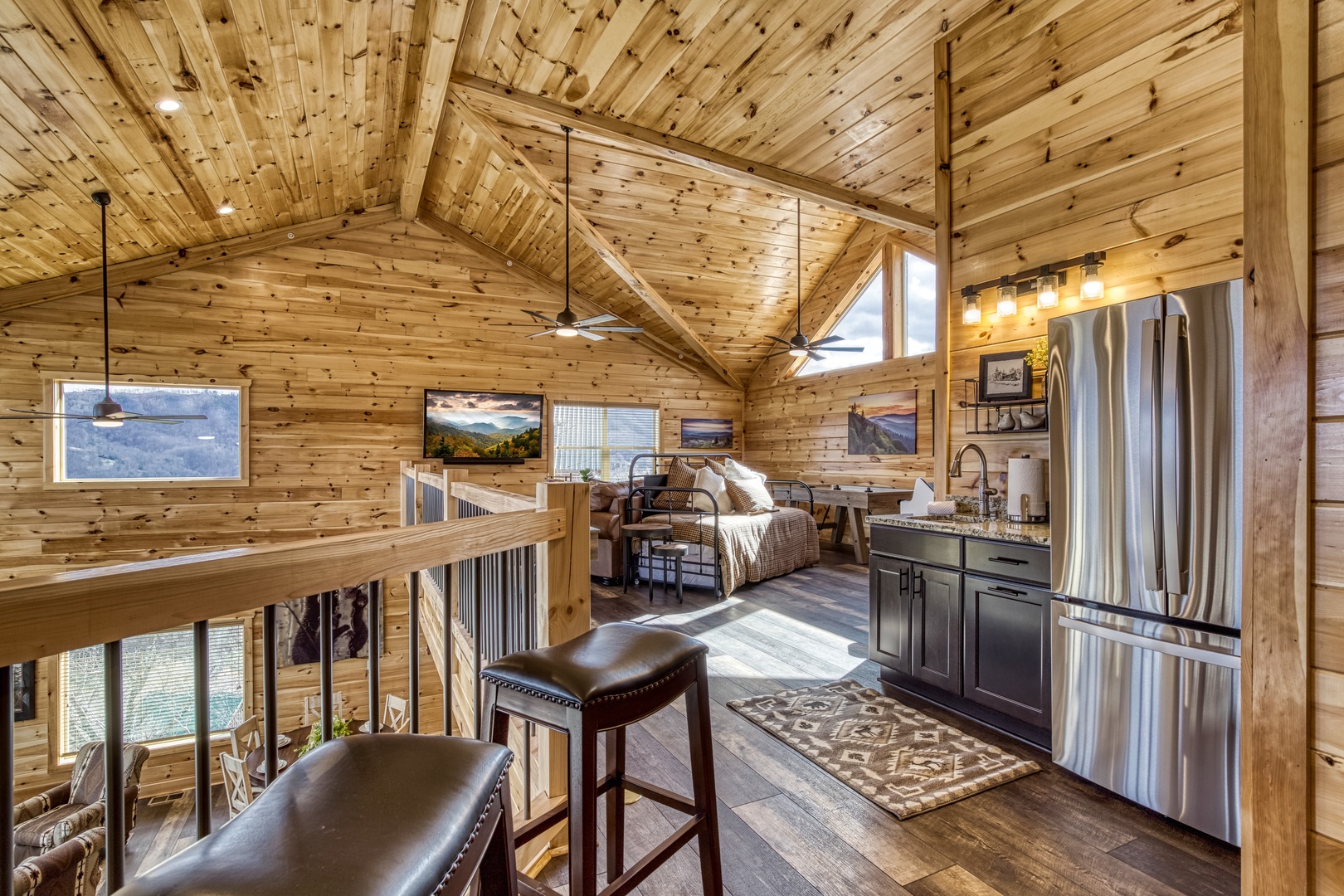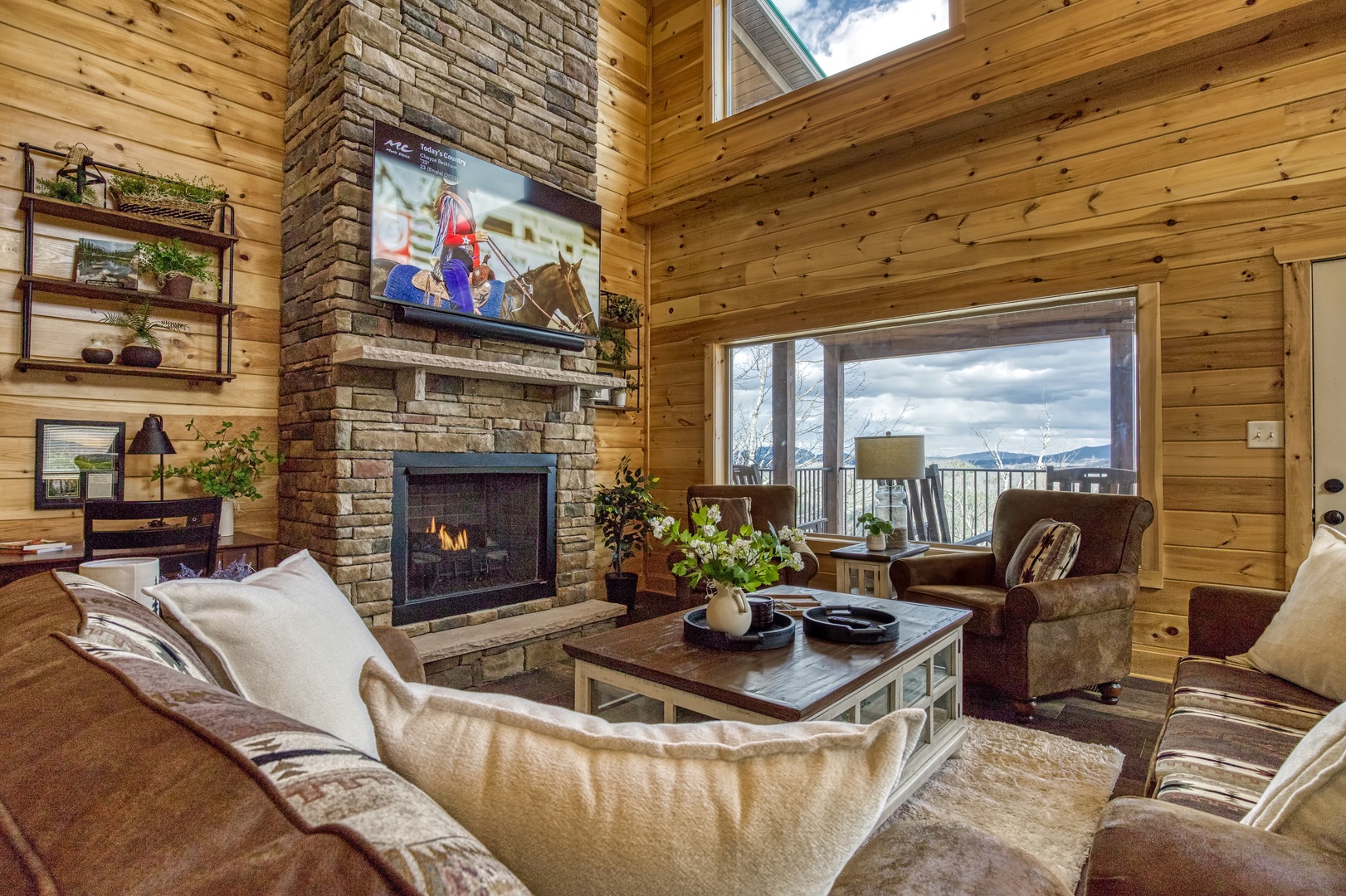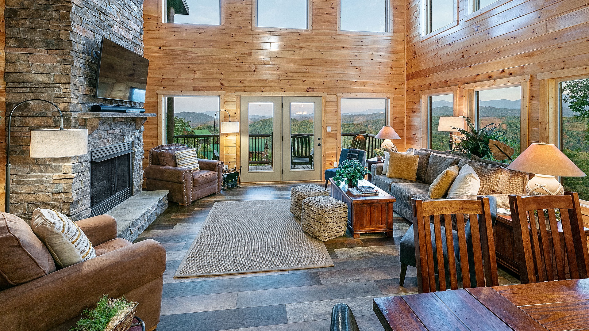 The great room has a flat screen TV with a Sonos speaker, sleeper sofa, 4 comfortable chairs, and a gas fireplace. The open floor plan promotes socializing while preparing your favorite meal and enjoying the magnificent views.