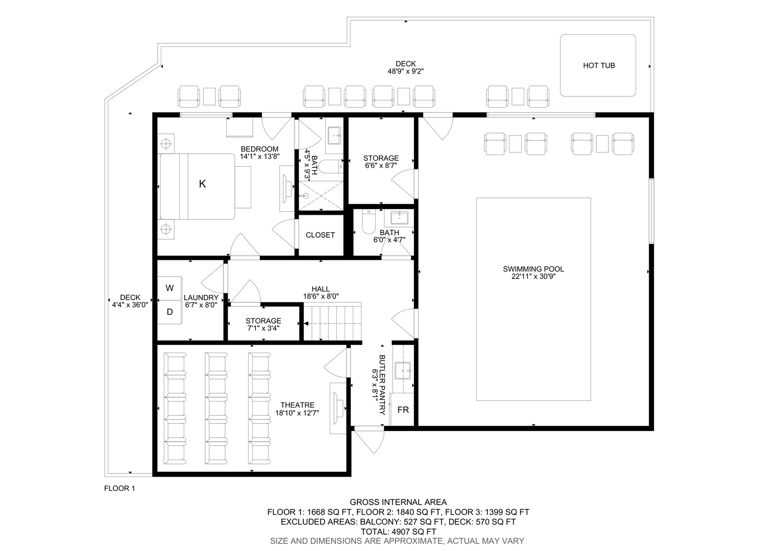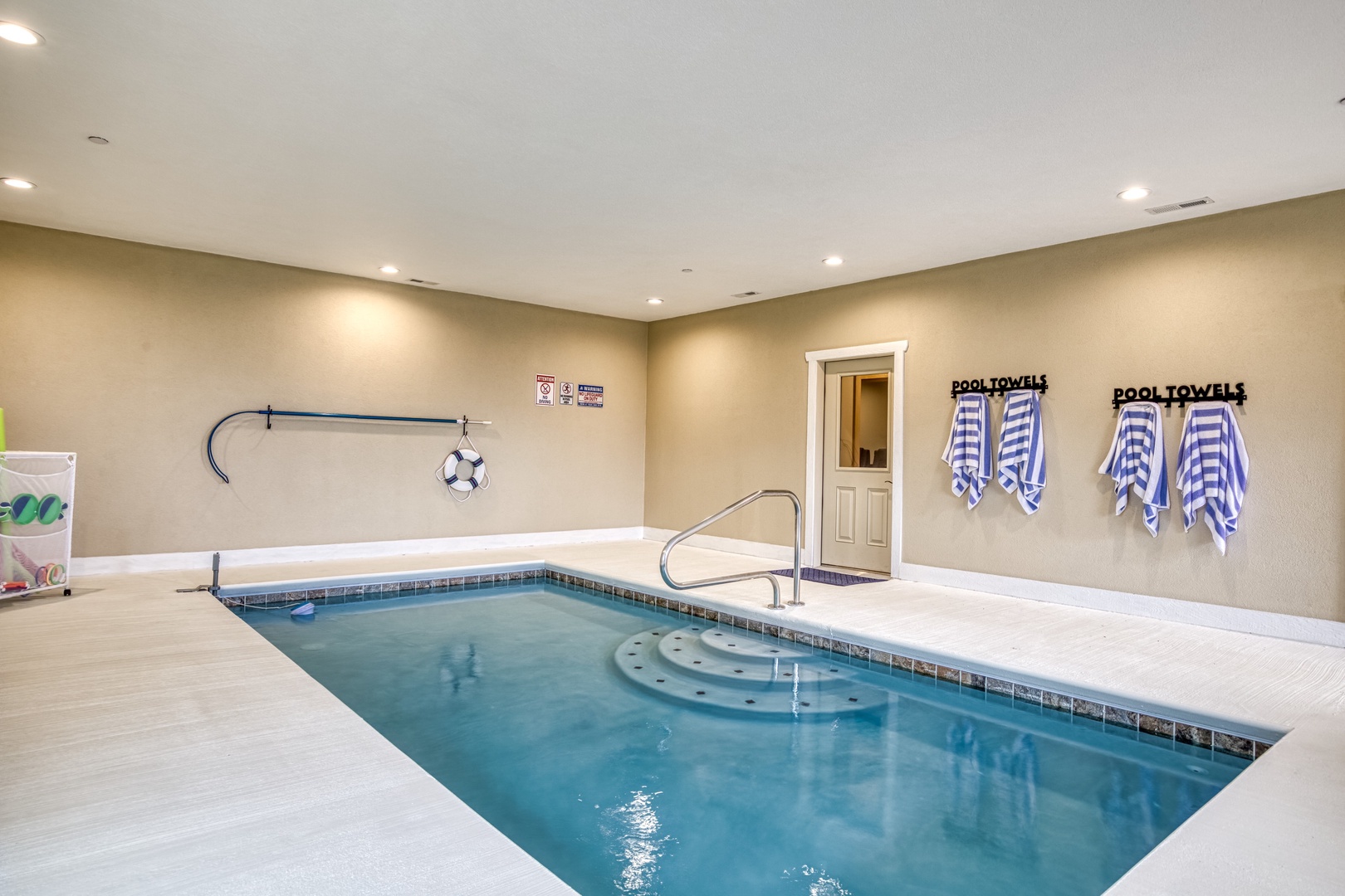 The lower level has a fantastic indoor heated pool, outdoor hot tub, half bathroom, laundry room, and an impressive theater room with a huge screen and surround sound with seating for 18. The bedroom has a king bed and private bathroom with shower and access to the deck. Reserve The Gritz Carlton II today for your mountain vacation and begin making memories for life.