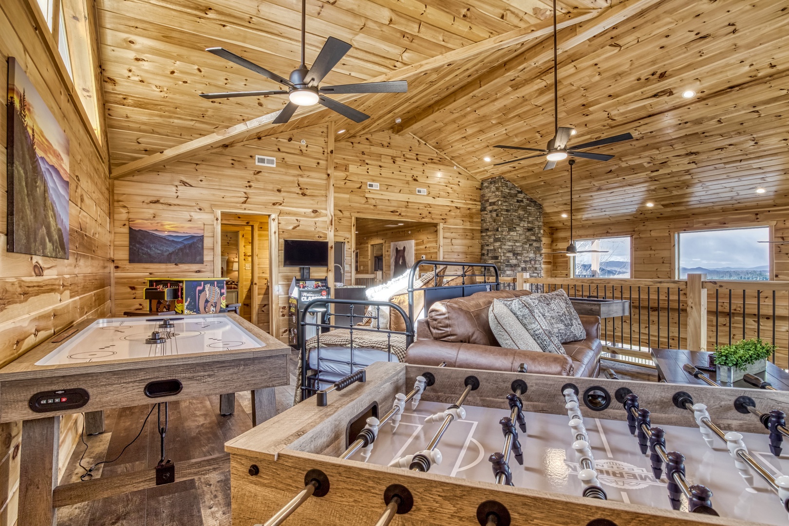 The amazing game room offers shuffleboard, air hockey, a multicade game, flat screen TV, sleeper sofa, day bed, and a bar table to play your favorite board/card games. Make sure you bring your favorite video games to enjoy on the Smart TV.