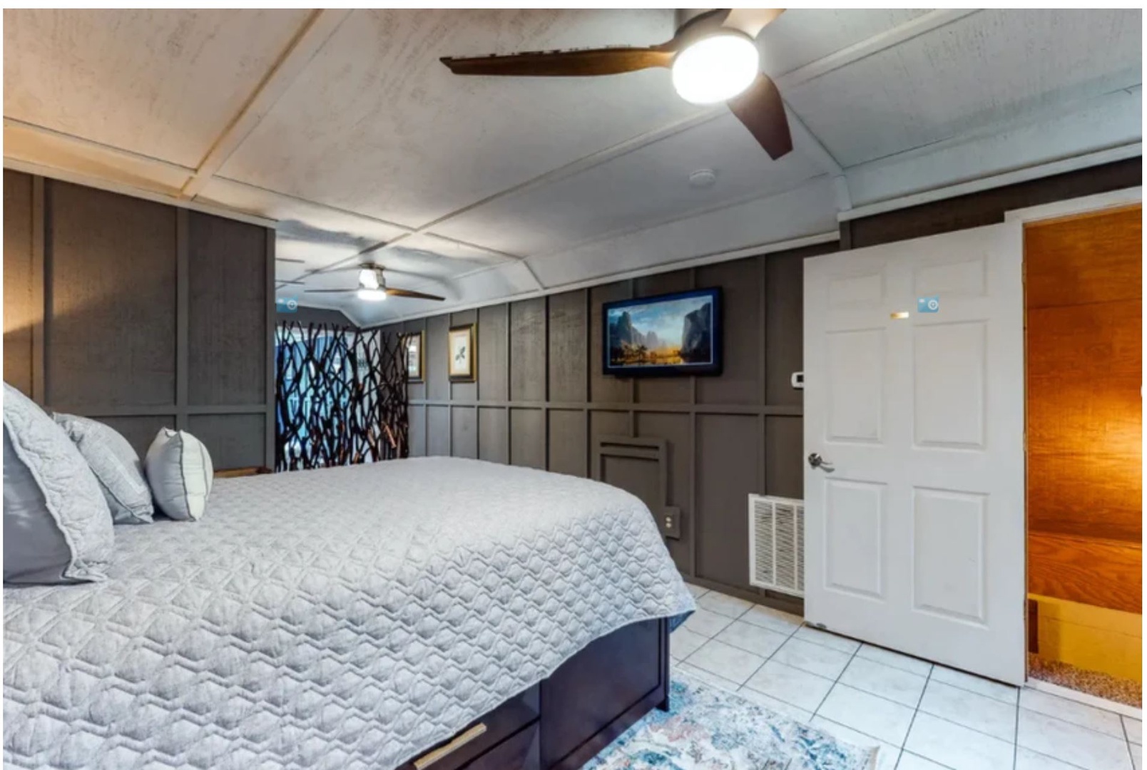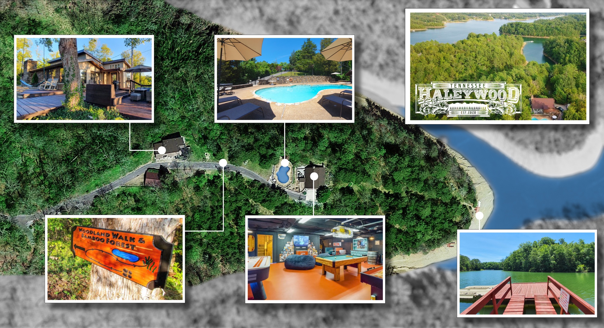 Escape to a serene oasis on the shores of Lake Douglas, where tranquility and adventure meet. Welcome to our exceptional vacation rental, a haven nestled on a private 12.5-acre peninsula. Here, you'll find not one, but two charming cabins that promise an unforgettable getaway for your family and friends. We proudly introduce you to "Haleywood." The Lodge: 2 Bedrooms, Sleeps 6 The main cabin, affectionately known as "The Lodge," exudes classic charm. As you enter, you'll appreciate the attention to detail and comfortable living spaces. The Lodge features two bedrooms, perfect for accommodating up to 6 guests. Please note there are some small steps within the home. Kitchen & Dining: The gourmet kitchen boasts granite countertops and an array of small appliances for your culinary pleasure. A central island, which comfortably seats 8, invites you to gather for breakfast or engage in lively cooking conversations. The spacious dining area, with seating for 10, seamlessly flows into the living room. Living Room: Relax in the living room, where a reclining loveseat and a large flat-screen TV await. A wood-burning stove adds warmth and ambiance. You'll also find a piano and a bar cabinet for your entertainment. Bedrooms: The master bedroom features a luxurious Queen bed and a flat-screen TV. The second bedroom offers a cozy Full-sized bed and a flat-screen TV. Don't forget to explore the unique Money Pit Bathroom, adorned with a penny floor that hides treasures like an old Roman coin from 300 AD, an early Indian penny, and even some British coins! Step outside the Lodge to discover a gas grill for your convenience and a beautiful outdoor living space with a gas fire pit. Seasonal Salt Water Pool: Further down the driveway, you'll find our seasonal outdoor salt water pool, providing plenty of space for relaxation while the kids enjoy the water. The Cottage: Custom Gaming Area, 2 Bedrooms, Sauna Just beyond the pool lies "The Cottage," your gateway to entertainment and relaxation. Enter through the bottom door to discover a custom gaming area equipped with a multi-game arcade, pool table, air hockey, shuffleboard, and a large flat-screen TV. Sink into huge bean bags or choose from various unique seating options to unwind. Kitchen & Bedrooms: The Cottage features a quaint kitchenette for preparing quick snacks. Head to the top floor to find a Queen bedroom with a flat-screen TV and a gas fireplace. A bathroom with a walk-in shower and a kid's bunk room with 4 Twin beds bunk bed style complete this level. Outdoor Activities: The Cottage is also home to the kayaks provided for your use. Grab them and embark on the "Woodland Walk/Bamboo Garden" trail to the lake for exploration. Alternatively, you can rent or bring a boat and dock it at the end of the trail. Please note that kayaks should be returned to their designated area upon departure. Safety is paramount, so ensure that children are supervised around any water sources. Your getaway at Haleywood promises the perfect blend of relaxation and adventure, all within the embrace of nature's beauty. Book your stay now and create cherished memories by the shimmering waters of Lake Douglas. What's nearby: With 12 acres of lakefront property at your fingertips, you need never leave home to have an unforgettable time. There is a nature trail and a private dock on the grounds, as well as public boat ramps at TRWA Flat Creek Access and Mountain Cove Marina. When you're not soaking in the Tennessee sunshine on Douglas Lake, you'll be eight miles northeast of downtown Sevierville, 14 miles north of Dollywood and Splash Country, and 15 miles north of downtown Pigeon Forge. If you're a nature lover, you'll find countless sources of entertainment in Great Smoky Mountains National Park (23 miles south), a wonderful place to observe wildlife, fish, hike, and take long, scenic drives in every season.