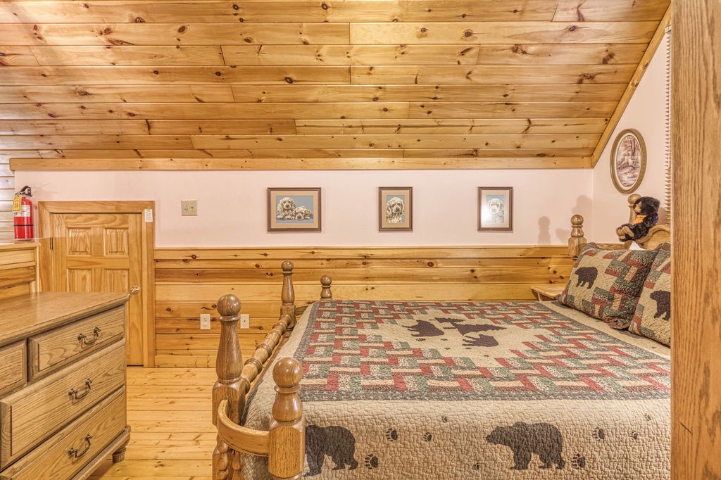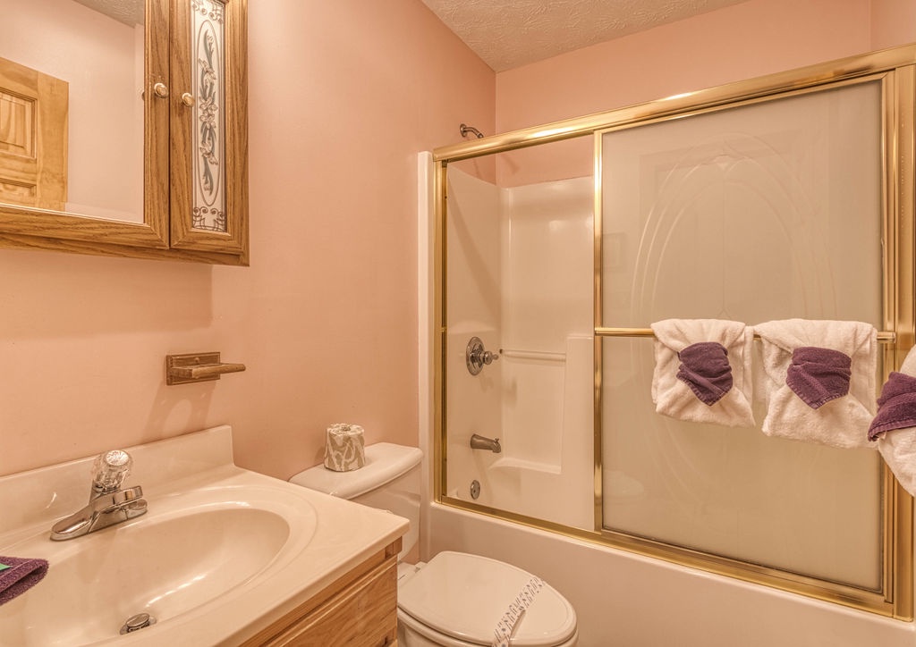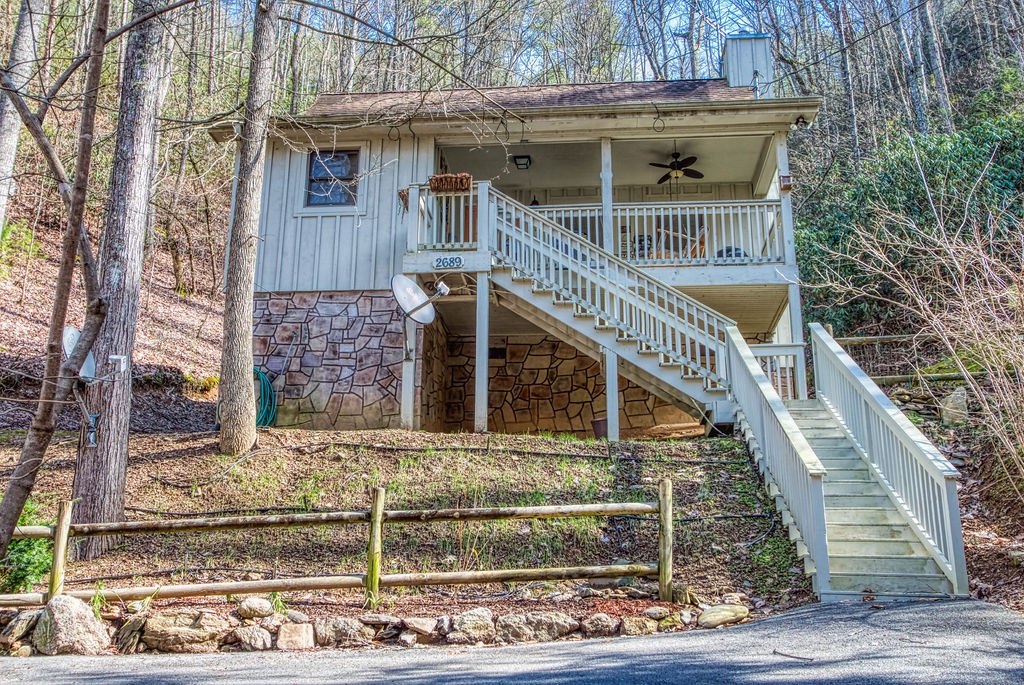 "Hemlock Hollow" is a quaint cottage nestled among the Hemlock trees in the beautiful Wears Valley area. This 2 bedroom 2 bathroom cottage that sleeps 6 is approximately 10 minutes from Townsend, 15 minutes from Pigeon Forge, and 25 minutes from Gatlinburg. The road going to the cottage is paved, then you will travel a peaceful, serene, wooded gravel drive until you reach "Hemlock Hollow." Once you reach the chalet, the driveway is paved with an incline and will accommodate 2 vehicles comfortably. This cabin is not motorcycle or trailer friendly. With 29 steps to enter the cottage, you will be amazed by all the comforts of home when you step inside. On the main level, you will find a spacious living room with a comfortable sleeper sofa couch and two new recliners to kick your feet up after a long day of hiking or sightseeing. On those winter nights, relax and escape from reality in front of the gas fireplace while watching TV or reading a book. Adjoining the living room you will find the laundry room with a washer and dryer for your convenience. Adjacent to the living room is the dining area where you will have a fully equipped kitchen and dining for 4 people comfortably. Also located on the main level is a bedroom with a shared bathroom. In this bedroom, you will find a beautiful and comfortable Queen size bed and bathroom with a shower/tub combo and a Flat screen TV. In the upstairs loft, which is open to below, you find the 2nd bedroom and bathroom. In this bedroom, you will find a lovely Queen size bed and also have your very own private bathroom with a walk-in shower only. "Hemlock Hollow" encourages relaxation and family time both inside and outside. Enjoy your morning coffee on the covered deck and listening to all the birds chirping around you. If you enjoy cooking out on those spring or summer nights, there is a charcoal grill for your use; just bring your favorite food to grill and charcoal, and then you're ready to go. "Hemlock Hollow" is also pet-friendly and has an area for your furry friend to run and play outside and no need to worry about traffic since the cottage is on a dead end drive. This adorable cottage offers pool access and fishing pond access at Honeysuckle Meadows for those days you really just want to relax and let the kids play in the water or go fishing in the catch and release pond. If you are looking for a great, relaxing, and peaceful vacation, then look no farther than "Hemlock Hollow" to enjoy your mountain vacation. Don't miss out---Book this cabin today!!!!!! This cabin is pet-friendly. ***There is a $75 + tax non-refundable pet fee for each pet. Max 40 pounds per pet and must be crated if left alone on property ***