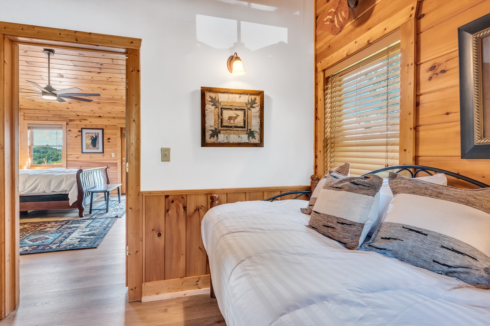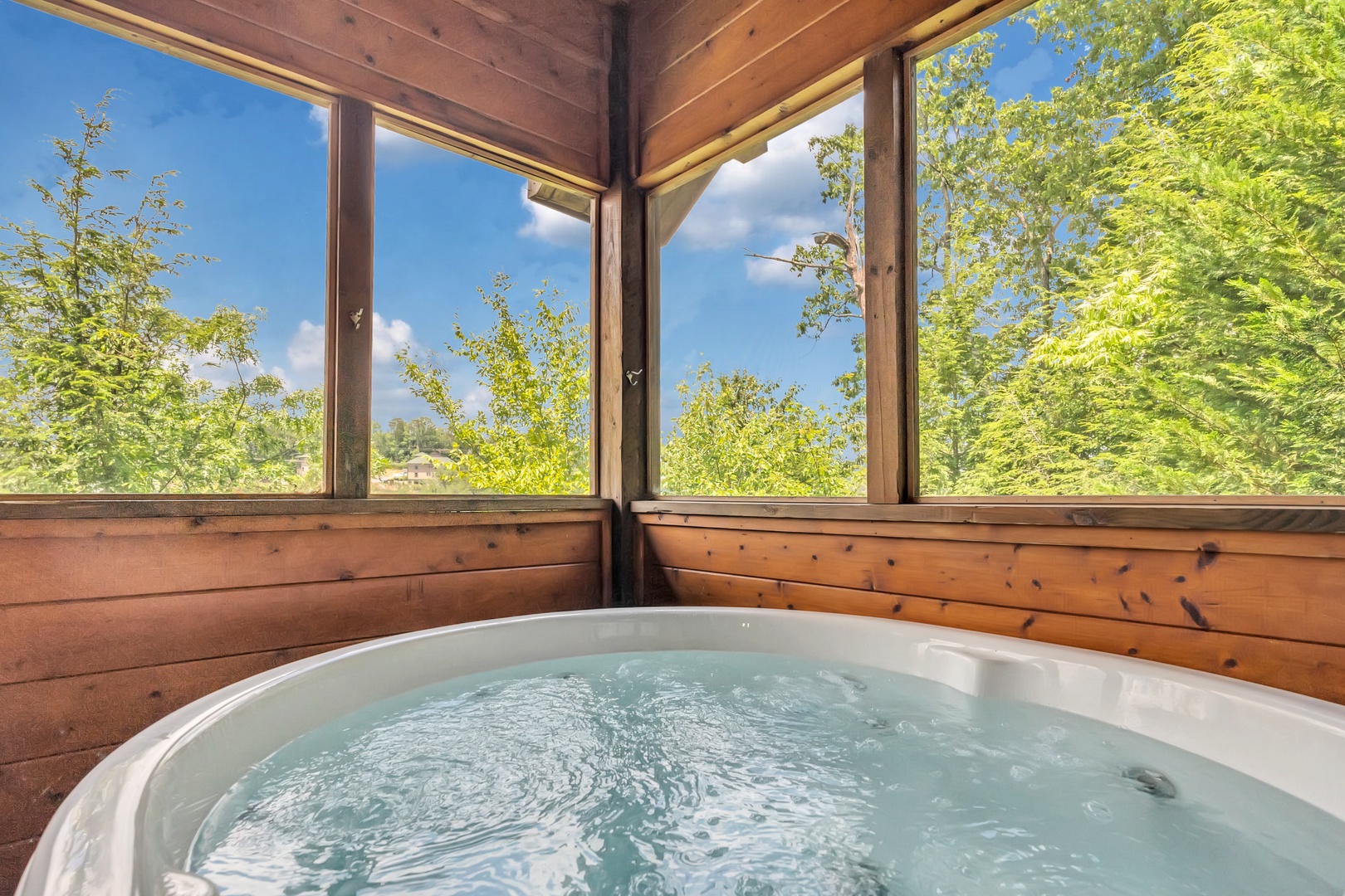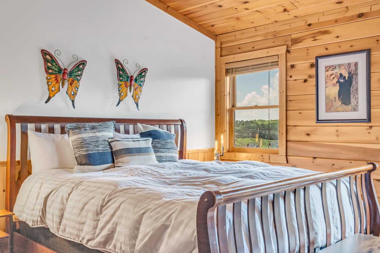Welcome to the Golf View Resort in Pigeon Forge, where you'll find this charming three-level townhouse cabin, offering a delightful combination of comfort and amenities. Nestled within the resort, this cabin provides a fantastic vacation experience for guests seeking relaxation and entertainment. The main floor greets you with a warm and inviting living room featuring a cozy fireplace, creating the perfect ambiance for gatherings with family and friends. Adjacent to the living area is a dining area, allowing you to enjoy meals together. The fully equipped kitchen provides all the essential appliances and utensils you need to prepare delicious meals. Additionally, a full bathroom with a washer and dryer is available on this floor for your convenience. Step outside onto the deck and discover a hot tub, inviting you to unwind and soak. Ascending to the top floor, you'll find an open loft area with a Twin Daybed ideal for additional sleeping arrangements or a cozy reading nook. This floor also houses a private King Master ensuite, complete with its own deck, offering a tranquil space to enjoy your morning coffee or stargaze at night. The additional 2 twins are rollaways located in the upper bedroom closet Descending to the bottom floor, you'll discover an open studio-style room designed for entertainment and relaxation. It features a kitchenette, allowing you to prepare snacks and beverages easily. The room offers a comfortable King bed and a queen bed, ensuring ample sleeping space for guests. A full bathroom is also available on this level. Entertainment options abound with an arcade game and a fireplace, creating a cozy atmosphere. From this floor, you can access the lower-level deck, providing a peaceful outdoor retreat. The Golf View Resort itself offers an array of amenities for guests to enjoy. Take a dip in the indoor or outdoor pool, perfect for cooling off on warm days. Relax and rejuvenate in the sauna, allowing your cares to melt away. If you prefer to dine al fresco, the community grilling area provides an ideal space for cookouts and picnics. Whether you're seeking relaxation, family bonding, or entertainment, this three-level townhouse cabin in Golf View Resort has everything you need for a memorable vacation experience. Unwind in the hot tub, enjoy the resort amenities, and create lasting memories in the beautiful surroundings of Pigeon Forge.