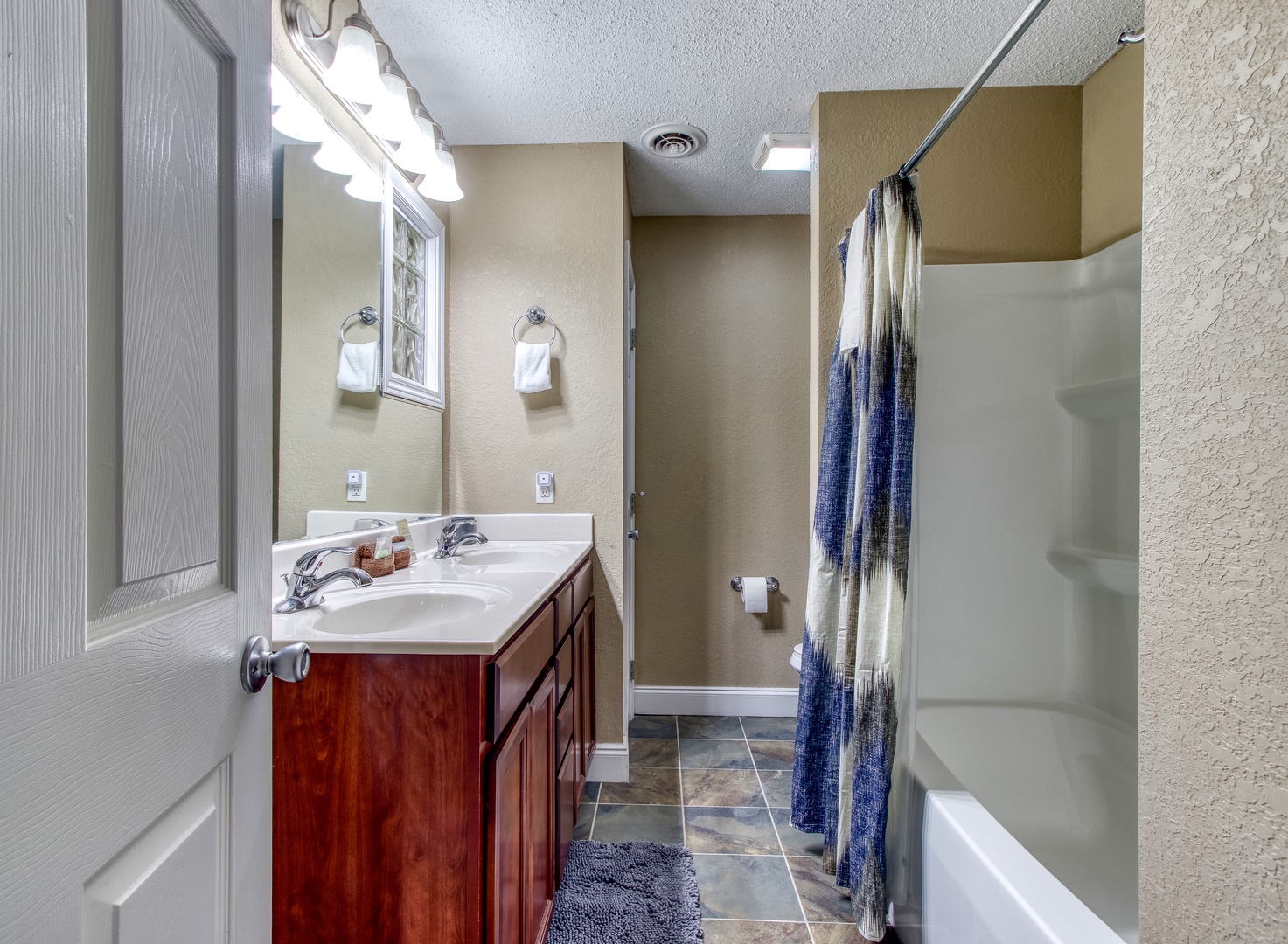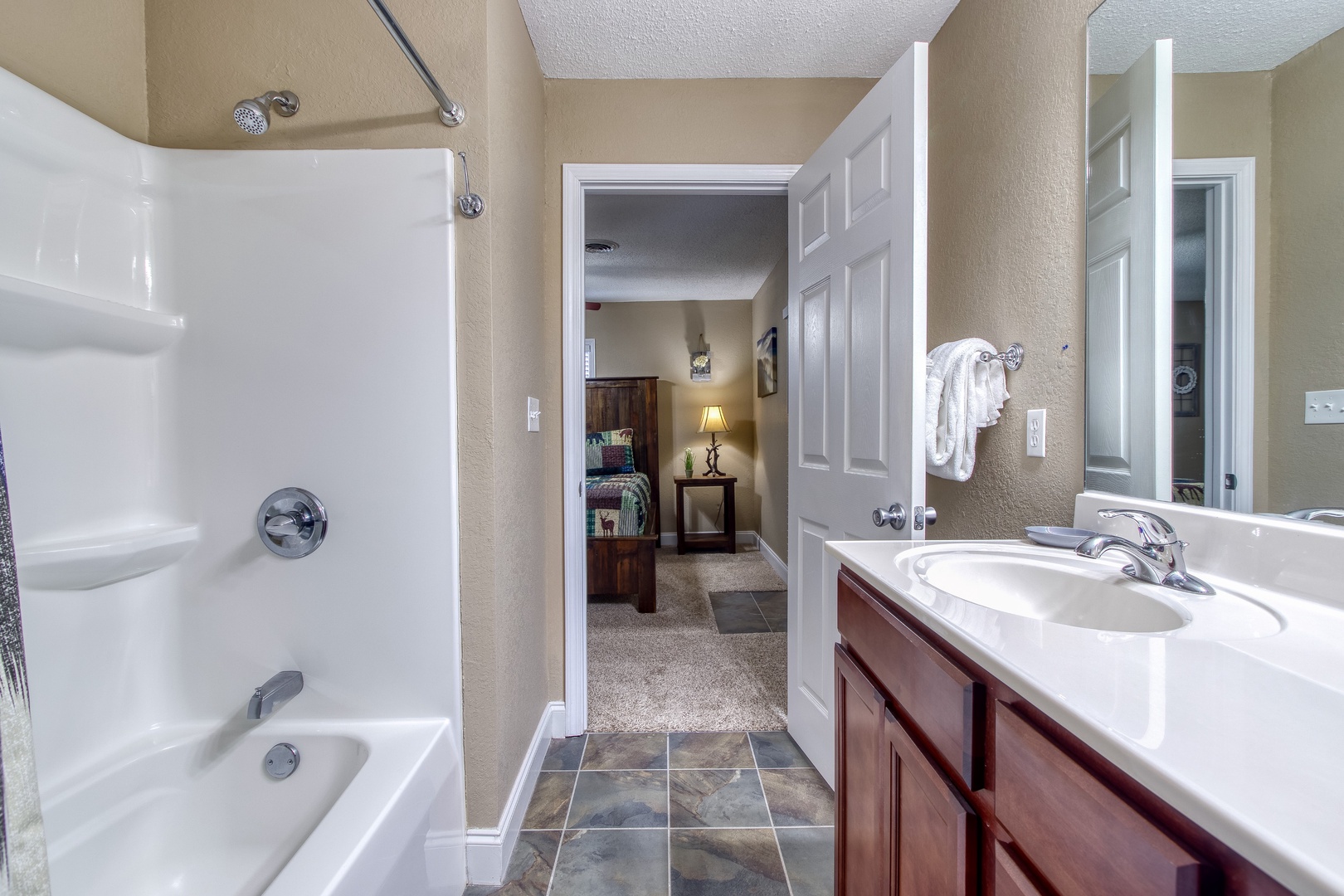 Down the hall there is 3 bedrooms, one with two sets of twin bunk beds that the kids will love, the other has a luxurious queen bed with a full bathroom in the hall for them to share. There is a King Master Suite as well that has its own private full bathroom.