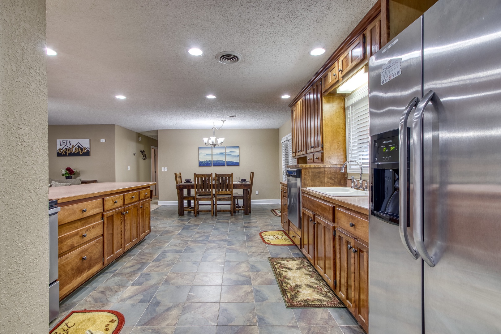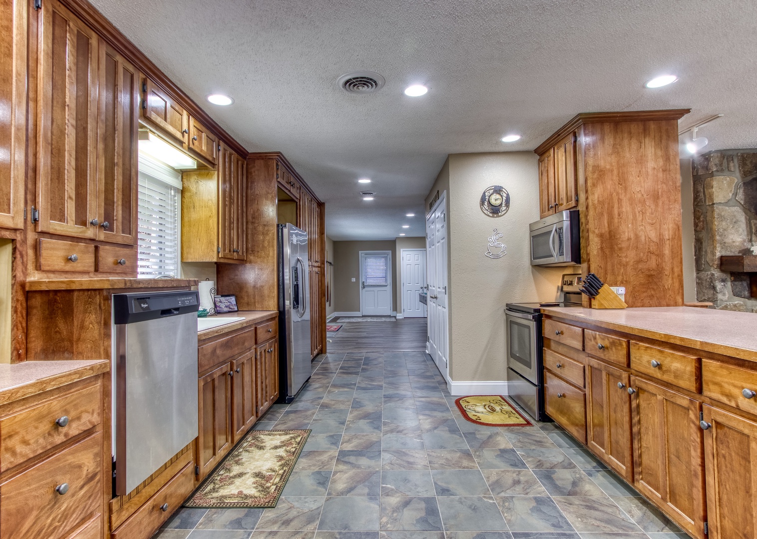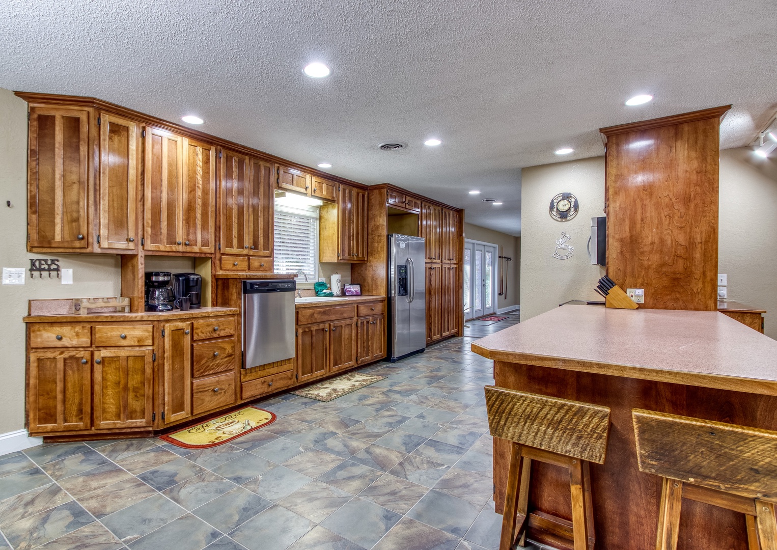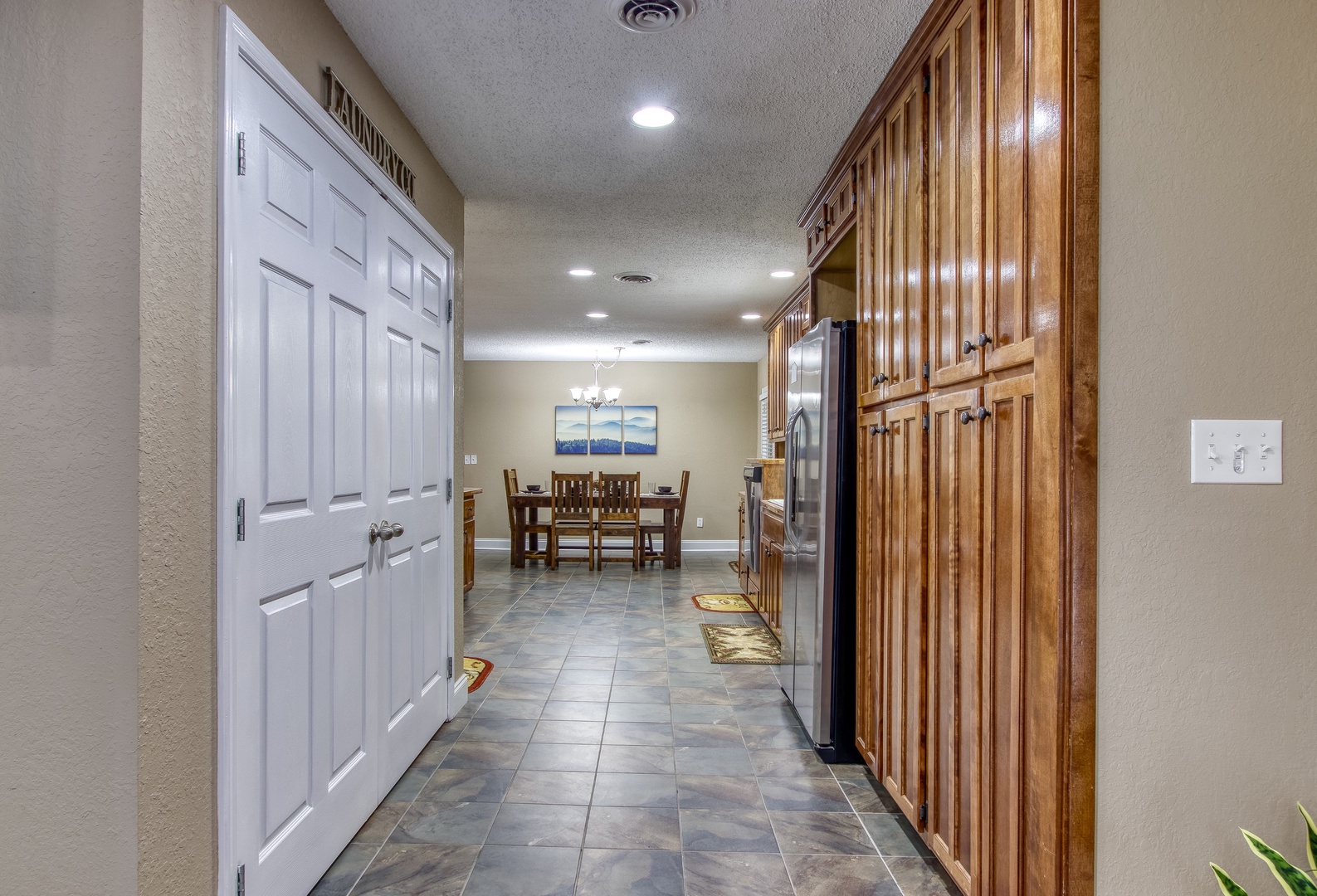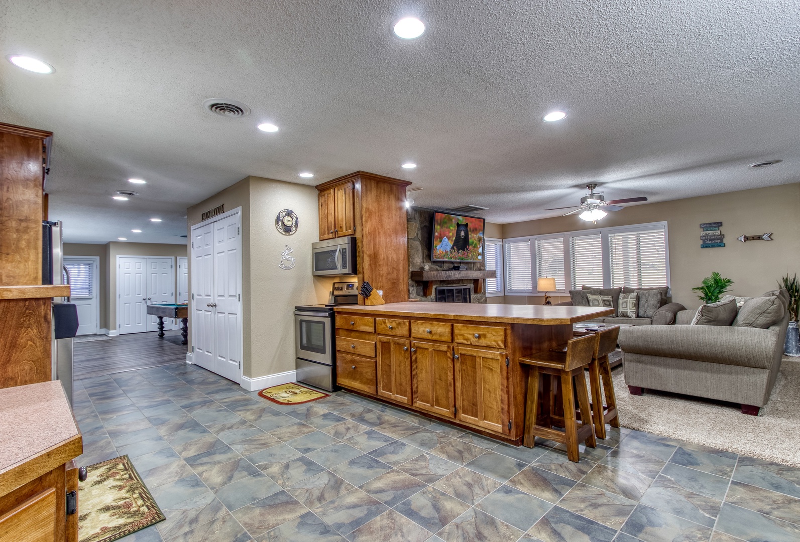 Just outside the game room is a laundry room and the kitchen. This kitchen is spectacular, boasting plenty of cabinet space and being fully equipped with all appliances. You will enjoy every minute of meal planning and cooking in this space.