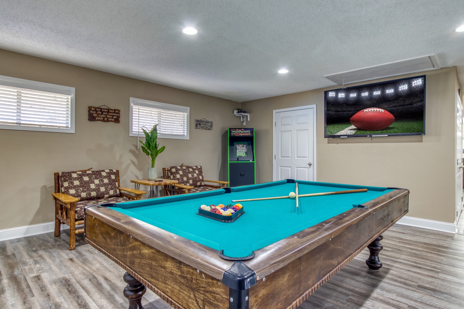 Entering Hidden Memories, you will rest you eyes on a large game room offering a pool table, arcade game and TV. Which will be wonderful to occupy the kids and adults in the family at any time.