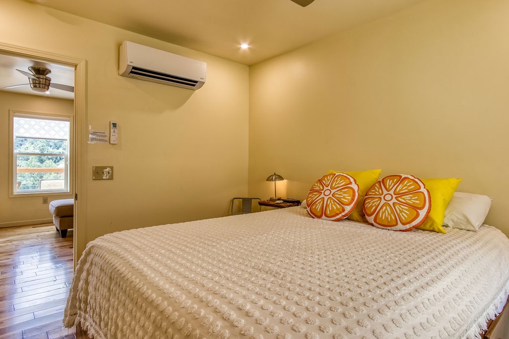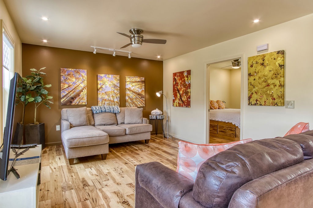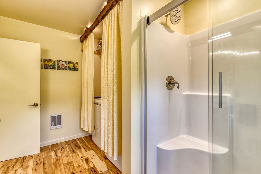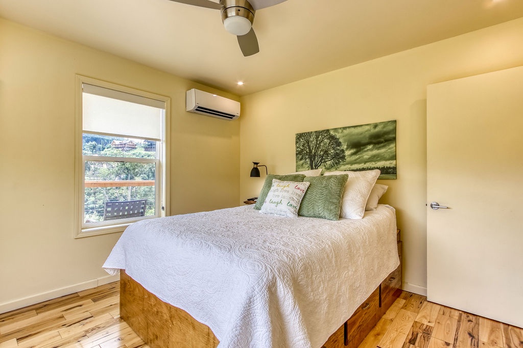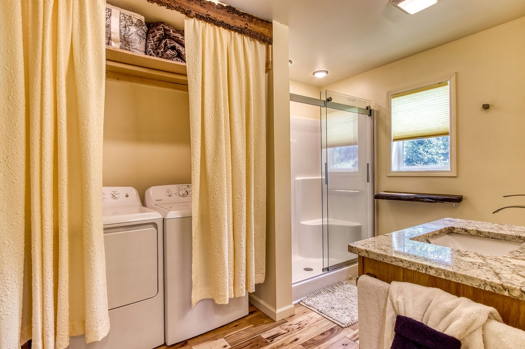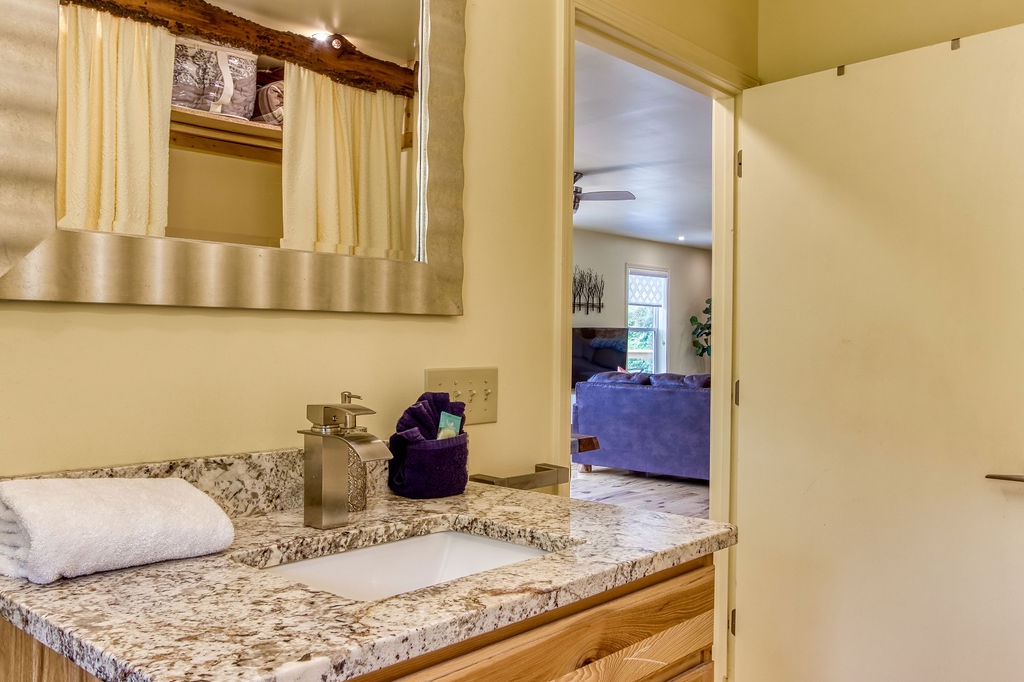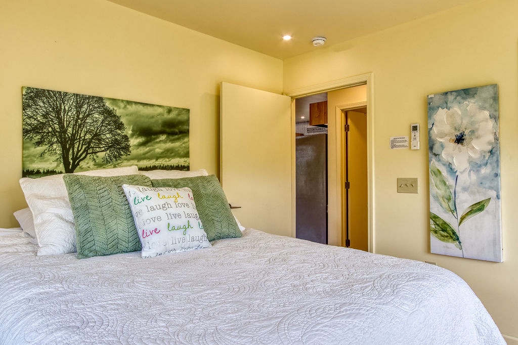 Time to turn in for the night. Choose from one of two queen bedrooms both offering a flat screen tv. Need a little extra sleeping space, the living room sofa makes a convenient pull out for the night owls of the group. The full bath is right behind the kitchen with the washer and dryer for some light laundry making it easy to add a night or two to your stay. There is also a half bath behind the living room.