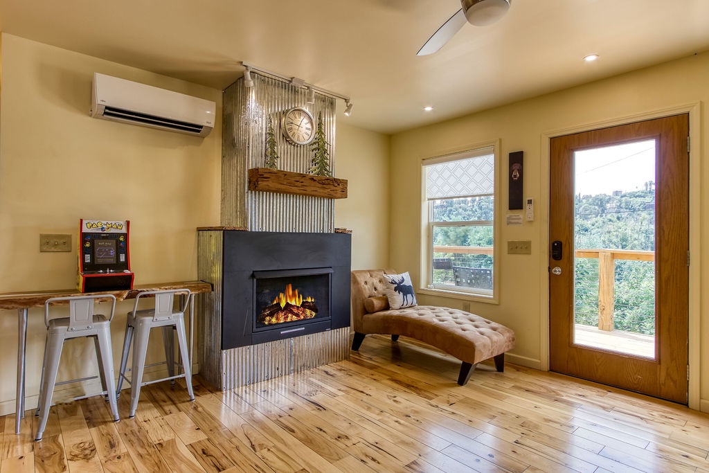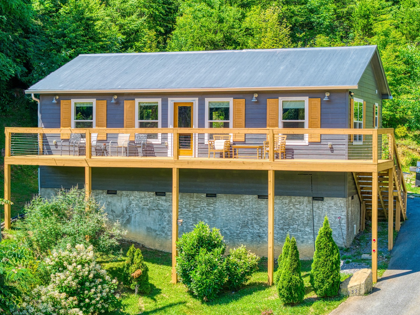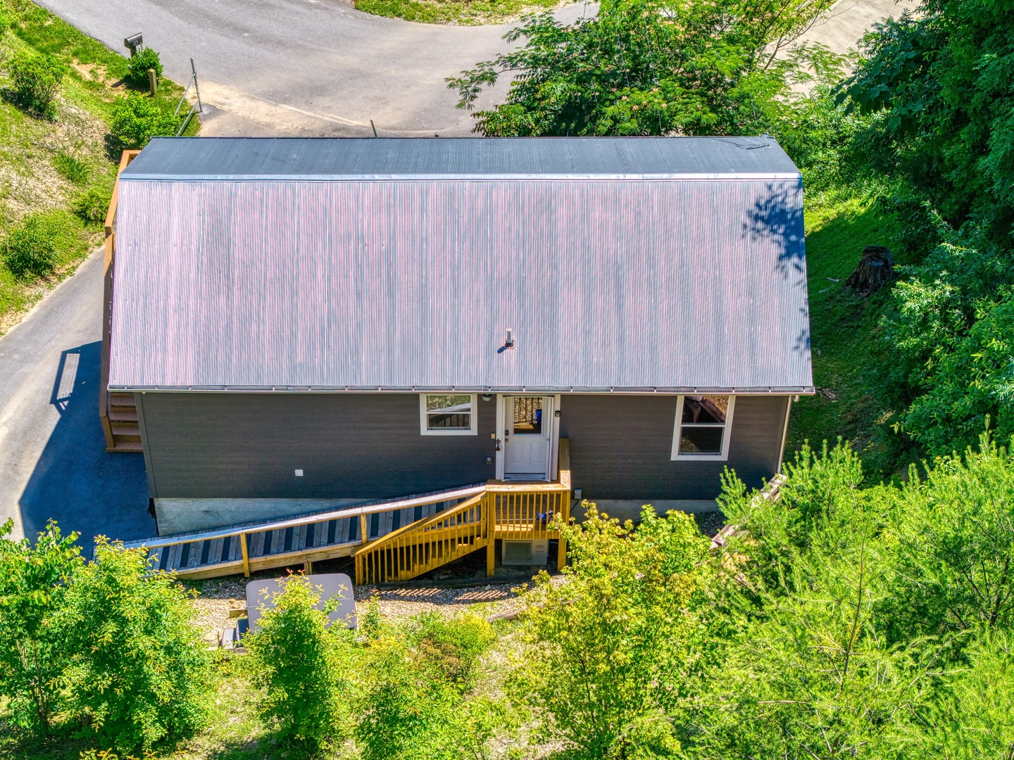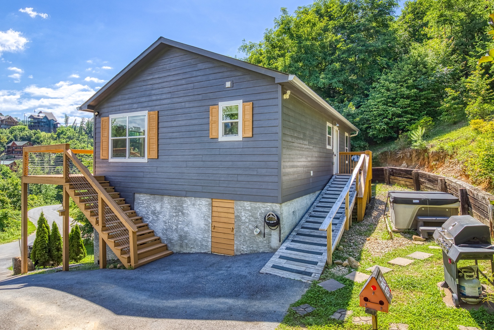 Located in the Chalet Village area, not far from the trolley stop at the Gatlinburg Welcome Center, this is the perfect spot for a weekend retreat or a small family vacation. You will have a paved drive all the way with two main entries. One is a ramp on the back of the chalet perfect for wheeling in luggage and carrying groceries and the other is just a few steps up to the main level deck with a mountain view to enjoy.