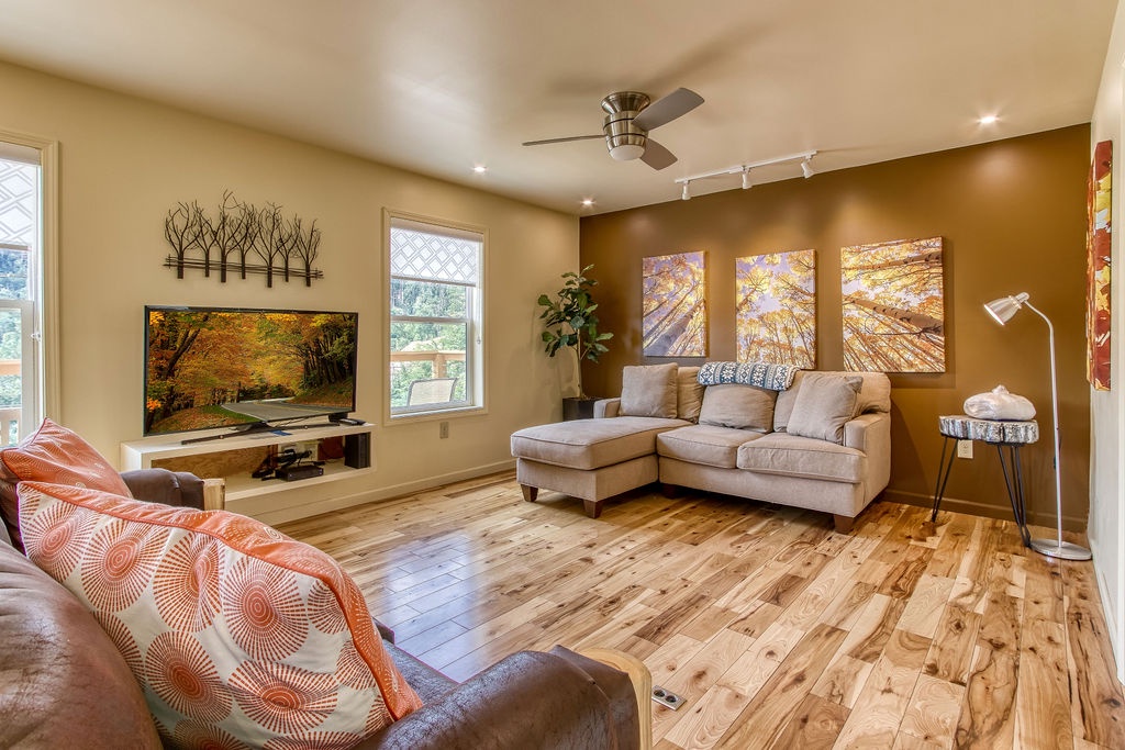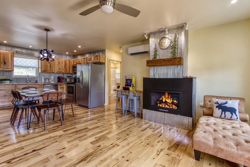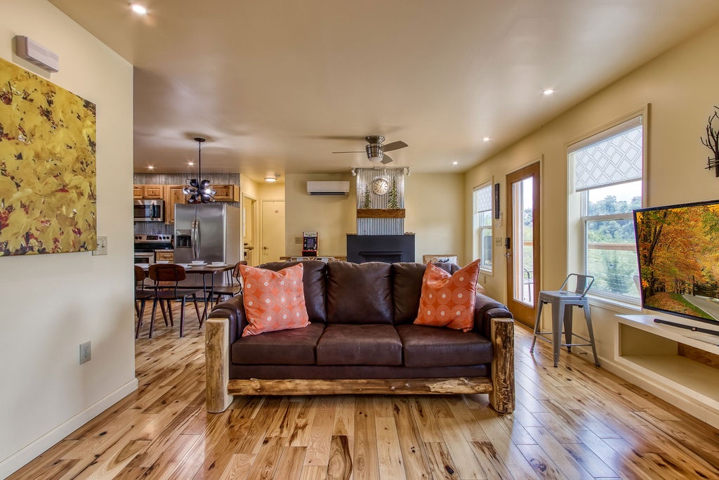 Upon entry you will be greeted with a completely open floor plan, that offers nice gathering space of the kitchen, dining area, and living room. Cozy up in front of the tv to watch your favorite show while still being able to conversate with those who are fixing dinner. If you have a book reader in the group there is the perfect spot to cozy up by the gas fireplace and finish your favorite novel. When dinners ready the centered dining area is the perfect place to enjoy laughter and memories of the day over a heartfully cooked, warm meal. Take a day and grill out with convenience of a gas grill on the front deck and enjoy that view of the Smokies.
