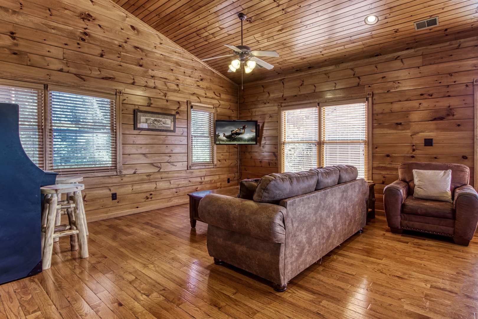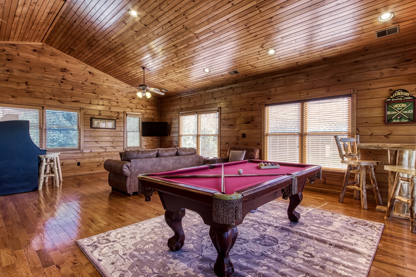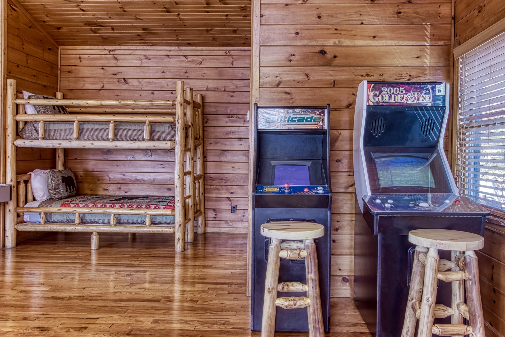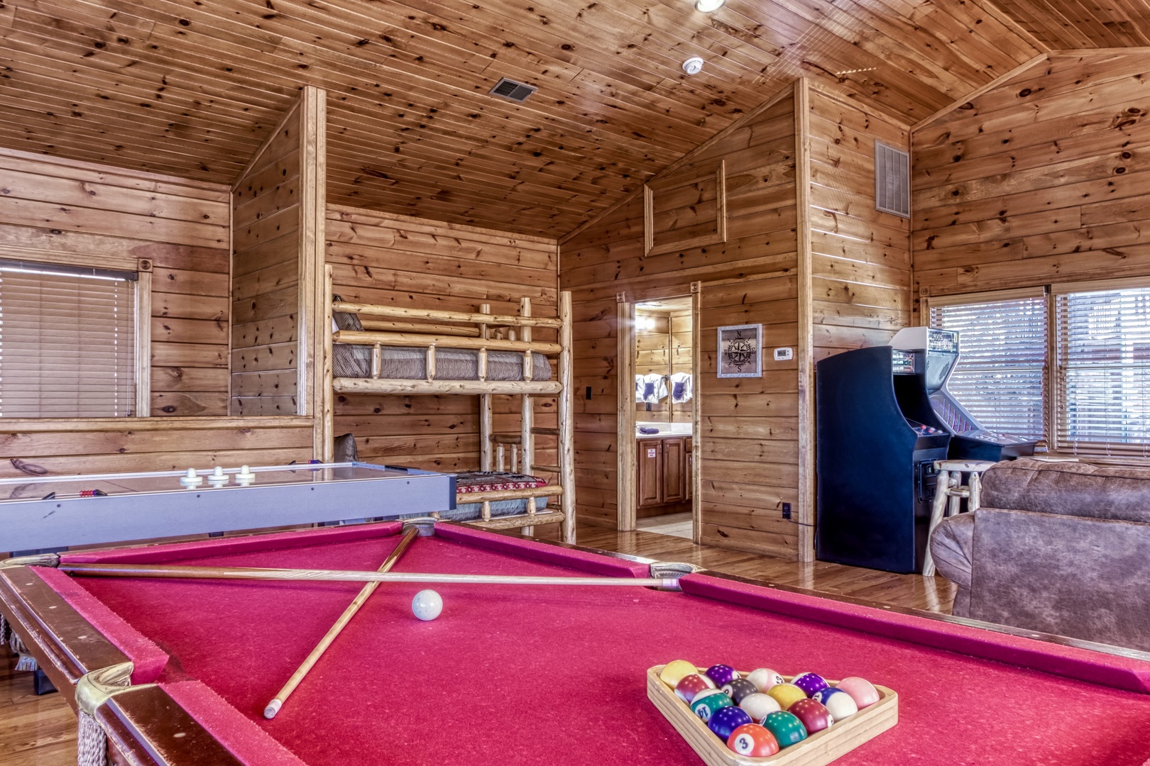 Looking for a place to stay taking a fun trip to Gatlinburg. Look no further, this cabin Is located in the Gatlinburg Falls Resort and is 10 minutes from downtown. This is a 3-bedroom 4-bathroom cabin offering everything you need. Pull up to the entry porch and walk straight inside to a lovely place to call your home away from home. You will be greeted with brand new furnishings and a fully equipped galley style kitchen which leads to the open cozy living room. The dining area is perfect for you to gather for family meals and not miss a moment of the big game on the TV. Snuggle up on the sleeper sofa and enjoy the warmth of the gas fireplace. Looking for something to do in the evenings after dinner or on down time? Just head upstairs to play a round of pool at the pool table, a game of air hockey, or choose from one of the two arcade games. Enjoy a nice night cap out on one of the 3 decks before calling it a night. All bedrooms have Brand New Mattresses! When heading to bed choose from one of the three bedrooms offered. The main level master has a luxurious King bed with a private bath offering a shower/tub combo. This is perfect for the person or couple wanting easy access to everything. Giving you a great opportunity to sneak a nighttime snack from the kitchen. The other two bedrooms are located downstairs. The two bedrooms on the lower level are both King suites with shower/tub combos. Need more sleeping for the kiddos, no problem let them choose from two sleeper sofas one in the living room and one in the game room or the twin bunk located in the upper-level game room as well. This property has all you need and more for your trip to the Smokies. Enjoy of the festivities Gatlinburg has to offer while still having a nice place to make wonderful memories with family and friends at Lazy Bear Lodge