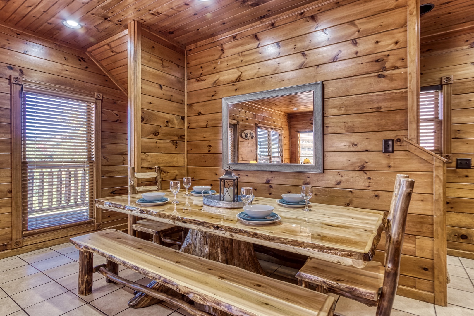 We recently had the pleasure of vacationing at this enchanting smoky mountain cabin. The view off of each level of this 3 floored cabin were absolutely spectacular! We loved the built in entertainment with the outdoor jacuzzi and the upstairs game room. It was great to be able to cook together and eat at the spacious beautiful natural wood dining table! It was one of the best trips of our lives and we can t wait to return! So grateful to have found this fabulous cabin!