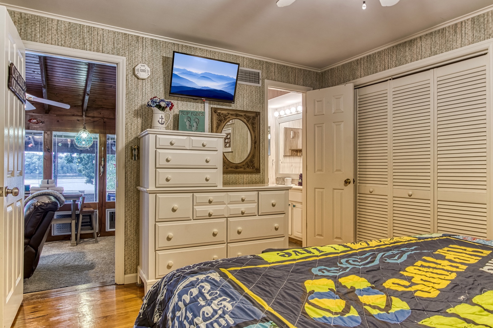 Looking for amazing views of both the mountains and the lake? Look no further than Live Luv Lake Haus. This amazing two bedroom rental sits on the banks of Douglas Lake and overlooks both the lakefront and the mountain range of the Smokies. Get lost in the majestic beauty this rental cabin has to offer by sitting on your private dock and enjoy the sunset with your loved ones or in the hot tub on the deck that also overlooks everything. If that is too much excitement then take a nap on the hammock next to the fireplace and let your stress melt away. And this is all just the outside. Inside you will find two full baths and a half bath along with a fully equipped kitchen, the king master, and even an outdoor cooking area. Right off the outdoor cooking area with private entry from the outdoor deck only is the second King bedroom, giving everyone there own space at the end of the day. Use the WIFI and load your favorite movie or show before turning in. This little peaceful getaway is the perfect way to have fun by the water and enjoy outings in The Great Smoky Mountains being located just off the main highway that takes you to all the attractions. Enjoy the day at Dollywood or have dinner at Dolly's Stampede. You are also close to attractions such as Wonderworks and Beyond the Lens. So what are you waiting for, book this amazing lake house today and enjoy the vacation of a lifetime!