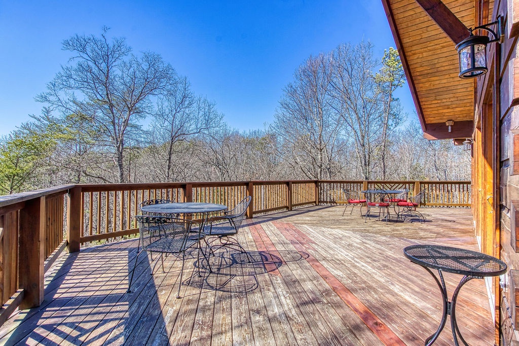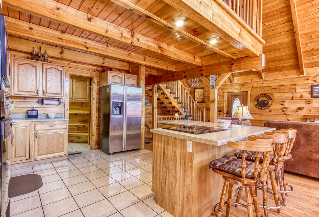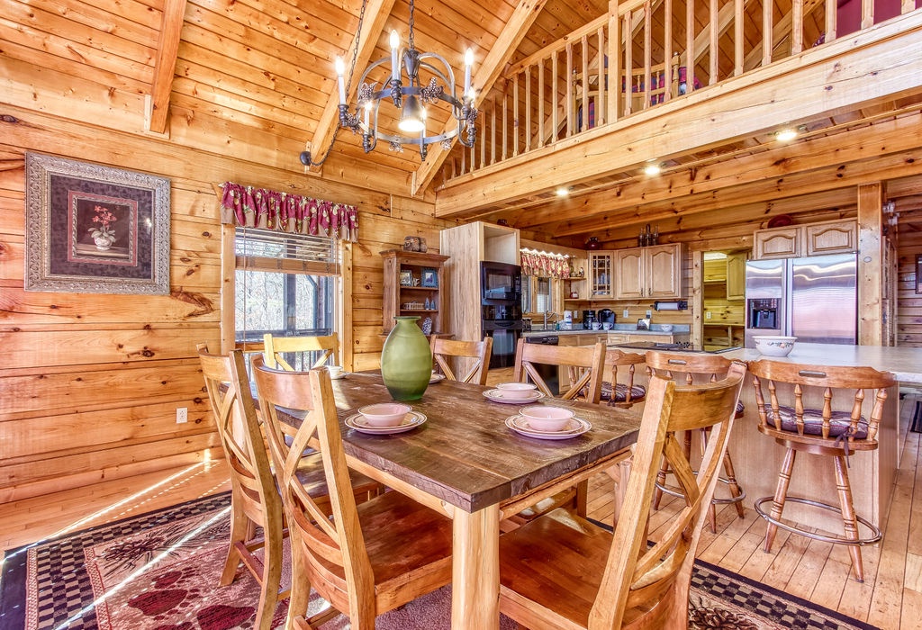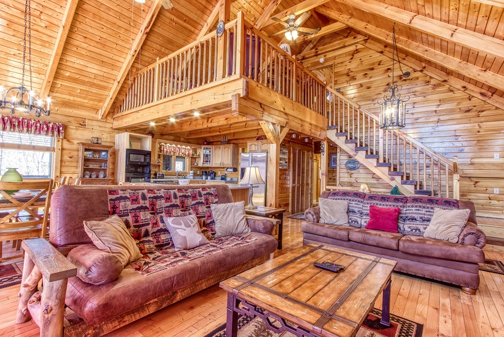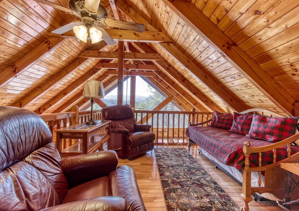 Your family will fall in love with this spacious cabin near Pigeon Forge. "Livin' Lodge" features all the amenities a large group could ask for, including space to sleep up to 16 and plenty of room indoors and out. You have an easy drive with a huge gravel parking area great for someone with bigger vehicles. Be amazed at all the open outdoor space with the sitting area, fire pit, and park grill all to the right of the driveway. Once inside you will be taken away by the openness of the main level with tall windows letting the sunlight in to wash over you. The living area features lots of space to relax and unwind. Curl up by the electric fireplace with a good book or watch your favorite show on the flat screen tv. On the left side of the spacious main floor, you'll find a spacious, fully equipped kitchen that has everything you need for family dinners. With a breakfast bar and stools a few feet away. You'll never run out of space for everyone to gather. On the same level, you will have a King bedroom, with a dresser, a TV, and a full bath. Finish out your day by soaking in the bubbly hot tub that is in a covered room on this level right outside the kitchen. Your cabin also includes WIFI and a washer and dryer for your convenience. The upper-level loft boasts additional sleeping accommodations and seating space, having 2 recliners and a daybed where you can sit with friends. When it's time to turn in, relax on the daybed and pull out the trundle, so everyone has a place to sleep in total comfort. The loft also features a King Suite with a Jacuzzi tub perfect for relaxing before bed. The lower level of your rental features a game room with a TV, pool table, and air hockey. Nearby you'll find a bedroom complete with a king bed, a dresser, a TV, and a full bath. For visitors with large groups or families, the lower level also offers extra sleeping space with an additional futon and two sets of twin bunk beds. This area will be perfect for kids and adults just looking to chill or hang out inside on a rainy day. All in all, there will be nothing, but wonderful memories made, and time spent at this property. If you are looking to book a family vacation or weekend retreat, “Livin’ Lodge” is the perfect cabin for your family. All in all, there will be nothing, but wonderful memories made, and time spent at this property. If you are looking to book a family vacation or weekend retreat, “Livin’ Lodge” is the perfect cabin for your family.