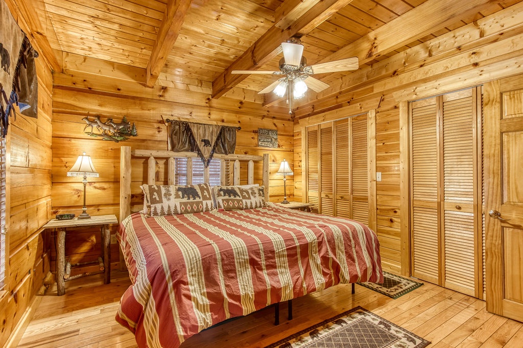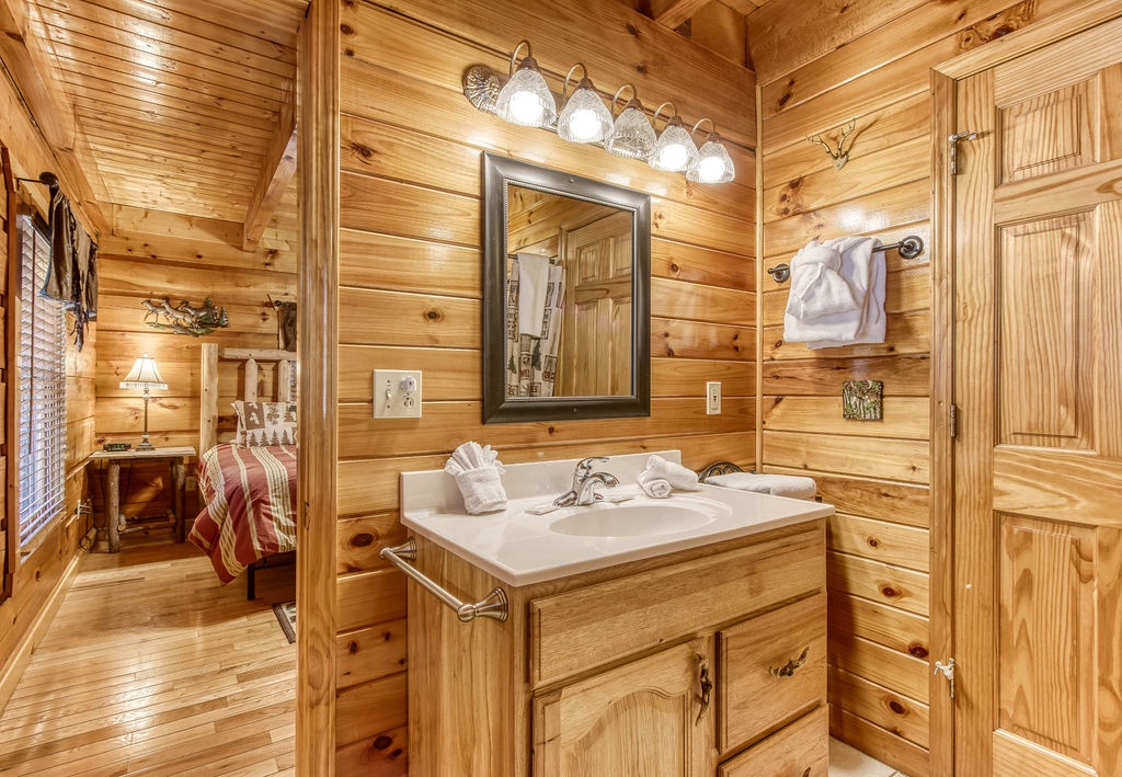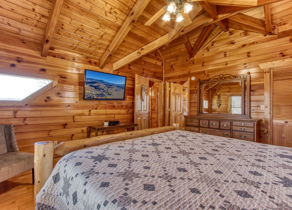 The pictures do no do this cabin justice. It is beautiful and VERY spacious. It has huge amounts of closet space, for all of our things, so we didn't have to trip over them all week. The HUGE walk-in pantry made all the difference, so food didn't have to be stored on countertops. Bedrooms and bathrooms were big and spacious. Also, this is the 1st company we have rented from that did NOT skimp necessities. We had a good supply of patio furniture, kitchen utensils, bath towels, bed sheets, toilet paper, paper towels, dishwasher soap, trash bags ect. The cabin is beautiful and the rental company is accommodating. The location was close enough to both Gatlinburg and Pigeonforge (both about 15 minutes away). Thanks for a great week!