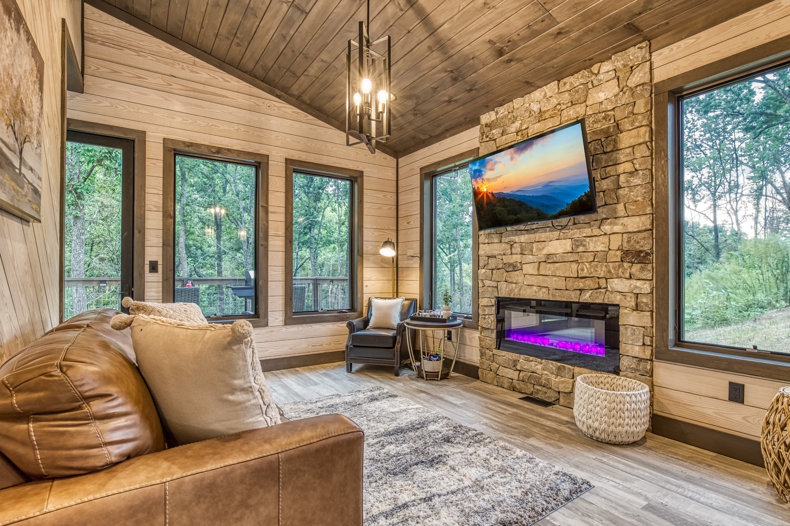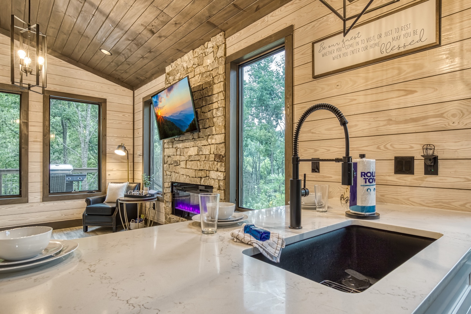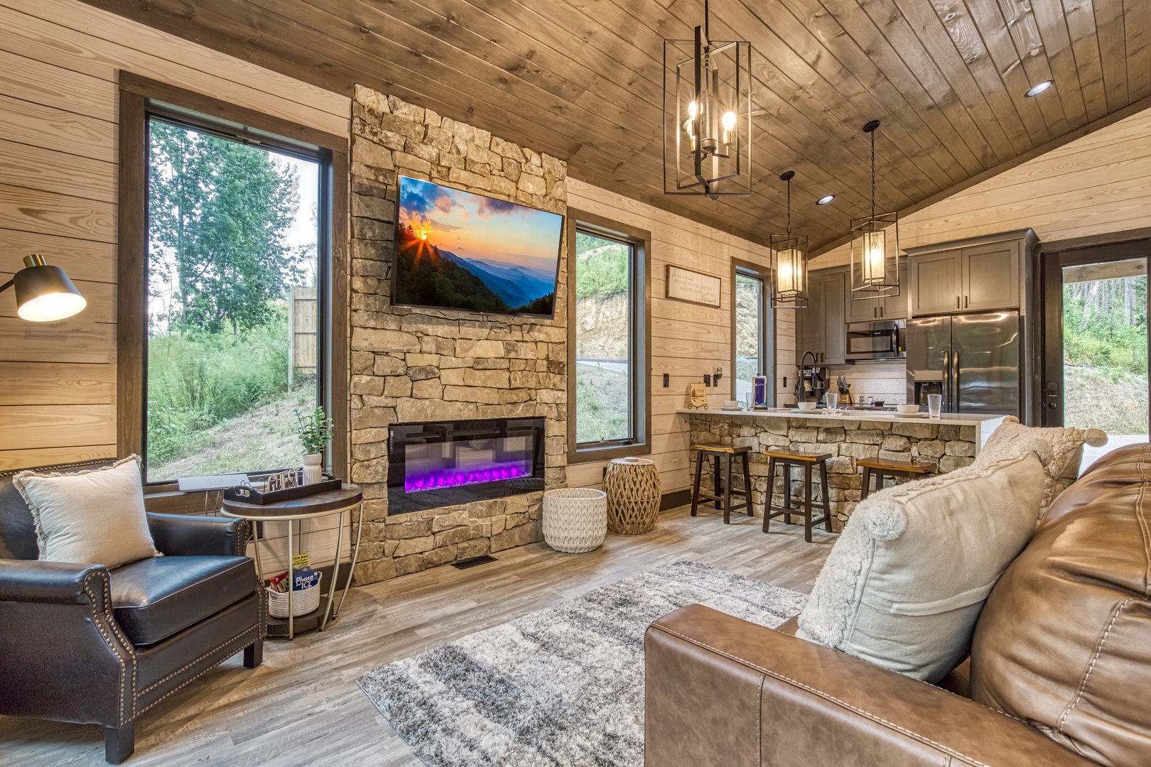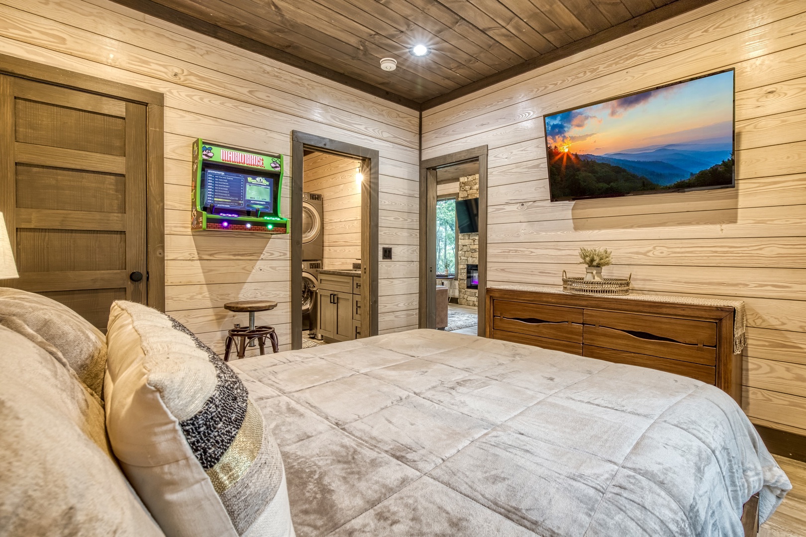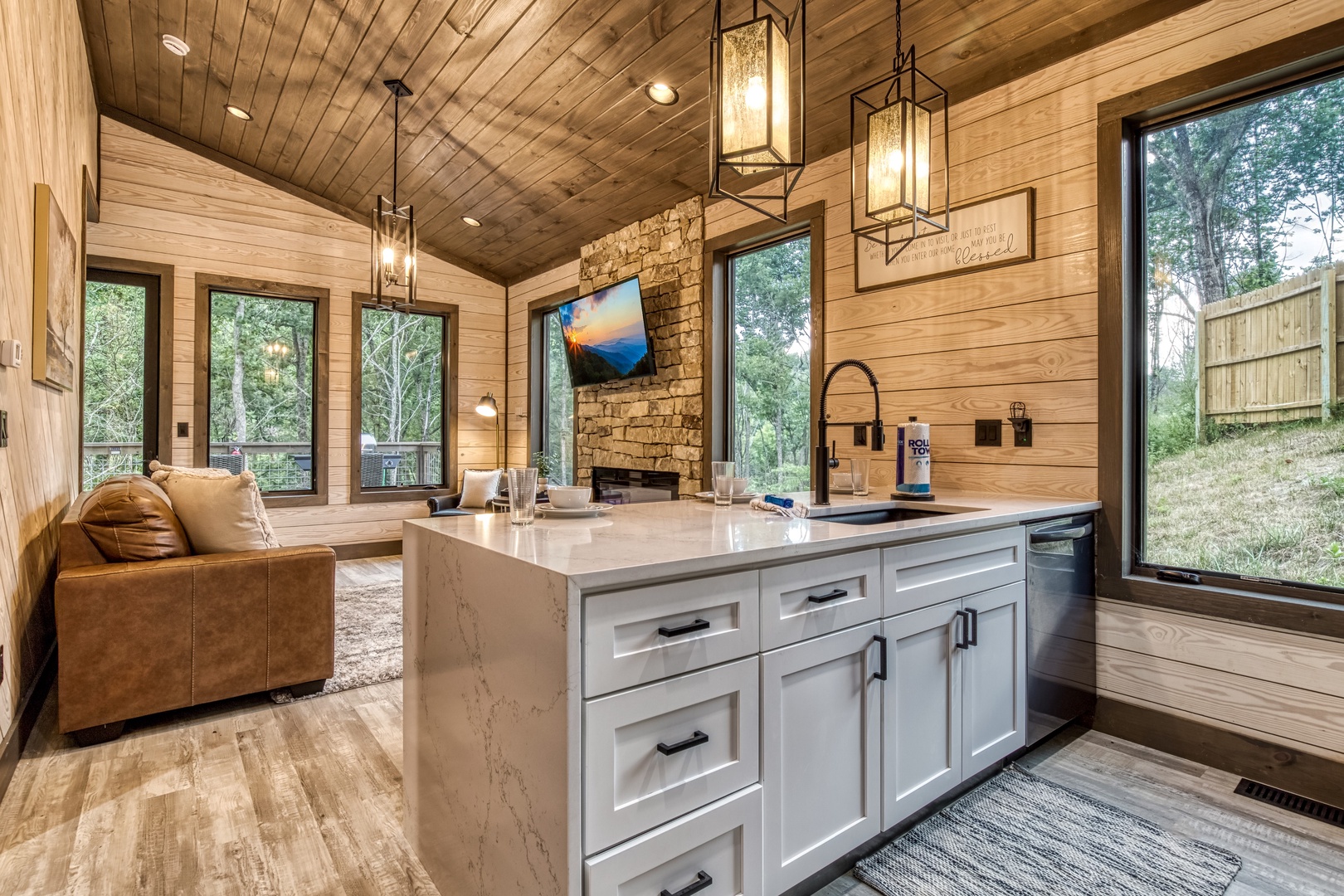 Nestled near a stunning 75-foot cascading waterfall on the quieter side of the Smoky Mountains, this newly built 2-bedroom, 2-bath home offers a harmonious blend of modern luxury and natural splendor. Both spacious bedrooms come with private ensuites, ensuring comfort and privacy for every guest. Expansive windows throughout the home provide breathtaking views of the mountains, enhancing the serene atmosphere. Designed for both relaxation and entertainment, the home features high-end finishes and an abundance of natural light in the kitchen and living areas. Whether you’re sipping your morning coffee on the deck, soaking in the hot tub, or relaxing by the firepit, this home offers a tranquil retreat amidst the beauty of the Smokies. After experiencing Lullaby Falls, you'll never want to stay anywhere else.