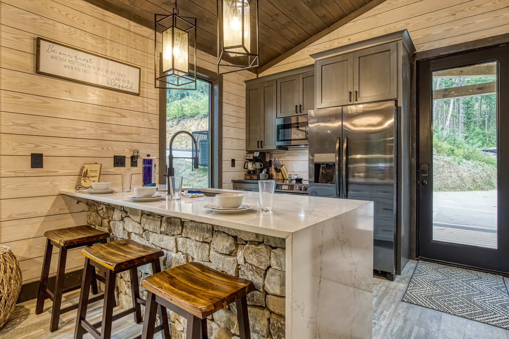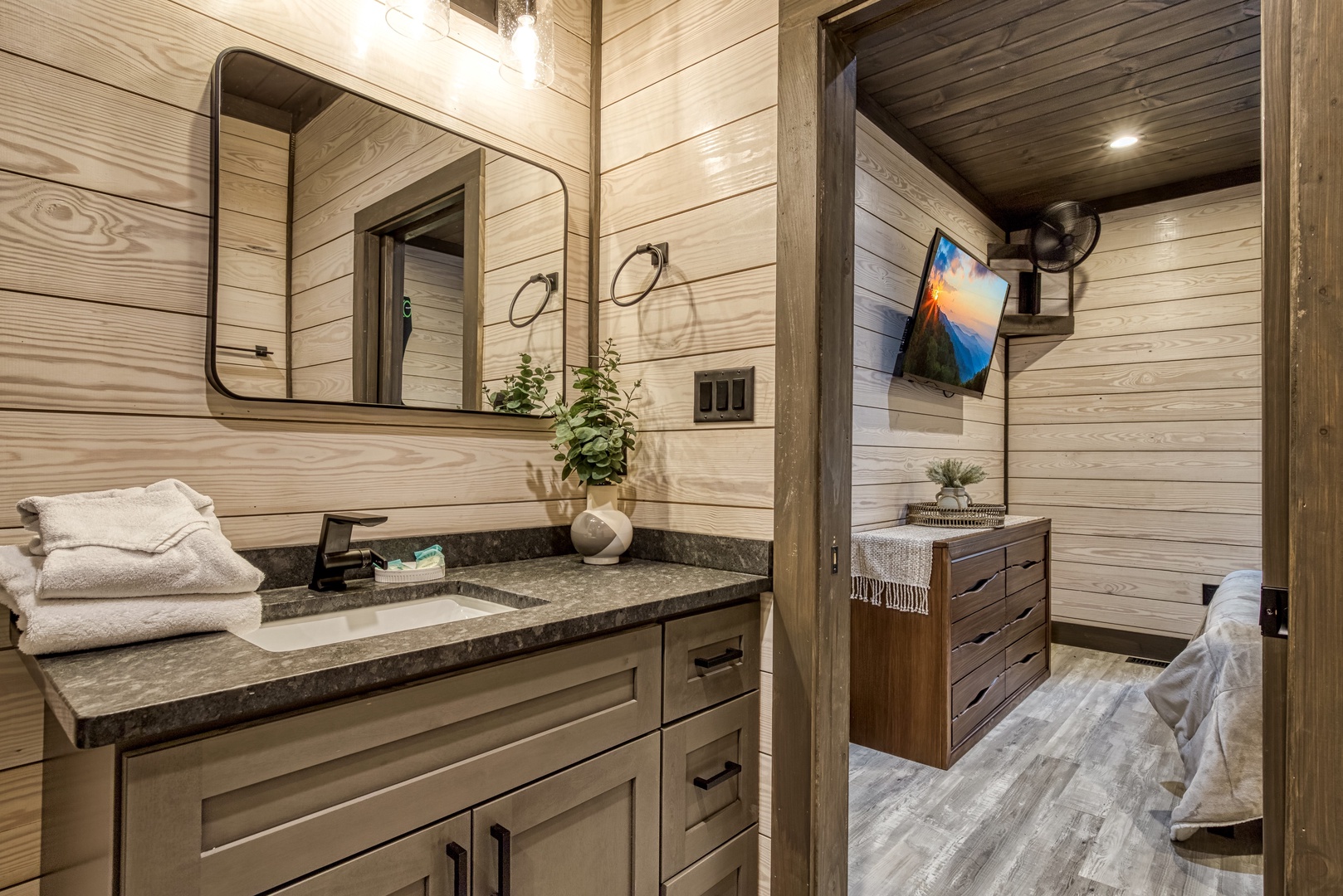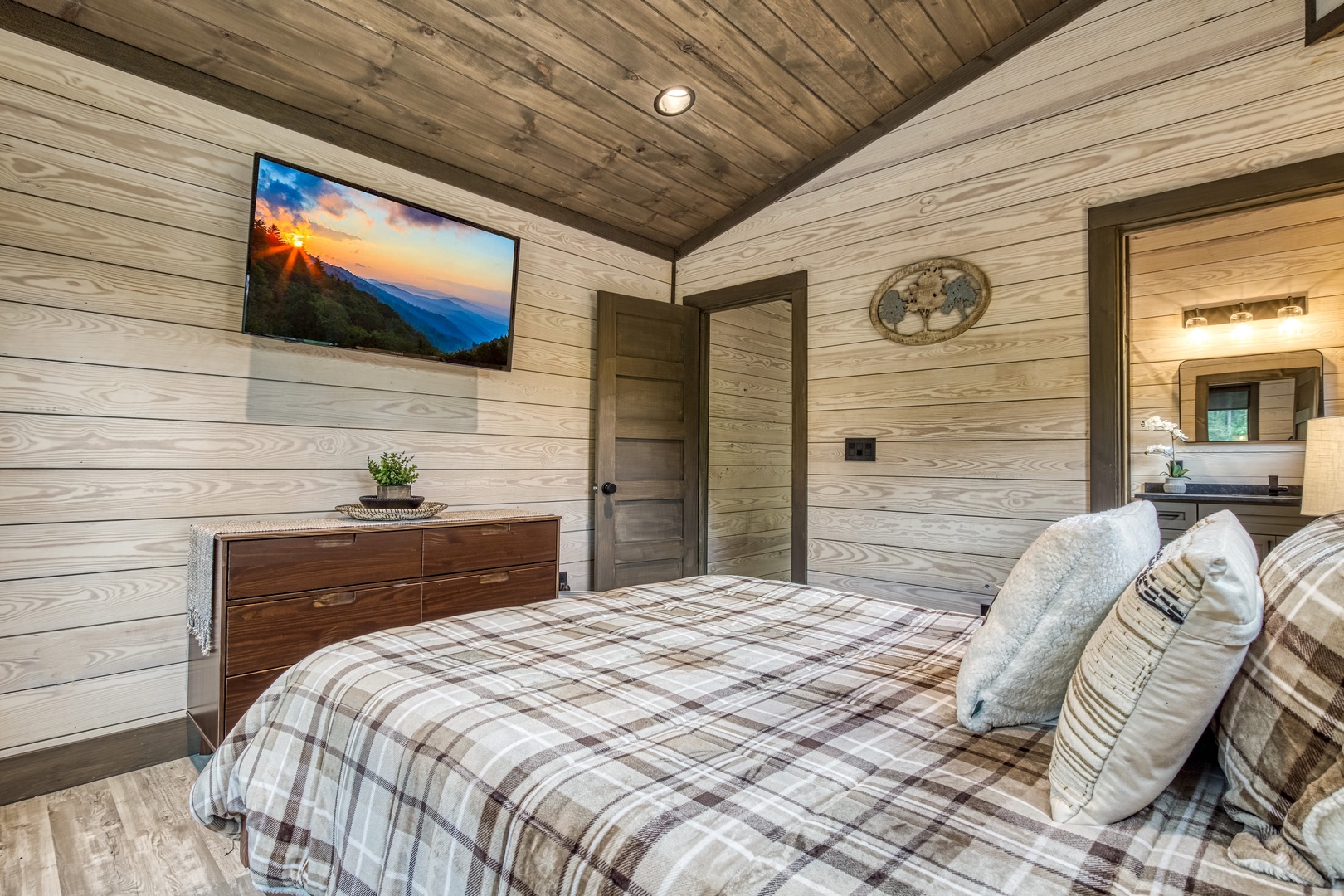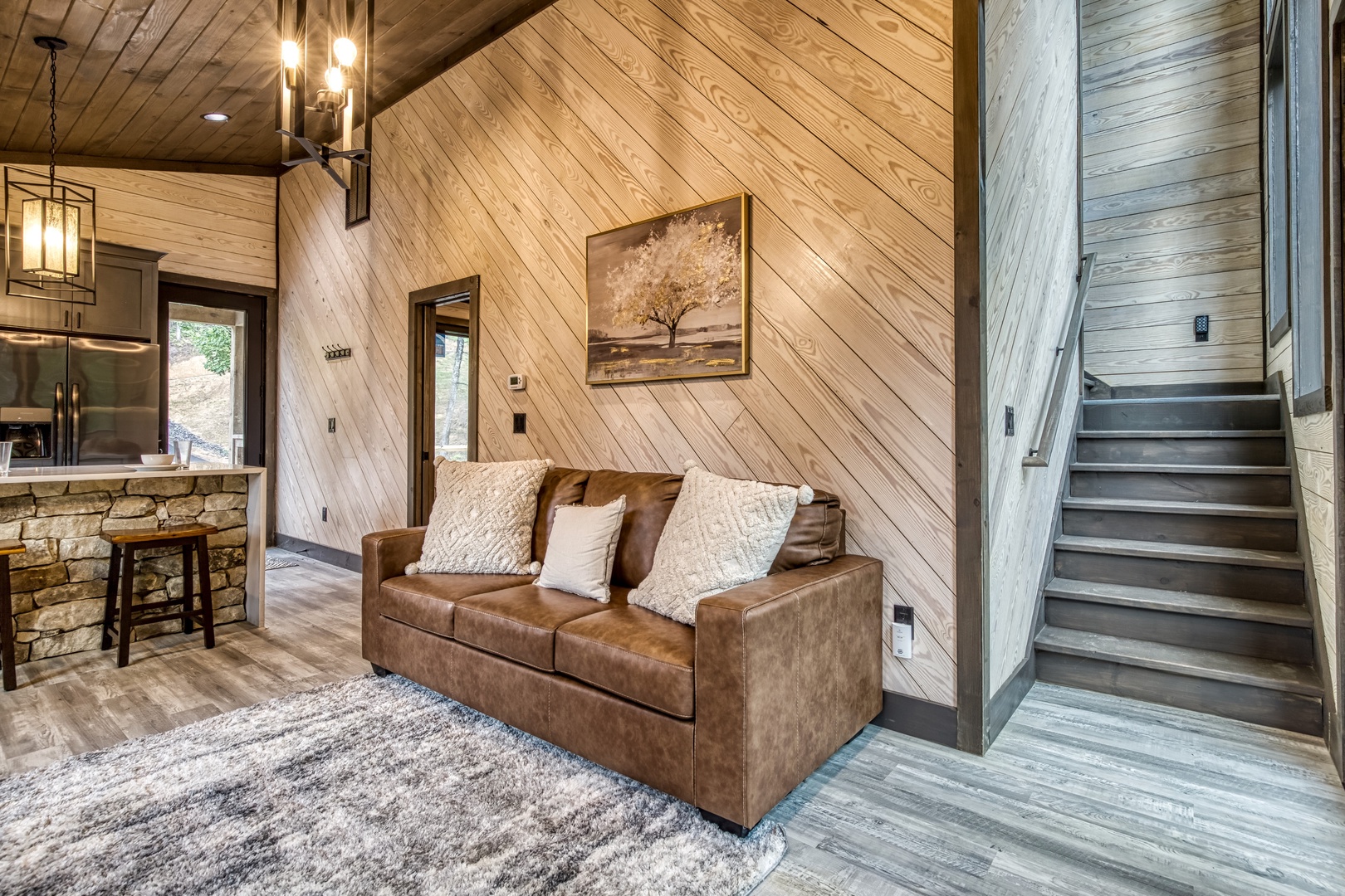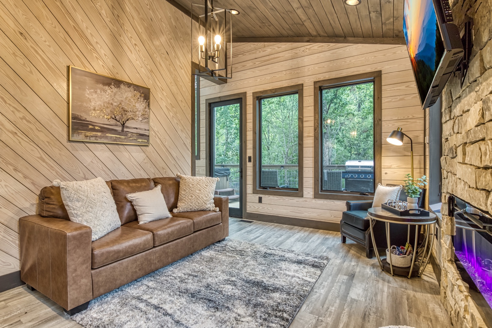 Nestled near a stunning 75-foot cascading waterfall on the quieter side of the Smoky Mountains, this newly built 2-bedroom, 2-bath home offers a harmonious blend of modern luxury and natural splendor. Both spacious bedrooms come with private ensuites, ensuring comfort and privacy for every guest. Expansive windows throughout the home provide breathtaking views of the mountains, enhancing the serene atmosphere. Designed for both relaxation and entertainment, the home features high-end finishes and an abundance of natural light in the kitchen and living areas. Whether you’re sipping your morning coffee on the deck, soaking in the hot tub, or relaxing by the firepit, this home offers a tranquil retreat amidst the beauty of the Smokies. After experiencing Lullaby Falls, you'll never want to stay anywhere else.