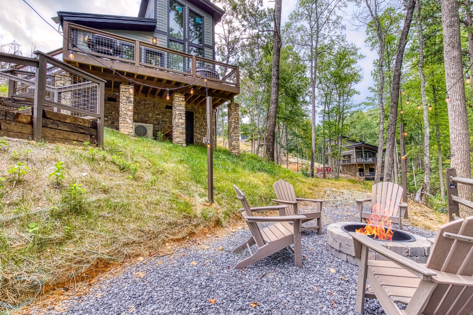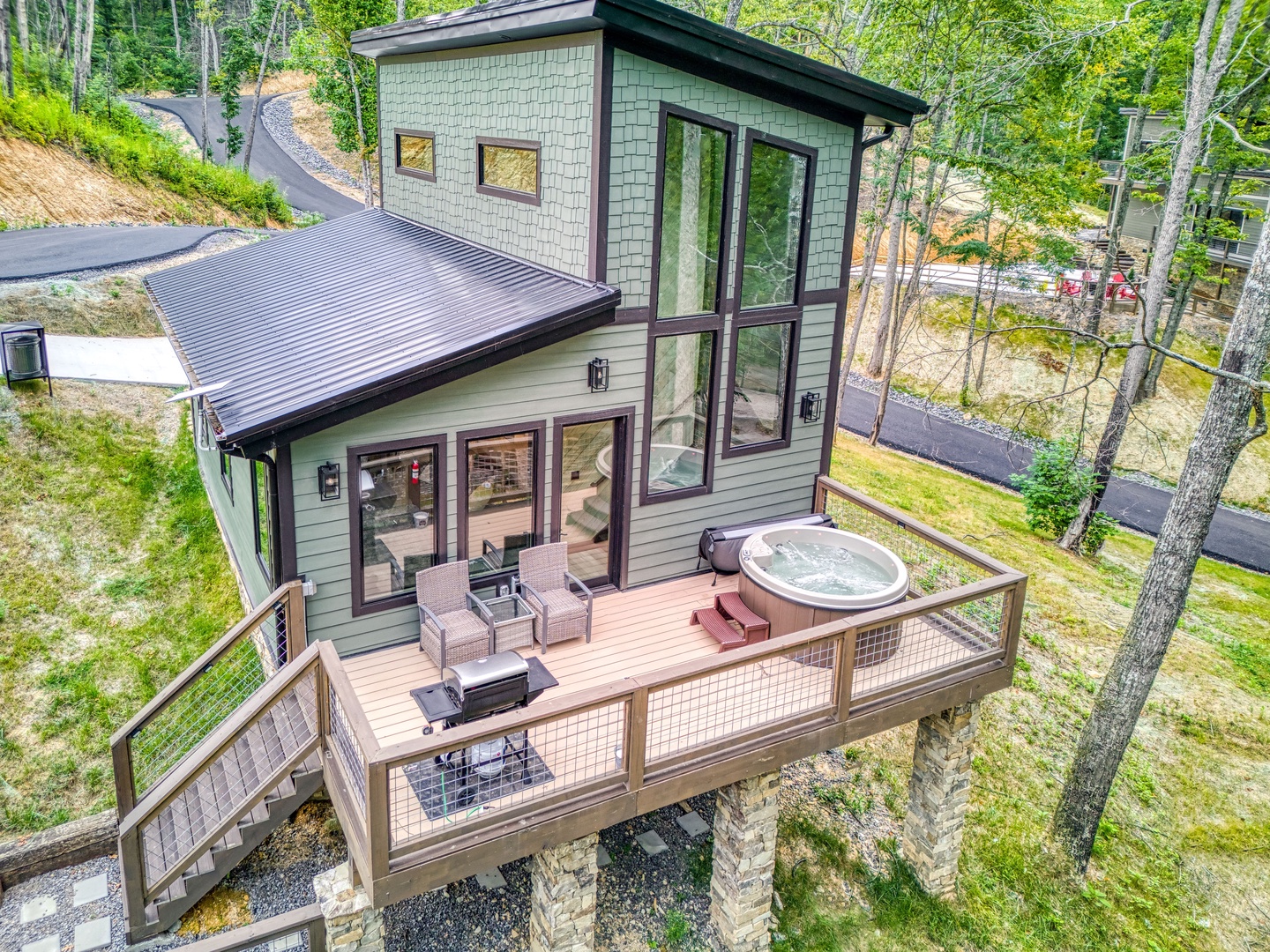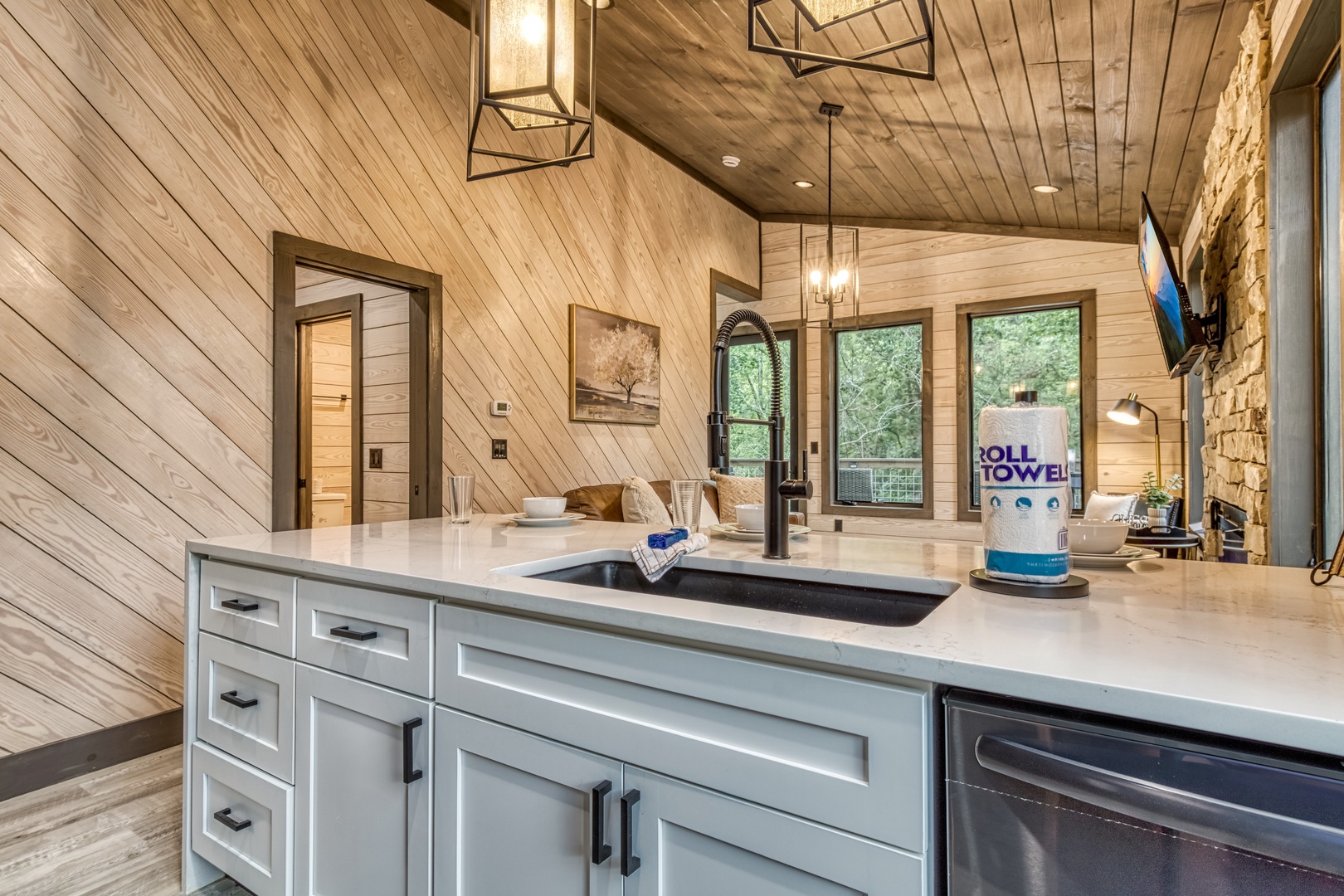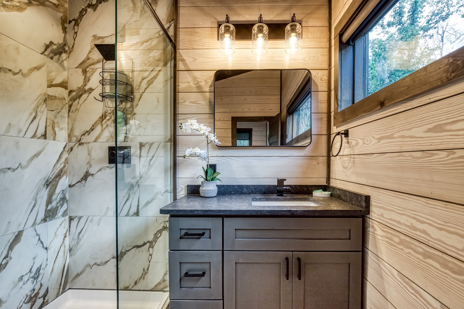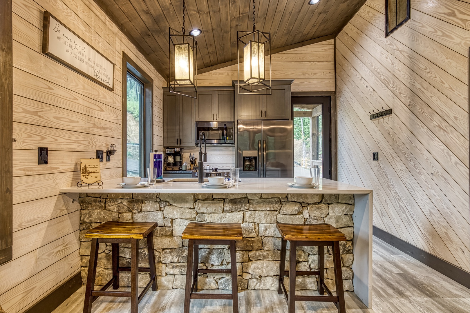Nestled near a stunning 75-foot cascading waterfall on the quieter side of the Smoky Mountains, this newly built 2-bedroom, 2-bath home offers a harmonious blend of modern luxury and natural splendor. Both spacious bedrooms come with private ensuites, ensuring comfort and privacy for every guest. Expansive windows throughout the home provide breathtaking views of the mountains, enhancing the serene atmosphere. Designed for both relaxation and entertainment, the home features high-end finishes and an abundance of natural light in the kitchen and living areas. Whether you’re sipping your morning coffee on the deck, soaking in the hot tub, or relaxing by the firepit, this home offers a tranquil retreat amidst the beauty of the Smokies. After experiencing Lullaby Falls, you'll never want to stay anywhere else.