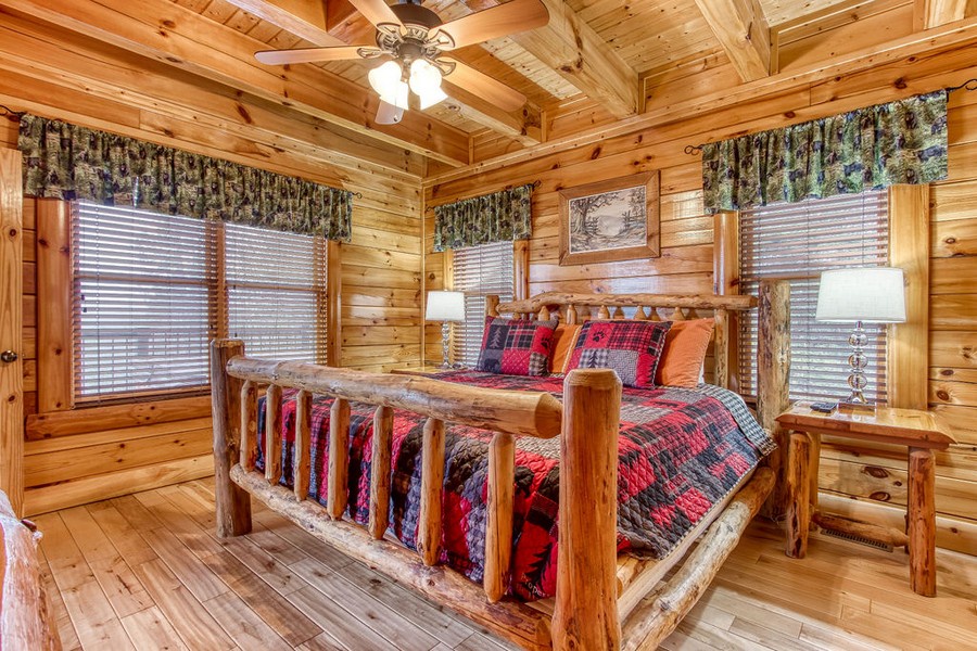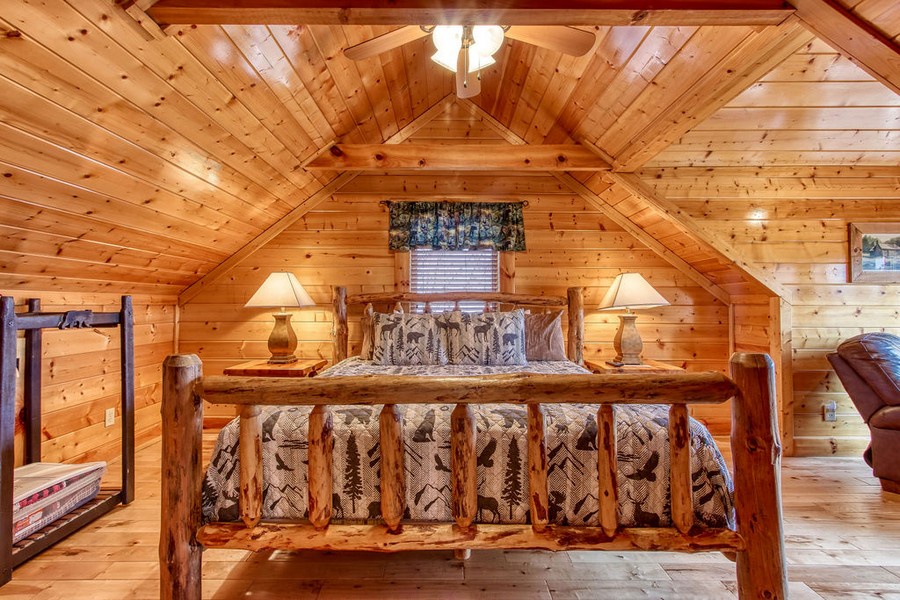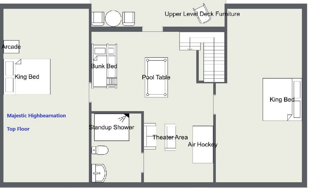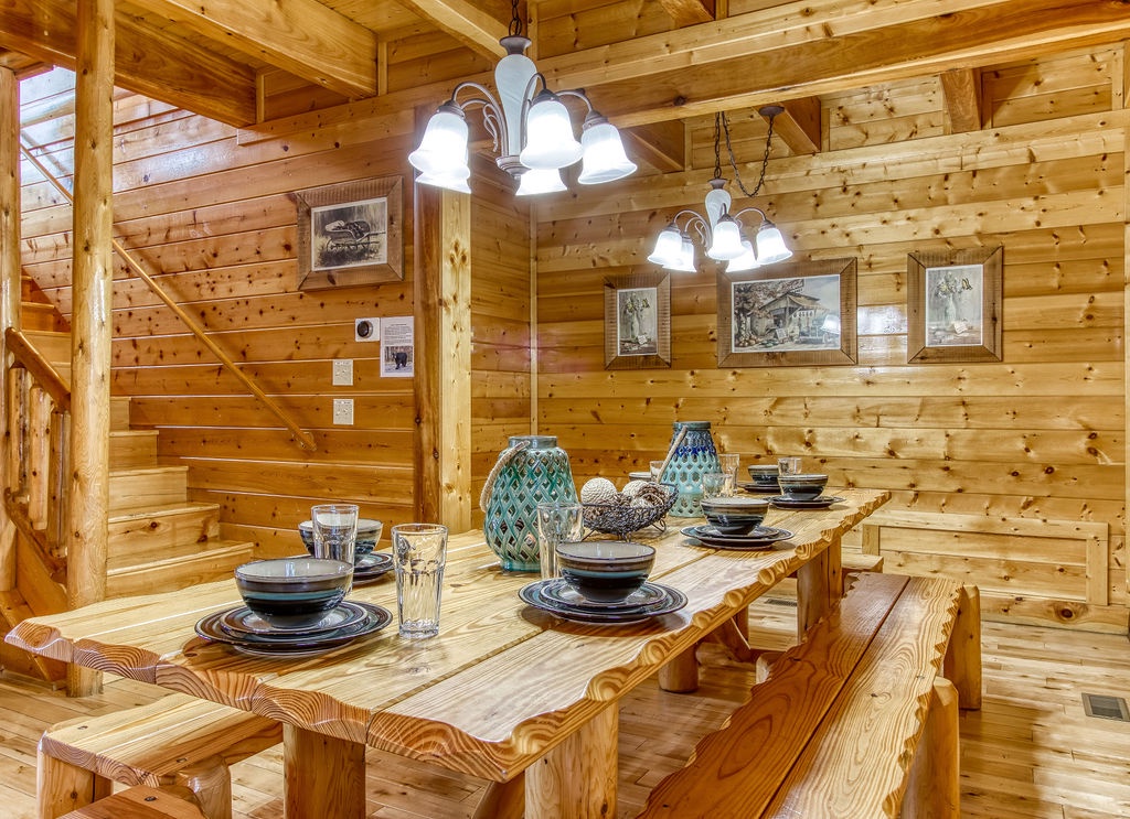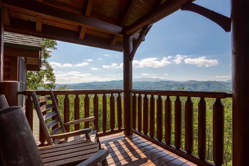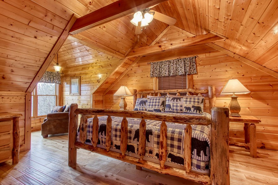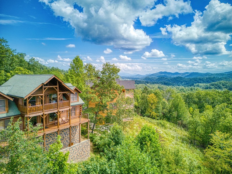 "Majestic Highbearnation" is an all-natural wood, modern rustic log cabin, that provides comfort and luxury. With its open floor plan, modern furniture, and large windows bringing the outdoors in, this cabin embraces nature and provides absolutely, stunning views of the Great Smoky Mountains. "Majestic Highbearnation" comfortably sleeps 12 people in this 2-story cabin. This 2800 square foot home features 4-bedrooms and 3-bathrooms, with spacious parking up to 6 vehicles comfortably. The main floors open concept comes with a fully equipped grand kitchen, as well as a standalone island. The island is a great place to set up for a buffet-style meal, either prepared indoors or outside on the charcoal BBQ grill, used as extra seating with 4 high top log stools, a place to enjoy electronic devices, or to simply relax. The dining area includes an extended log-style table, that easily seats 10-12 people. Alongside the kitchen is the main living area, with a large screen television, new sofa sleeper, and a love seat. A great space to embrace a good conversation while enjoying the ambiance of the electric fireplace or look over the night sky. Before heading upstairs, be sure to check out the 2-bedrooms suites on the main level. The bedroom suites provide pure luxury, each bedroom offers a King-size bed and a private bathroom. The bathrooms highlight an independent tub/shower. When retreating to one of the bedroom suite bathrooms, enjoy a soak in a large jetted Jacuzzi tub or enjoy a jetted body shower with rain shower head, and brand-new glass shower doors. Venture upstairs to discover an ultimate game room, featuring a home theater, twin bunk beds, 2-bedrooms with King-size beds, and 1-bathroom. The game room offers a pool table, air hockey, arcade system, board games, and books. Enjoy the newly felted pool table or the tiered theater seating for 8. Nestle up with a blanket and enjoy a movie on the large screen TV, curl up on a bunk bed, or relax in one of the sitting chairs to read or enjoy the view of the amazing sunrises, sunsets, or morning mist rising in the valley giving credence to the name "Smoky Mountains". "Majestic Highbearnation" has decks on the mountainside of the property on both stories, open to the majestic view. Enjoy relaxing in one of the many deck rocking chairs, with a beverage and blanket, and watch the wildlife in the forest below. If you listen closely you can hear the nearby stream. Take time to relax and enjoy the spectacular view right from the comfort of the hot tub on the main level deck. Attractions are just underfoot, just under 10 miles away, on easy to drive-freshly paved roads to Pigeon Forge. There are many activities to enjoy in the Pigeon Forge area to include; Dollywood, Dinner Shows, Mini-Golf, Go-Carts, Restaurants, and so much more. If you are looking to experience nature or want to hike, visit Ripley's Aquarium, then travel down to Gatlinburg and enjoy the Great Smoky Mountains National Park. This cabin also offers free pool access with a catch and release pond at Honeysuckle Meadows Deli and Pool for those days you just want to relax and let the kids play in the water or go fishing in the catch and release pond. If you are wanting a relaxing vacation in luxury, then "Majestic Highbearnation" is the perfect cabin for your next mountain vacation. W