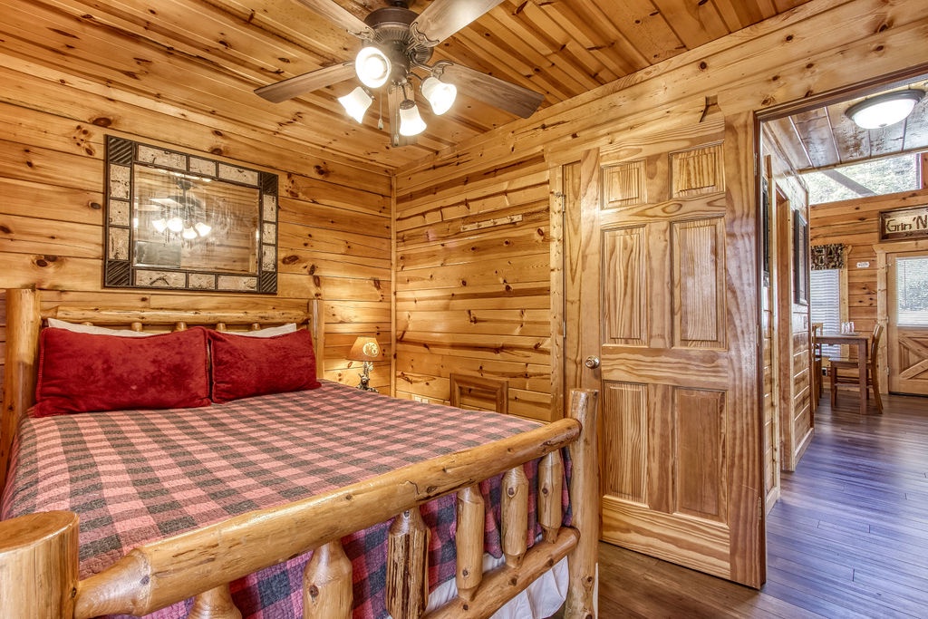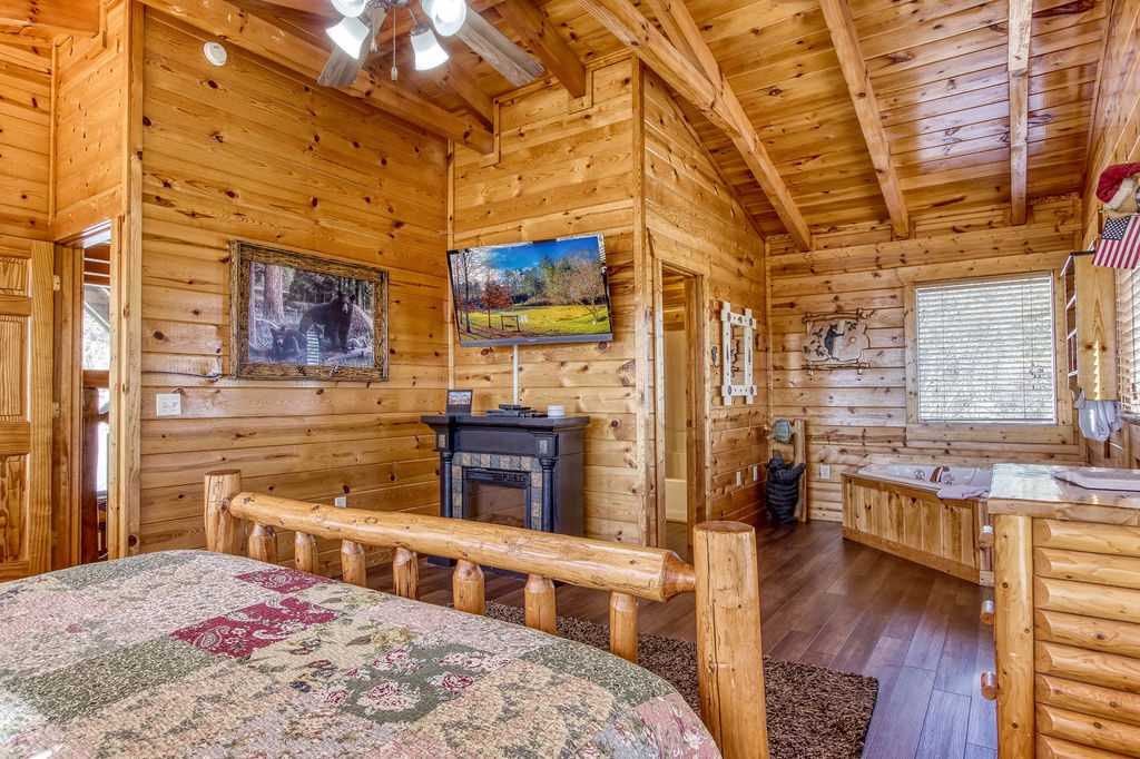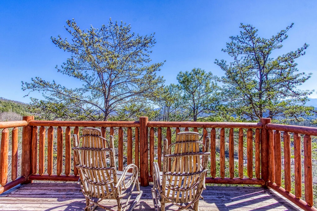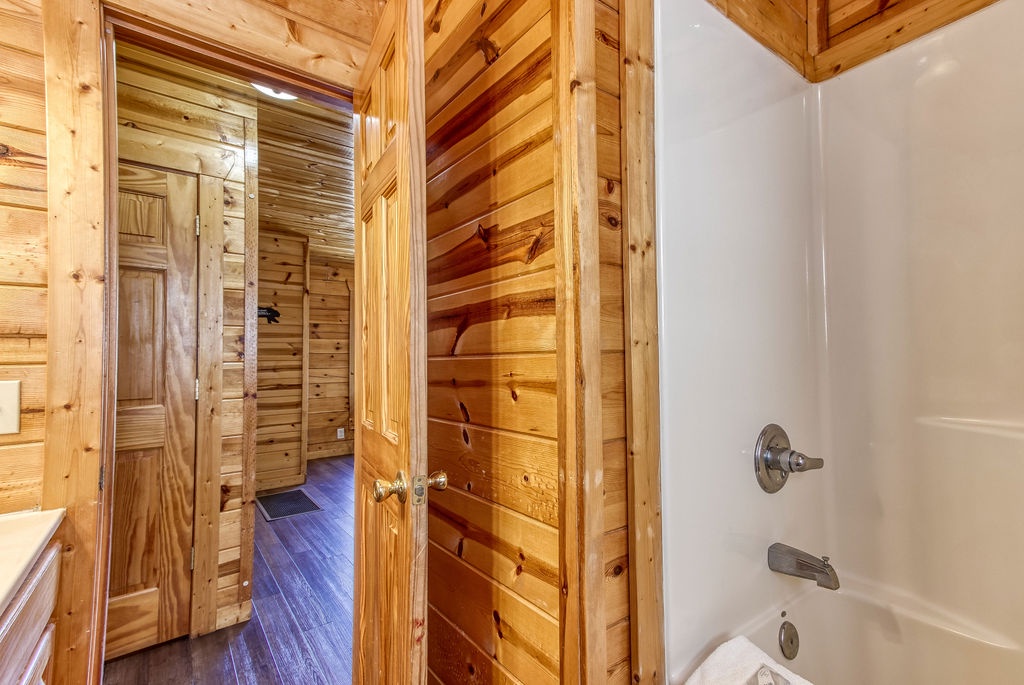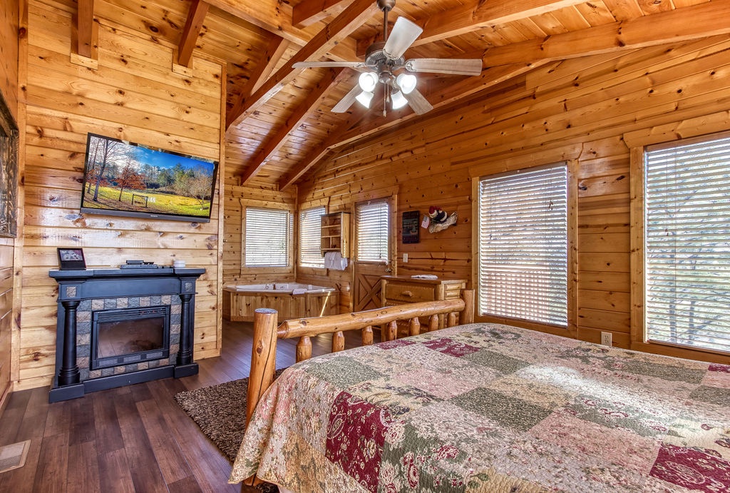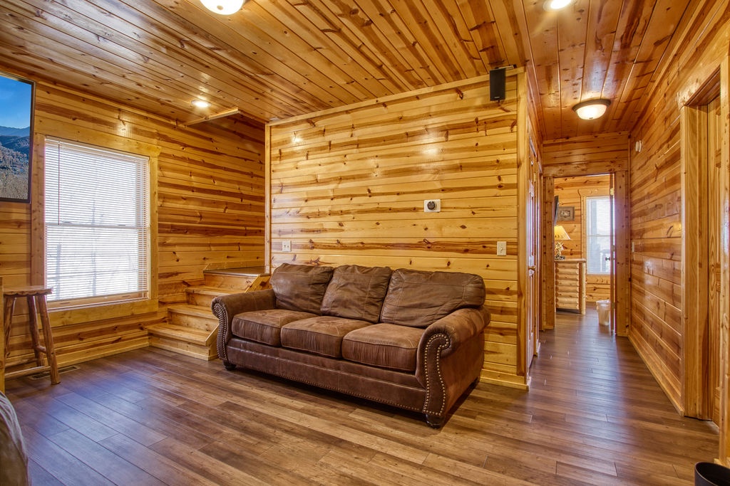 (This Awesome Cabin is located next door to The Majestic View Cabin) "Moonlight Getaway" is a 4-bedroom 3-bathroom that sleeps 10. Located in The Summit, you are less than 15 minutes from Pigeon Forge and Dollywood with paved roads all the way to the property and can park two cars easily. Entering on the main level, get ready to relax in the living room on the and sofa while enjoying a movie on the 55-inch TV in front of the cozy, gas fireplace. In the fully equipped kitchen, you'll find all cookware and utensils needs for your stay. Just behind the living area, you'll find a small entertainment space with 2 arcades for your gaming pleasure. Outside on the back deck, whip up your favorite meal on the gas grill and relax after dinner in the rocking chairs. The queen bedroom on the main level is the perfect spot to relax and unwind. Curl up in the queen bed and enjoy watching a movie on the TV. This room also has a closet and a dresser for your luggage. Head upstairs where you will find a master bedroom with a king bed. Other features include a chair, as well as a dresser for your convenience. Additionally, this space also features a full bath and a jacuzzi tub where you can relax and unwind before heading to sleep. Downstairs on the lower level, is a family theater and additional sleeper sofa. There is two more bedrooms also on this level. The 1st bedroom has a twin over a full bunk bed, and a TV. The 2nd bedroom nearby, you'll find a comfortable king bed, a dresser, a TV as well as a Fireplace. This level additionally features a convenient full bath and the bottom deck also features rockers, as well as a hot tub where you can unwind and let the bubbles relax you. This property will give you just what you have been looking for and more in your family vacation home. This rental sits beside "The Majestic View," “All About The View”, and “ Enchanted View” which are other scenic getaways on our program, and can be rented by those for those with large groups.