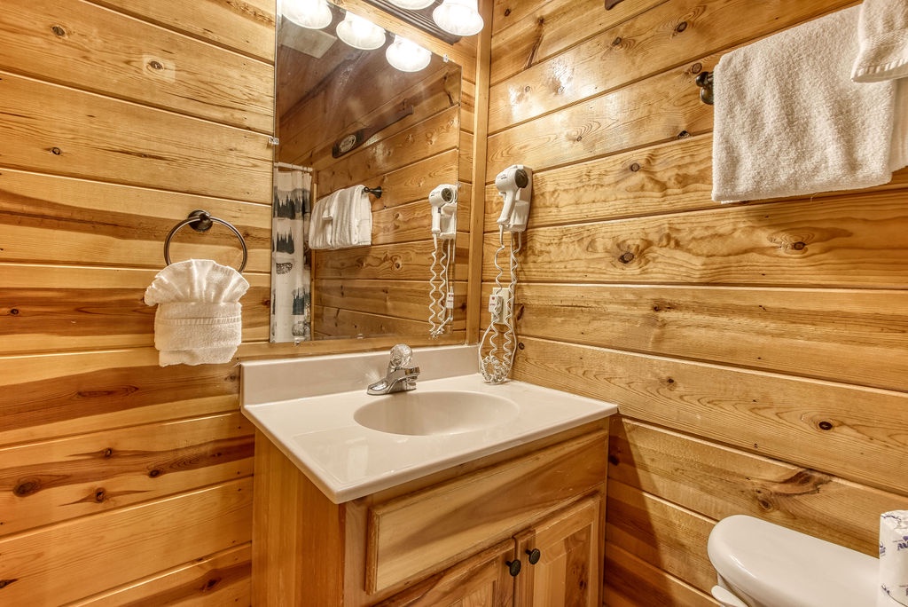 Cabin was stocked with all supplies we needed--kitchen gear and appliances, starter kit for bathroom needs, towels and bed linens. Great gaming room that children loved, spacious master suite and other bedrooms were nice size. Quiet location with awesome views of the Smokies.