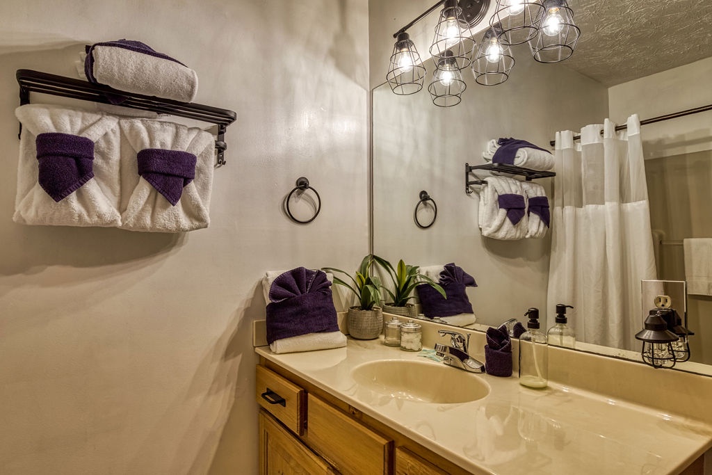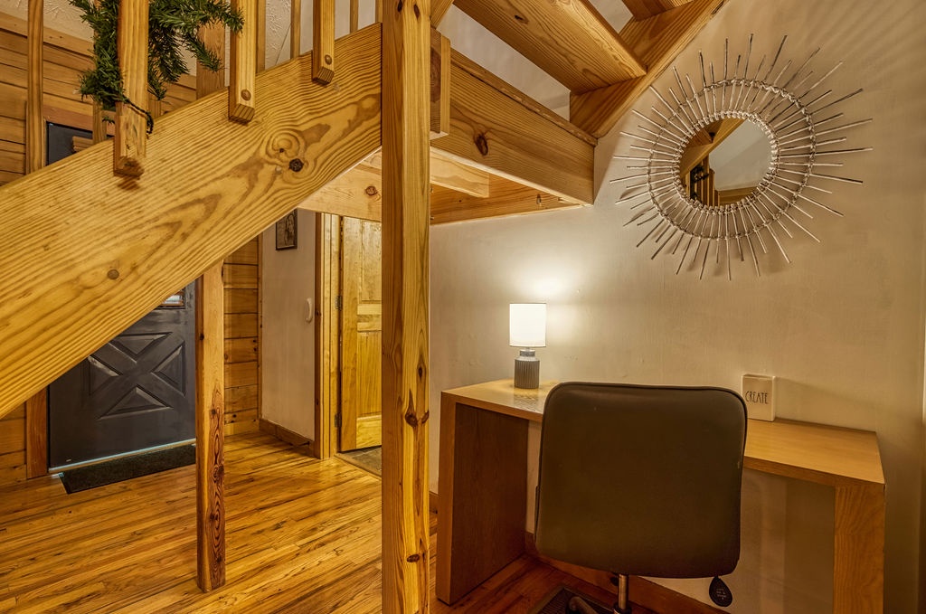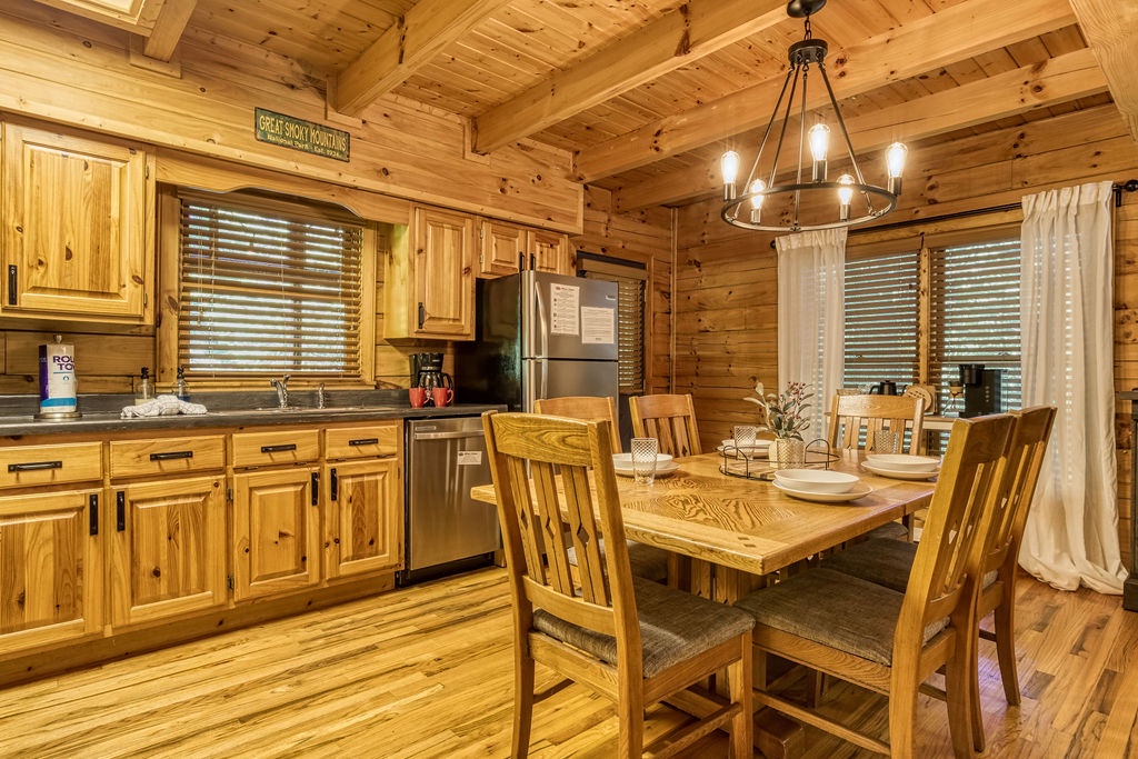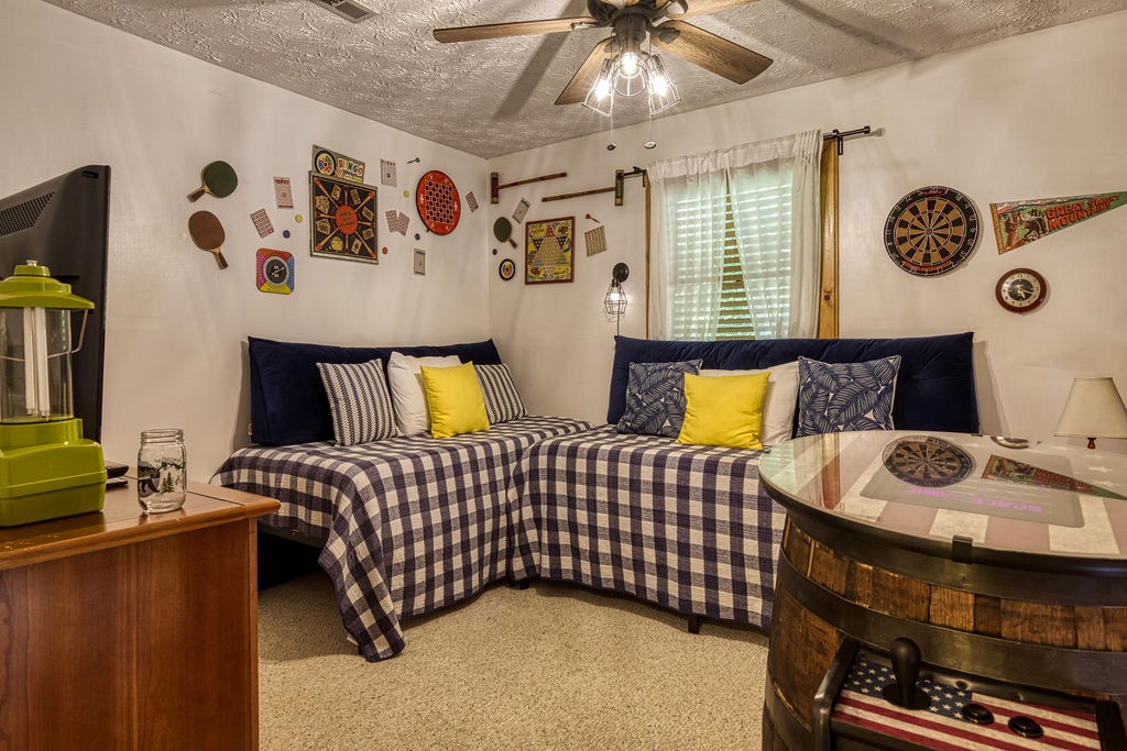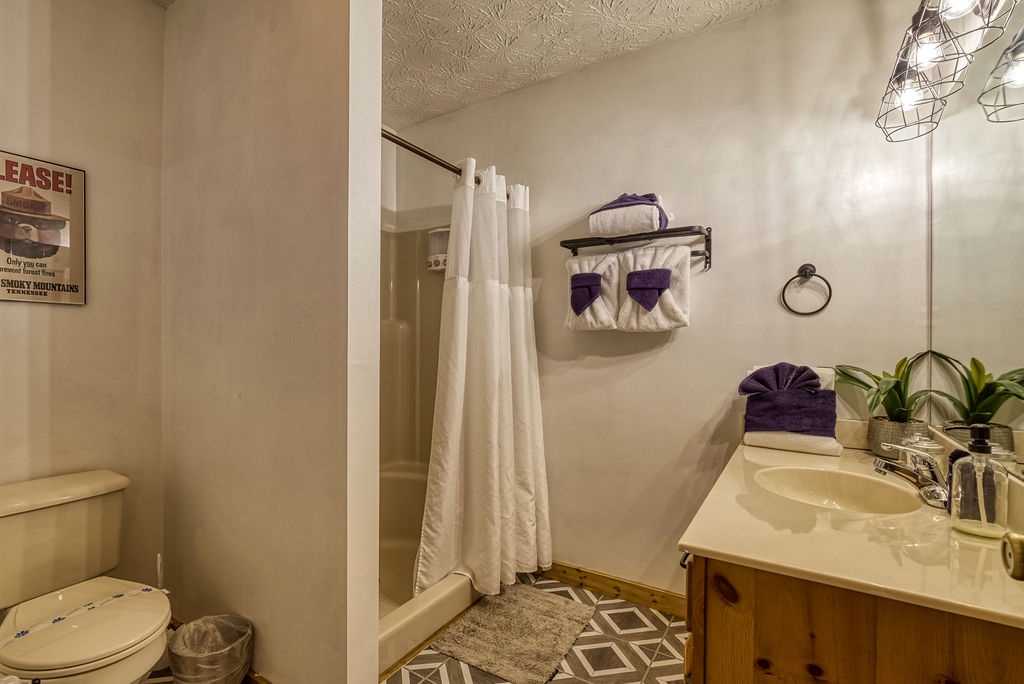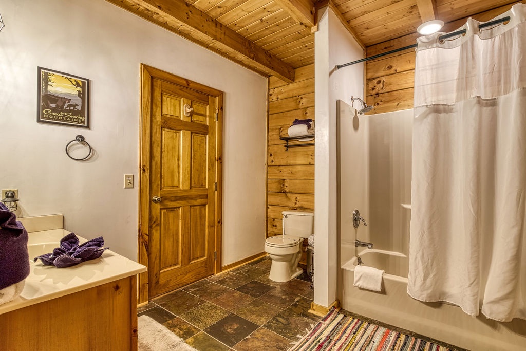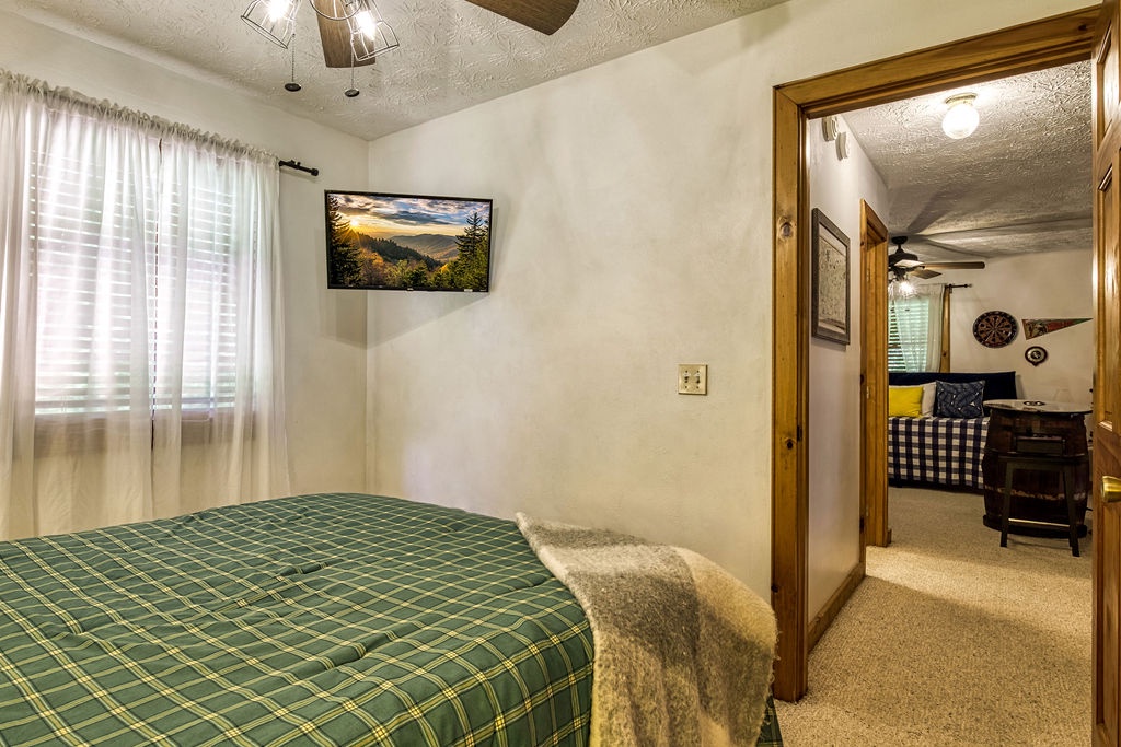 Welcome to the enchanting "Moonrise Cabin," a tranquil haven nestled in the heart of the Smoky Mountains. Located just off the beaten path between the charming towns of Pigeon Forge and Gatlinburg, this splendid 2-level, 2-bedroom, 2-bathroom cabin is the ideal retreat for a family of 7. With just two steps from the paved driveway to the front door, accessibility is a breeze. As you step inside "Moonrise Cabin," you'll instantly be captivated by its cozy charm. The main floor boasts an inviting open plan, perfect for family gatherings. Gather around the gas fireplace in the living area and enjoy your favorite family movie on the large flat-screen TV. The dining area provides comfortable seating for six, and the fully equipped kitchen is ready to accommodate any meal preparation. For those who need to stay connected or catch up on work or schoolwork while on vacation, there's a convenient working nook adjacent to the bedroom. The Queen bedroom on the main floor offers a flat-screen TV and connects to a bathroom that conveniently opens back up to the living room. Step through the dining room to discover the back screened-in porch, featuring a spacious hot tub where you can unwind and soak in the serene surroundings. Venturing to the top floor, you'll be greeted by an open loft area that includes two twin beds and an arcade game system for hours of family entertainment. A shared hall bathroom is conveniently located nearby. The second Queen bedroom on this floor also boasts a flat-screen TV, and adjacent to it, you'll find another small room with a twin bed, as well as a washer and dryer for your convenience. Outside, by the driveway, you'll have a charcoal grill for memorable family BBQs. Take advantage of the cabin's proximity to the Great Smoky Mountains National Park by embarking on a day drive or hiking adventure, immersing yourself in the breathtaking natural beauty that surrounds "Moonrise Cabin." Whether you're seeking relaxation, outdoor exploration, or quality family time, "Moonrise Cabin" provides the perfect setting for an unforgettable Smoky Mountain getaway. Experience the magic of the mountains from the