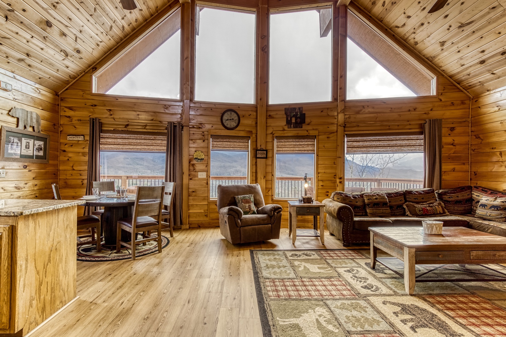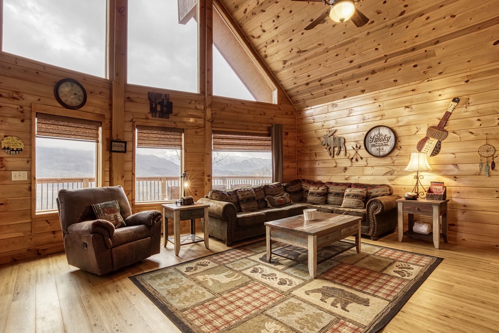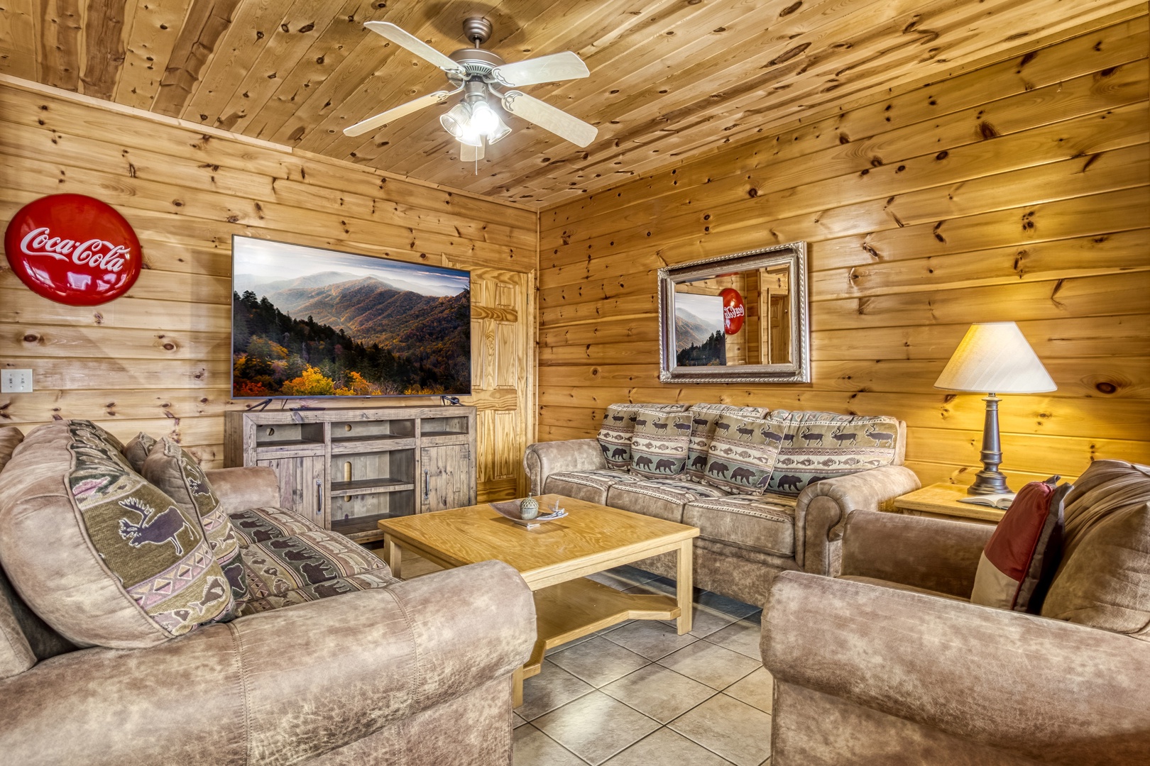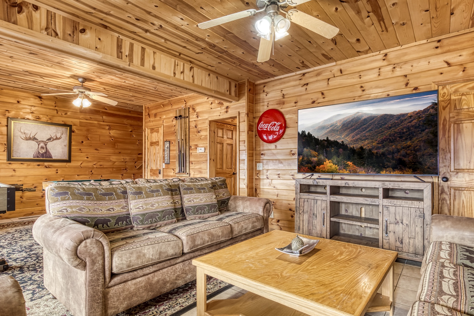 Nestled in the serene Cobbly Nob Resort, Moonshine Memories offers the perfect blend of comfort and adventure. This 4-bedroom, 4-bathroom, three-level cabin sleeps 10 and provides access to resort amenities, including three seasonal pools and a pickleball court. While easily accessible via paved, curvy mountain roads, the cabin is not trailer-friendly.