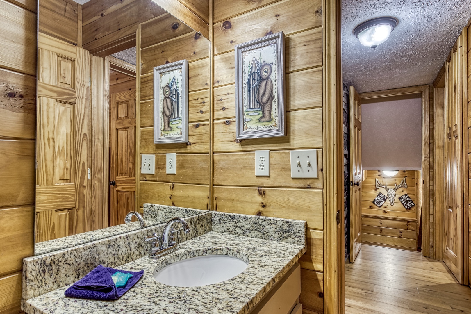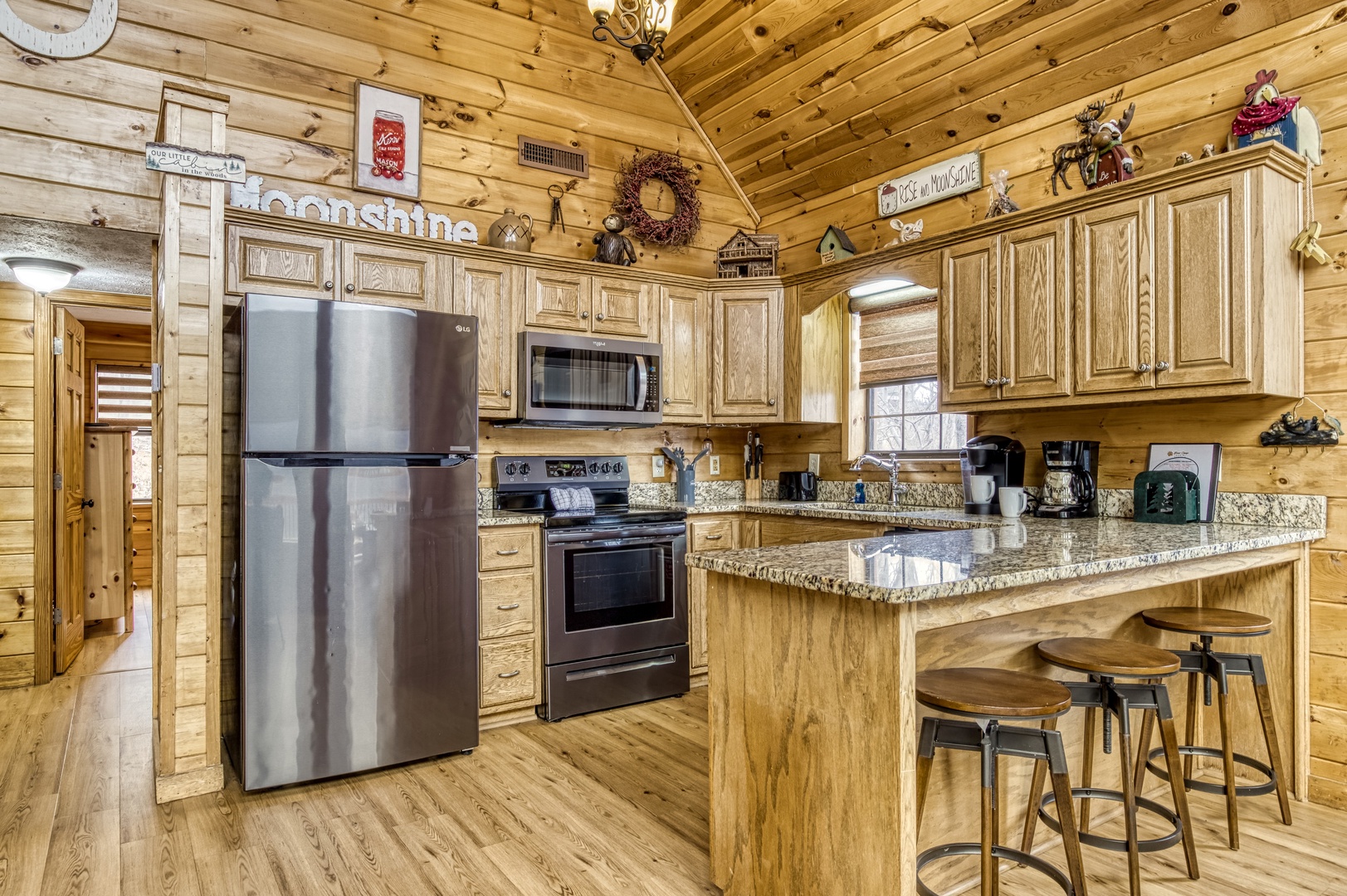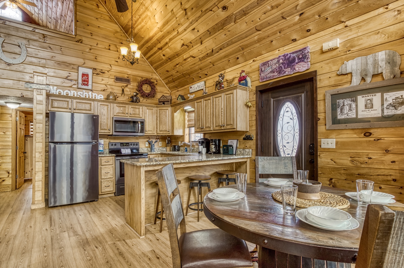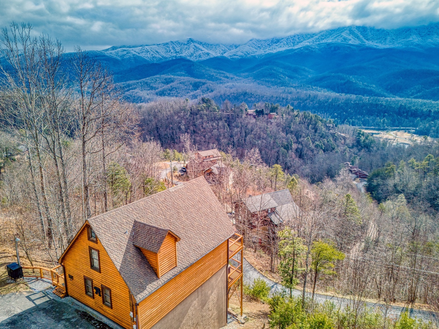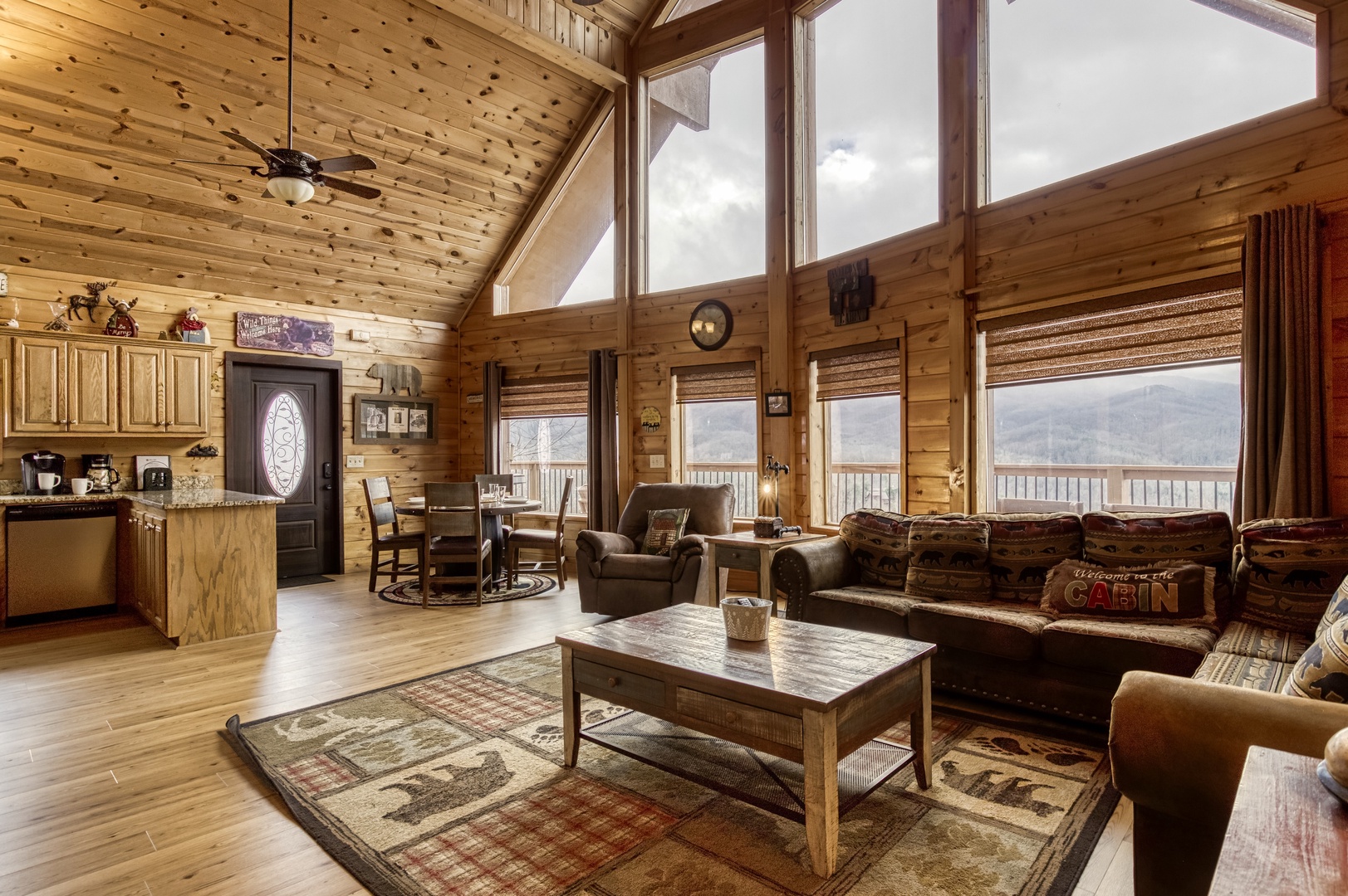 Nestled in the serene Cobbly Nob Resort, Moonshine Memories offers the perfect blend of comfort and adventure. This 4-bedroom, 4-bathroom, three-level cabin sleeps 10 and provides access to resort amenities, including three seasonal pools and a pickleball court. While easily accessible via paved, curvy mountain roads, the cabin is not trailer-friendly.