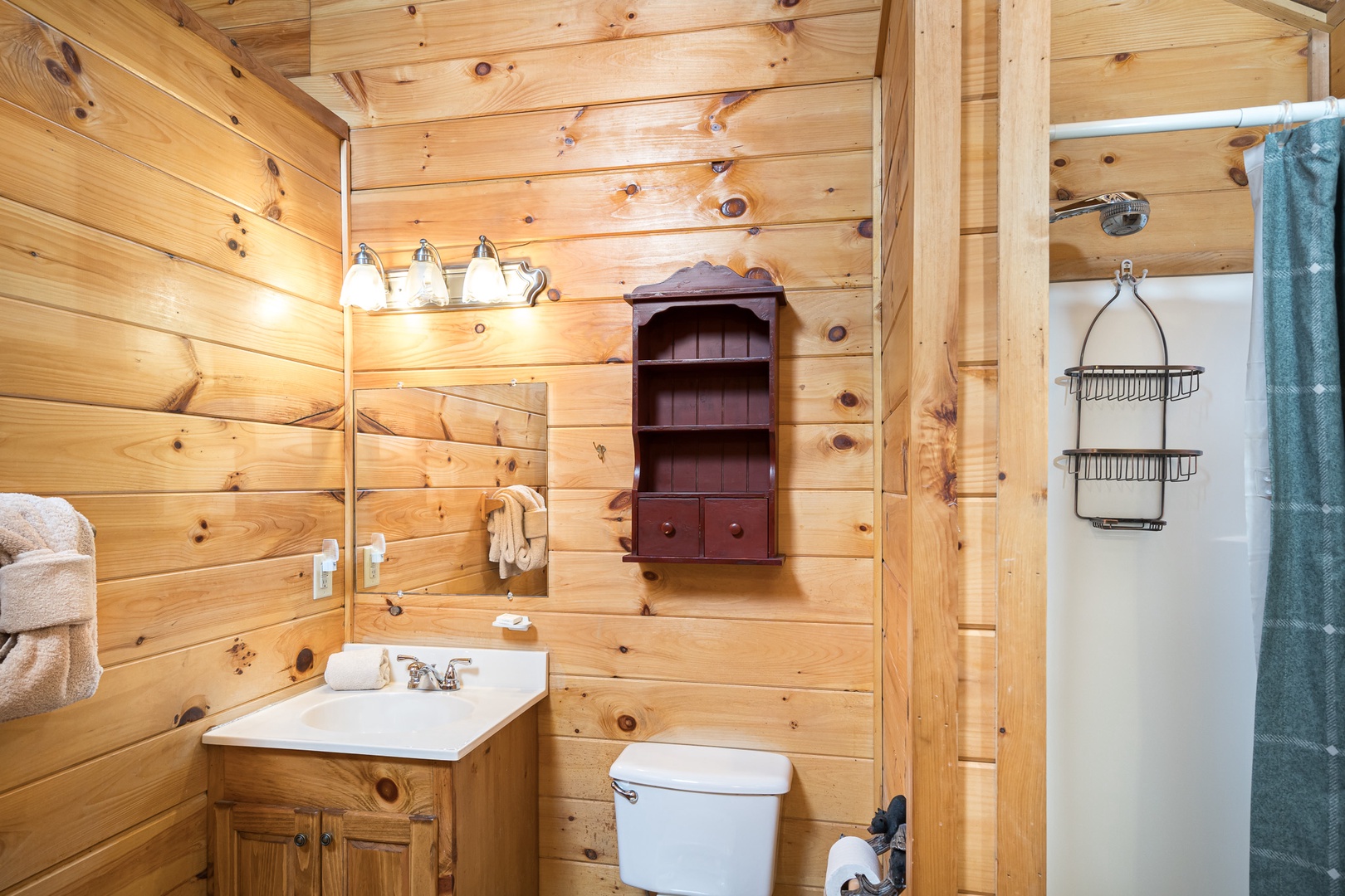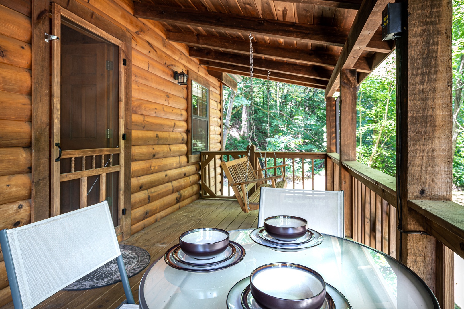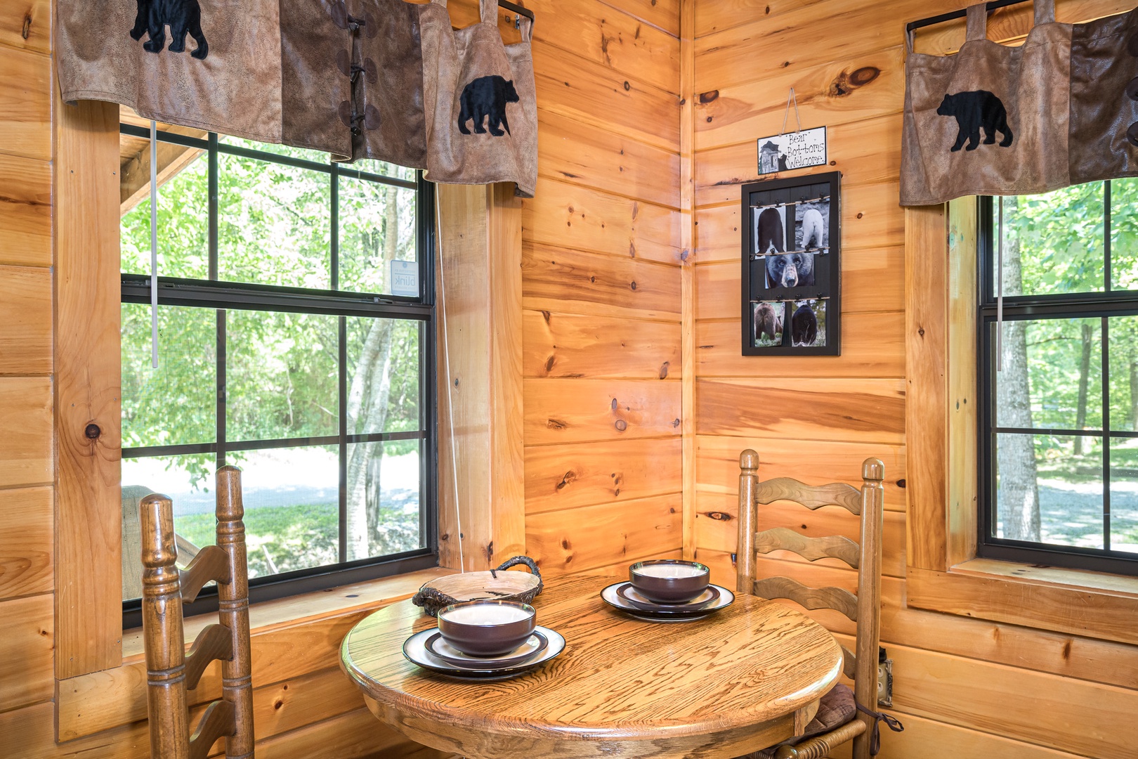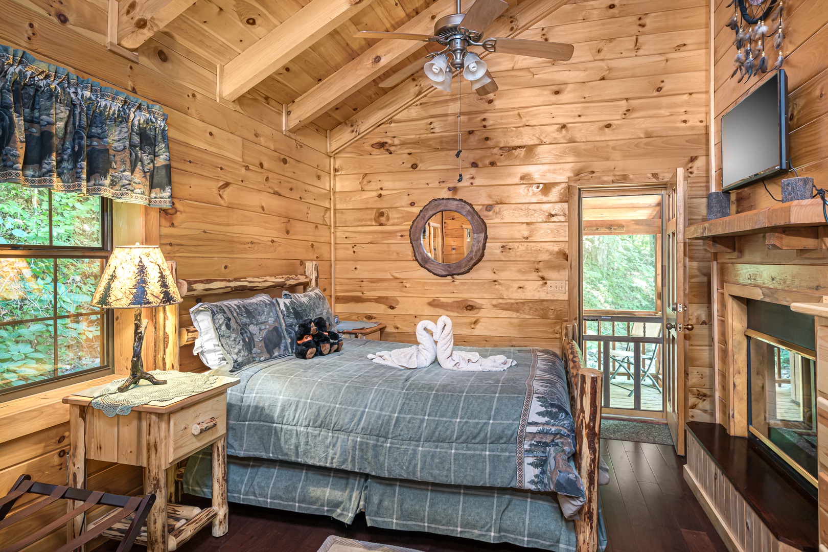 Welcome to "Mosey Bear" in the Smoky Mountains! This beautiful and enchanting 1-bedroom 1-bathroom cabin for 2 will tug at your heartstrings. The stunning attention to detail, adorable bear themed decor and custom log furniture creates a warm and inviting atmosphere that will bring a smile to your face. The cabin also features an amazingly beautiful Master suite where you are treated to an in-room jetted tub, fireplace, log bed, Flat screen TV with Disney+, Hulu, and ESPN+ and access to the screened in porch with a romantic hot tub and lighting. Whatever your spoil, whether inside relaxing by the double-sided gas fireplace or outside basking in the quiet of nature on the front porch swing, you will surely be treated to a delightful and heartwarming experience at "Mosey Bear." The cabin offers a peaceful and semi-private setting and yet is close to all Pigeon Forge tourist attractions, restaurants, shopping, and Douglas Lake if you would like to enjoy a day at the lake during our summer months. If you are wanting the perfect Smoky Mountain cabin getaway in a great location with easy year-round access, level parking, complimentary WiFi, and motorcycle accessible, then you will love the comforts and features of "Mosey Bear." If you are traveling with another couple and are looking for the ideal lodging arrangement that affords you the unique opportunity to spend time together yet offers each of you your very own private cabin, then "Mosey Bear" is the place to be! The sister cabin is "Cozy Bear" and can also be viewed on Bear Camp Cabin Rentals website for more information. While both cabins are near each other, they are situated in such a way as to allow you to have your own privacy from the other while still being near enough to enjoy the company of your travel friends. "Cozy Bear" and "Mosey Bear" are located by themselves in a quiet, private country setting on their own land and not in a resort or subdivision.