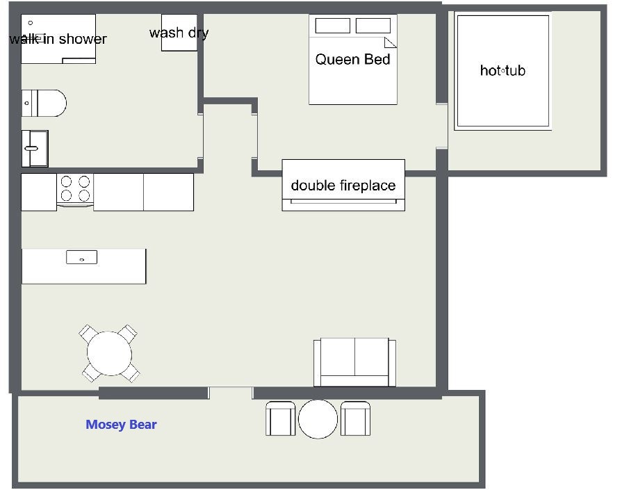 We stayed at Mosey Bear, just the right place for the two of us. Relaxing at the porch swing chair after a hectic day was amazing, or having our coffee listening to the birds in the morning. Clean. Quite. Close to restaurants. Bathroom shower area bit dark. We report some issue with the screen door, office employee was attentive and courteous. Day after our arrival we got a welcome call, to check that everything was ok. Thankyou all for your hospitality.