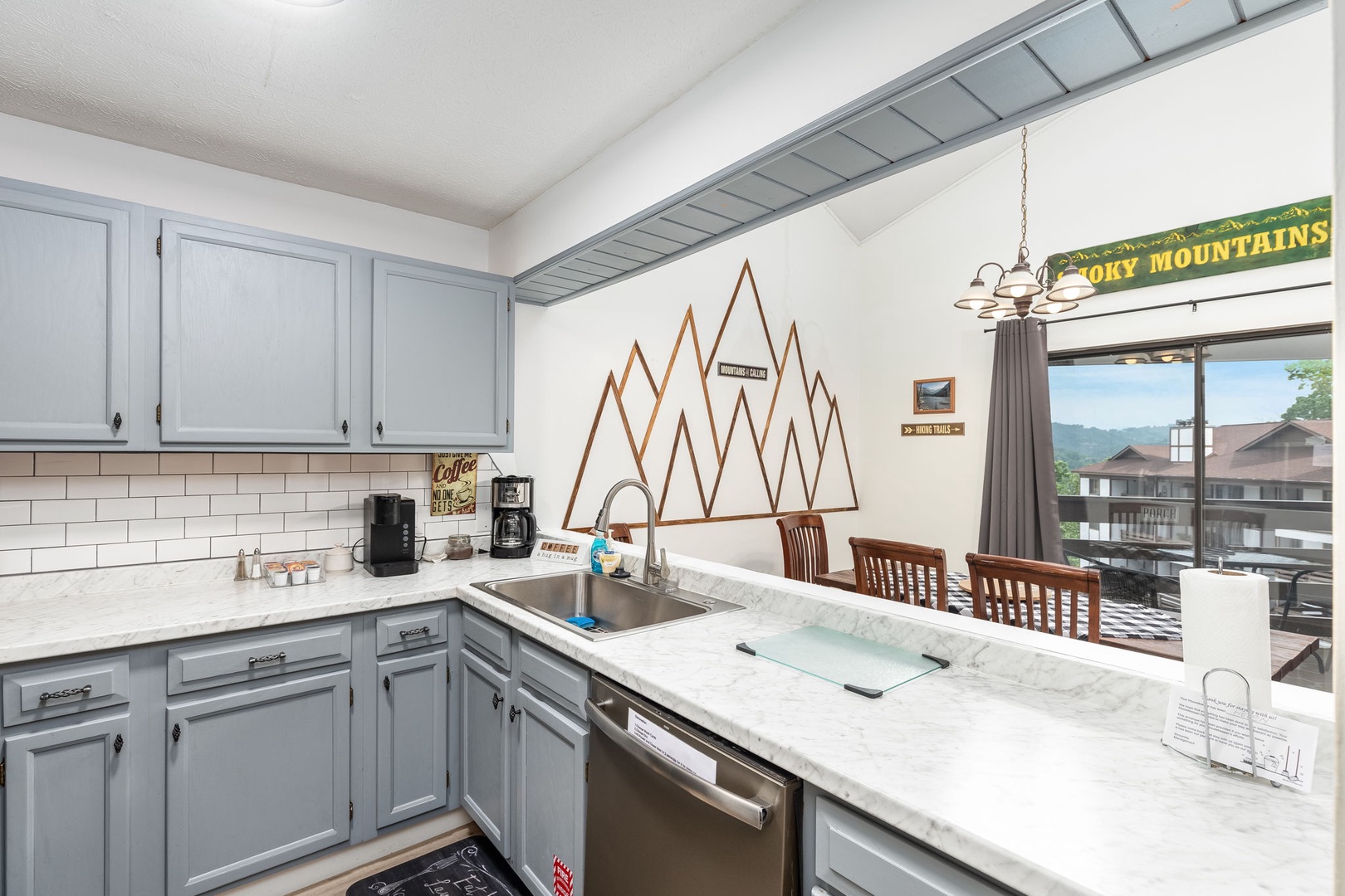 Welcome to "Mountain Calling," a newly remodeled 3-bedroom, 3-bath condo nestled in the heart of Gatlinburg. This serene retreat offers the perfect balance of tranquility and proximity to downtown excitement, located just a short walk from all the action. The condo features two luxurious King bedrooms and a charming kids' loft, which includes a twin bed and a twin-over-full bunk bed, perfect for the little ones. You can savor spectacular mountain views from the spacious balcony and enjoy sights of the Sky Bridge and Space Needle right from your balcony. The trolley into town stops right at the corner, making it easy to explore Gatlinburg without the hassle of driving. You'll also enjoy a seasonal resort pool, perfect for cooling off on warm days.