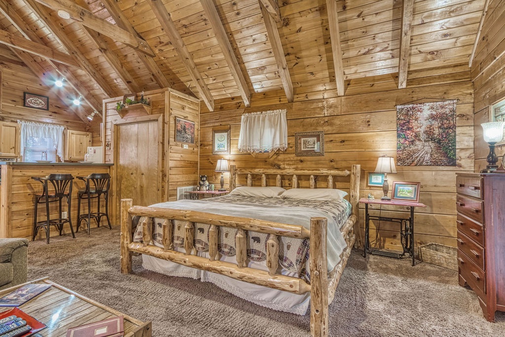 This lovely one bedroom one bath studio cabin is one of a kind. It is about 20 mins from Pigeon Forge and 5 from Gatlinburg. There are paved roads all the way with a sizable parking space to fit any one vehicle. Once you arrive, you will never want to leave having the perfect spot of any couple to relax and spend time together.
