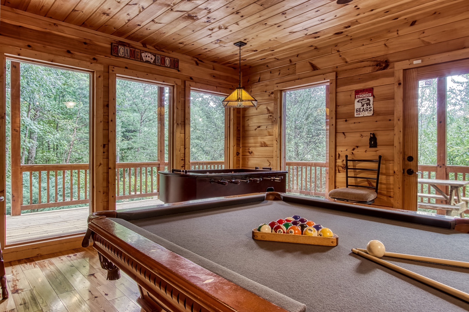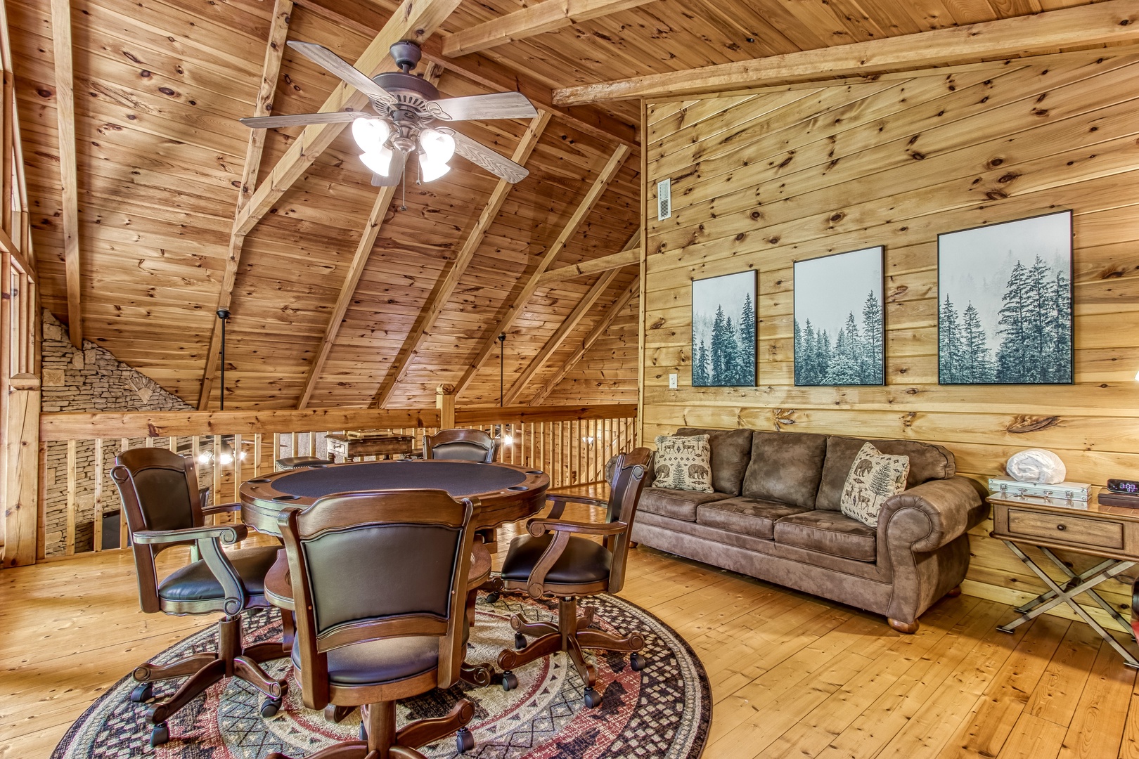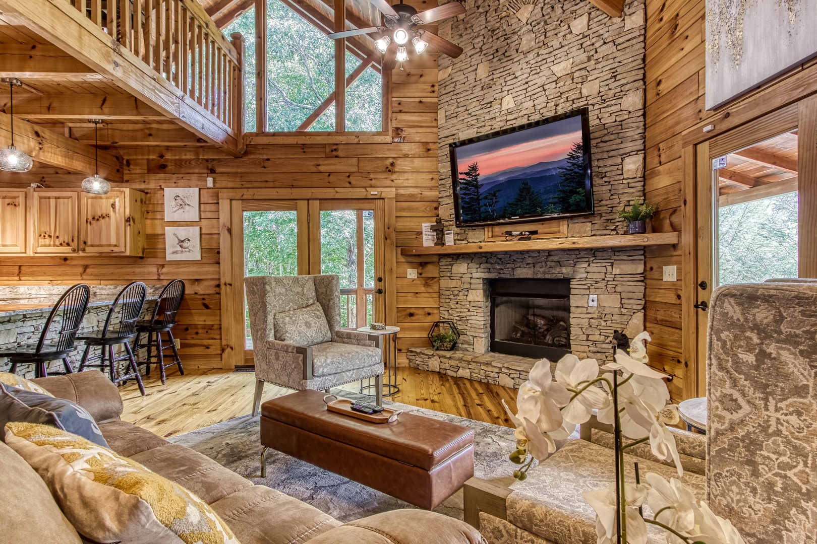 With all the deck space this cabin has to offer you have all the grilling, eating and relaxing space you could ask for. You’ll find the hot tub on the lowest deck for you to sneak off to or maybe you’d rather relax as a group around the gas firepit in the backyard.