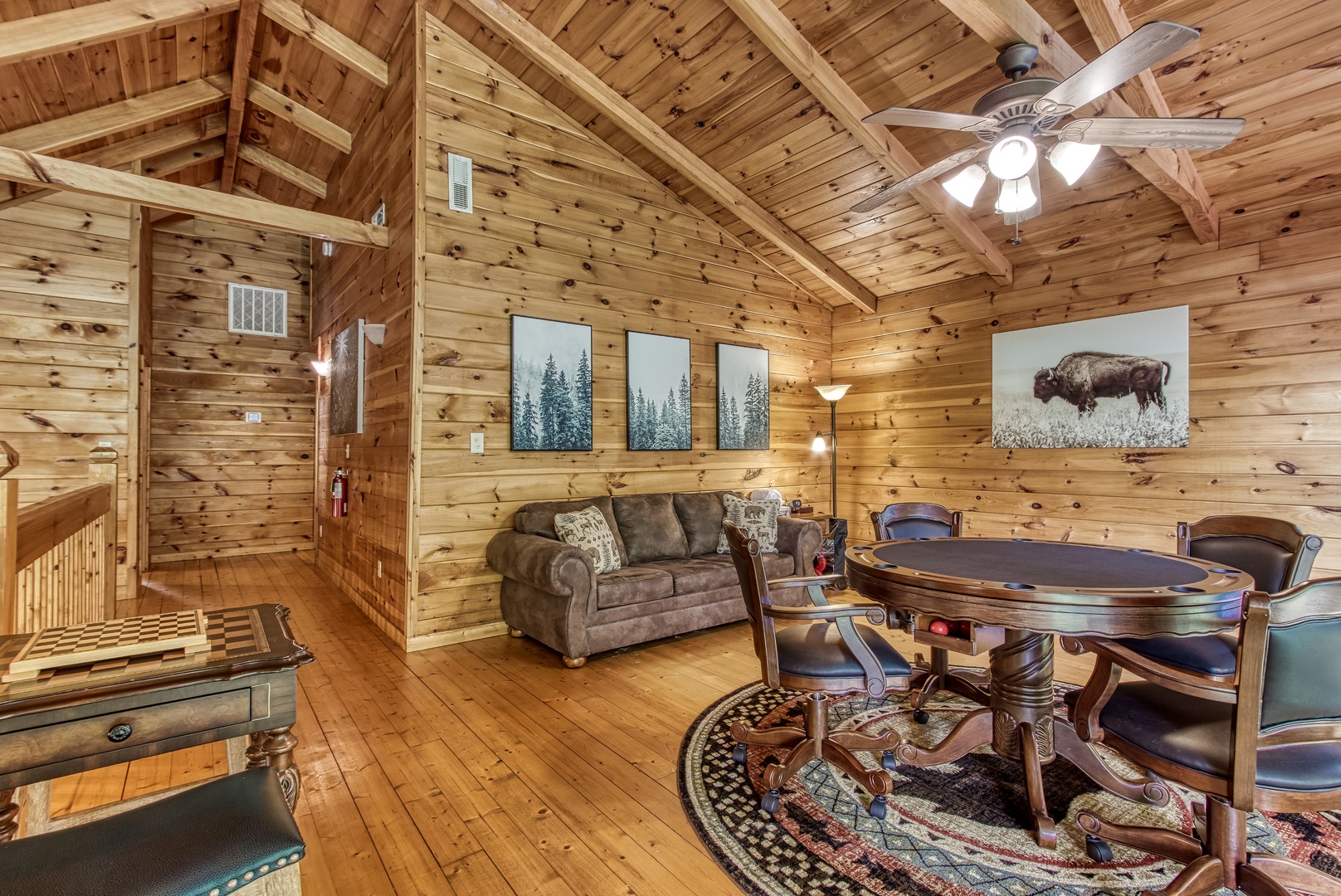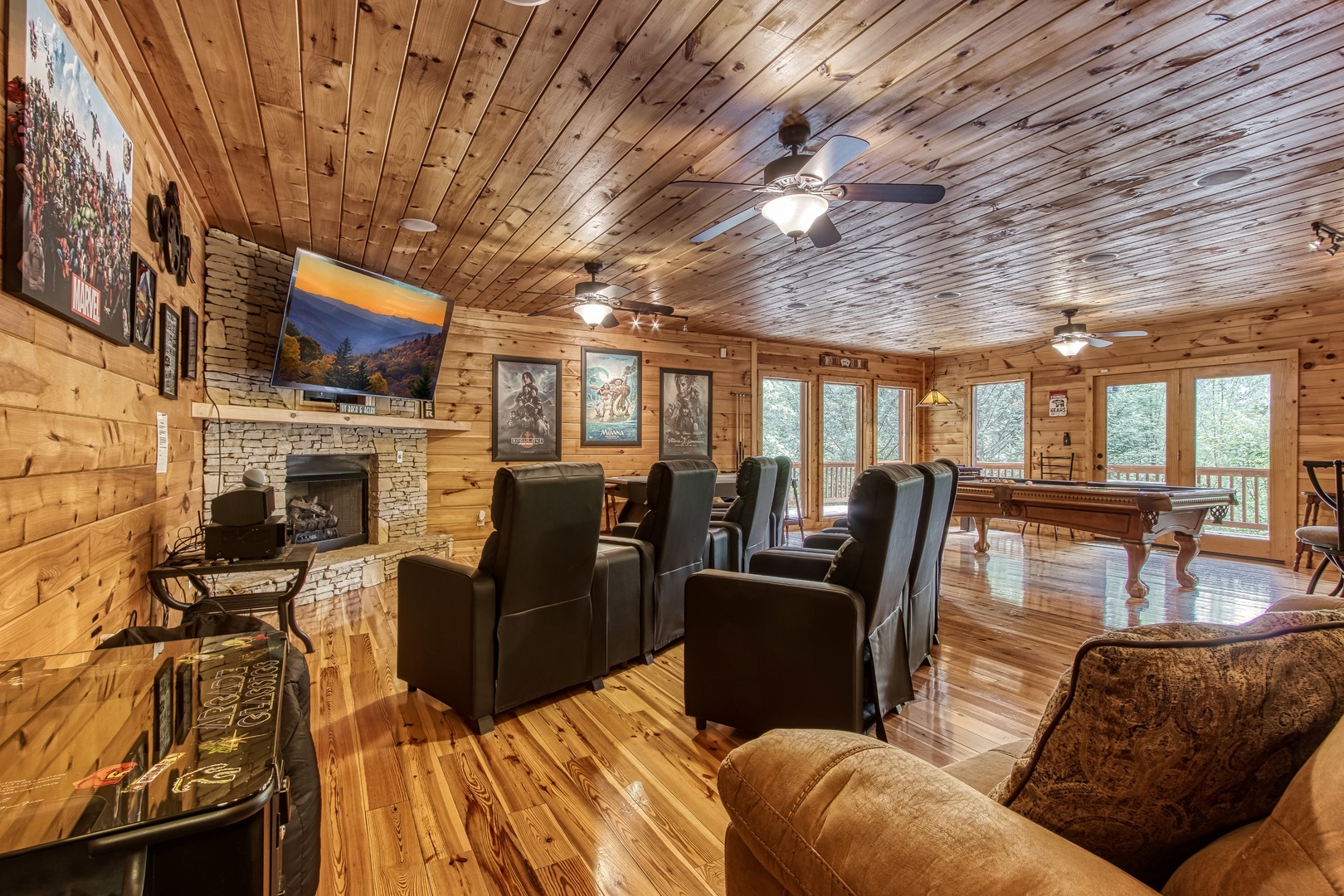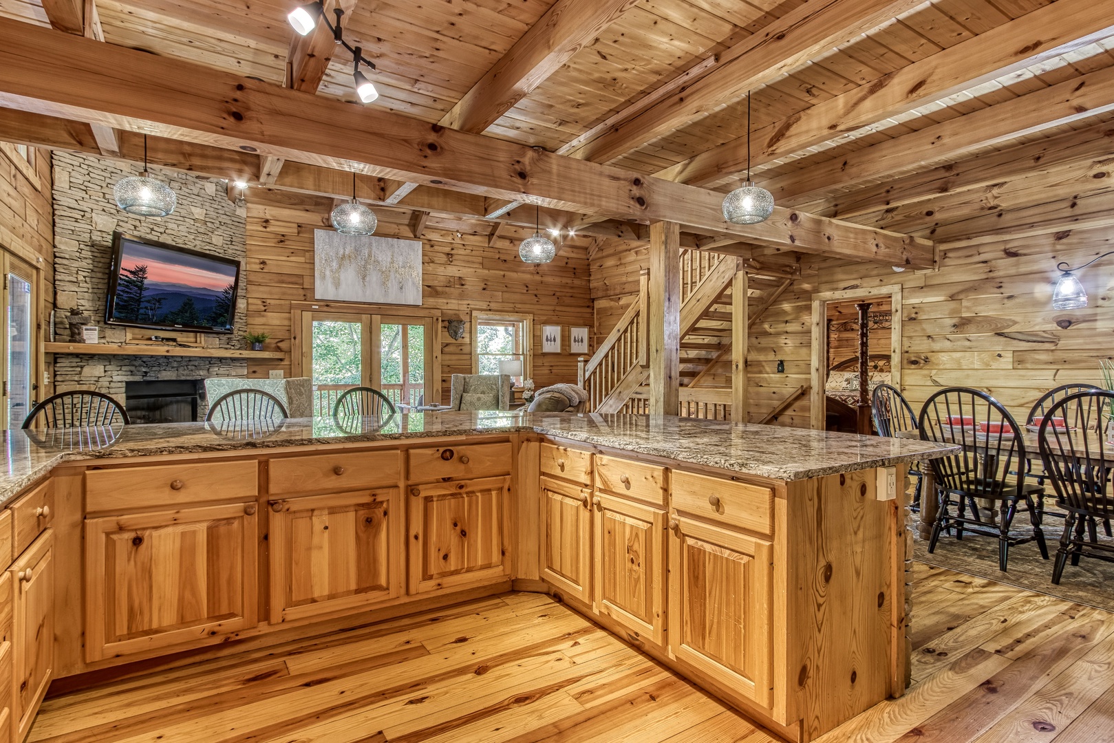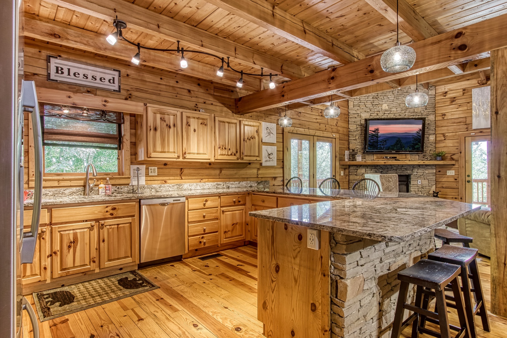 With all the deck space this cabin has to offer you have all the grilling, eating and relaxing space you could ask for. You’ll find the hot tub on the lowest deck for you to sneak off to or maybe you’d rather relax as a group around the gas firepit in the backyard.
