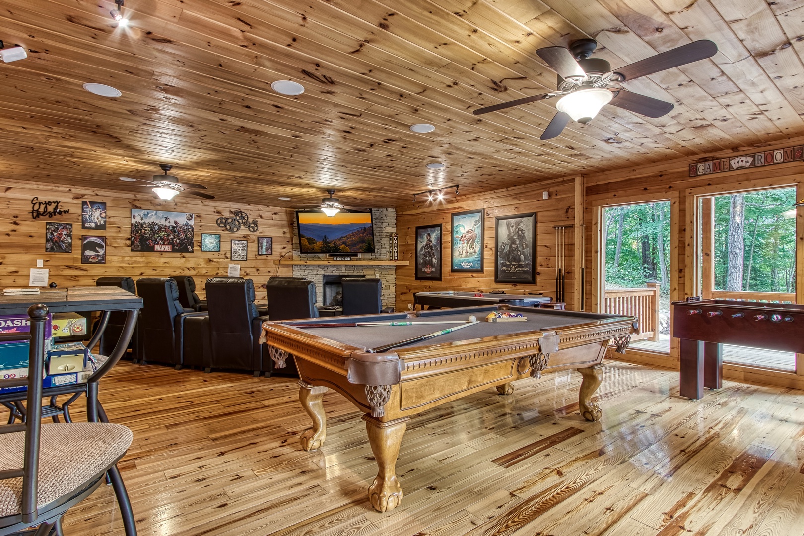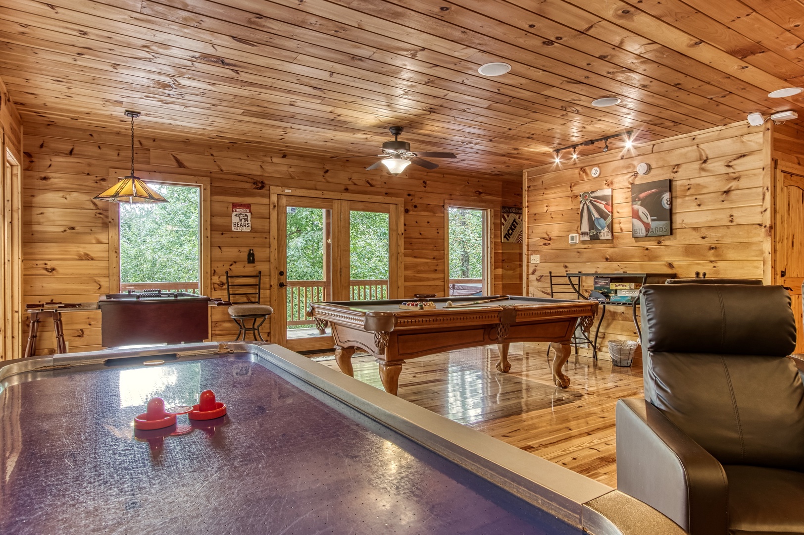 Find your way down to the bottom level of this Jewel into the awesome game room, including a full-size pool table, the kids favorite air hockey table but if you rather soccer, kick into a game of foosball. If you're more of the video game type, play out a few in the multi-game arcade table. Don’t forget to gather the whole family to enjoy the theater style seating around the large flat screen tv in the corner of the room with an additional Queen sleeper sofa in the back. The final King ensuite bedroom and bathroom is hidden down by the gamer's paradise.